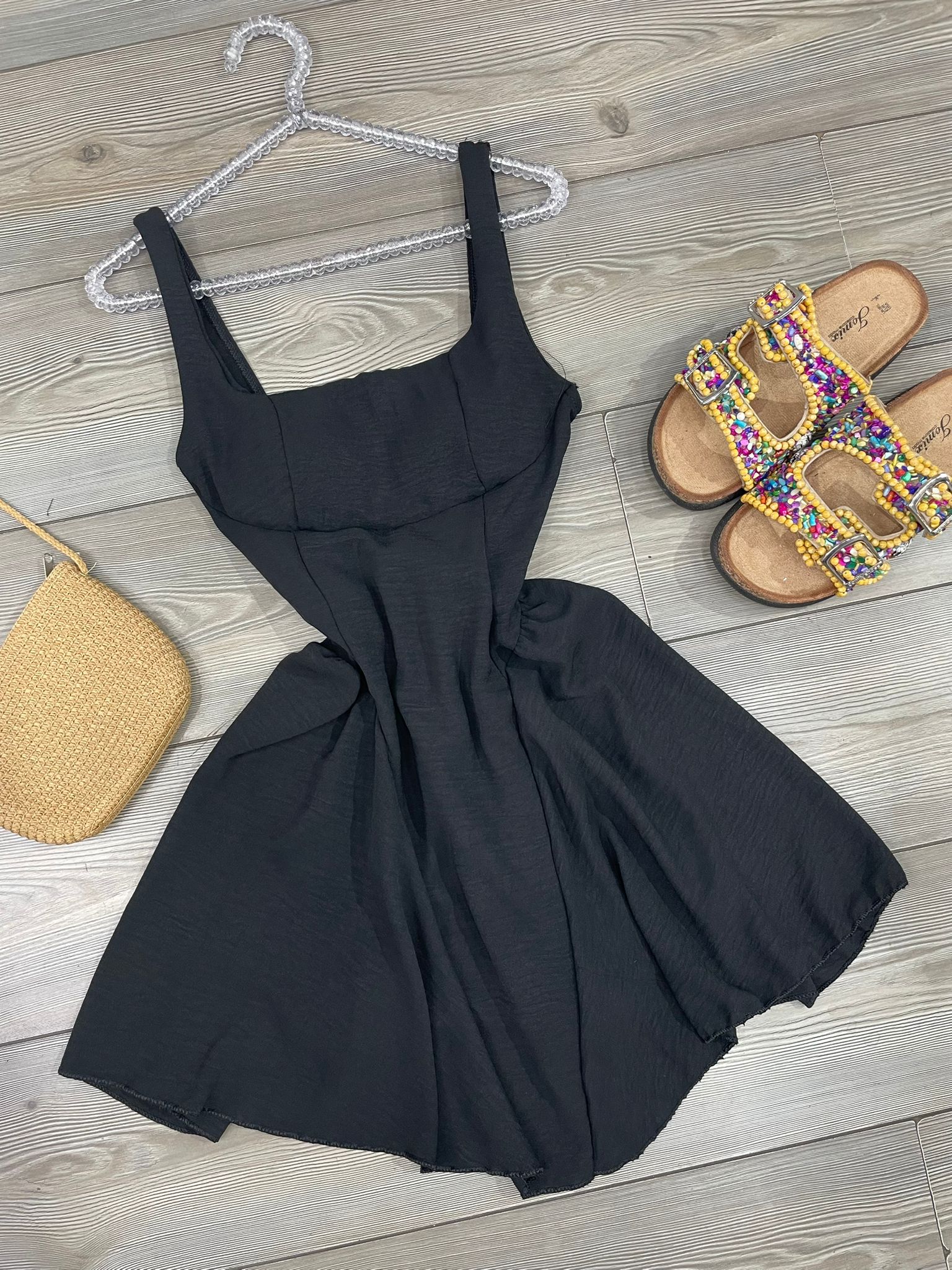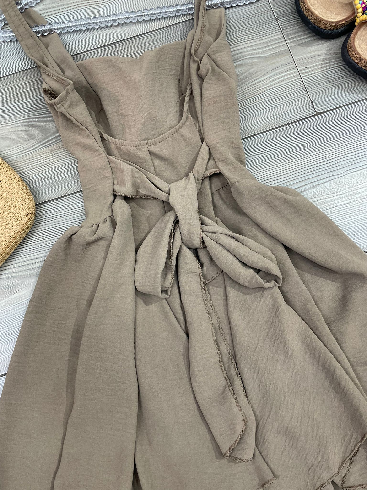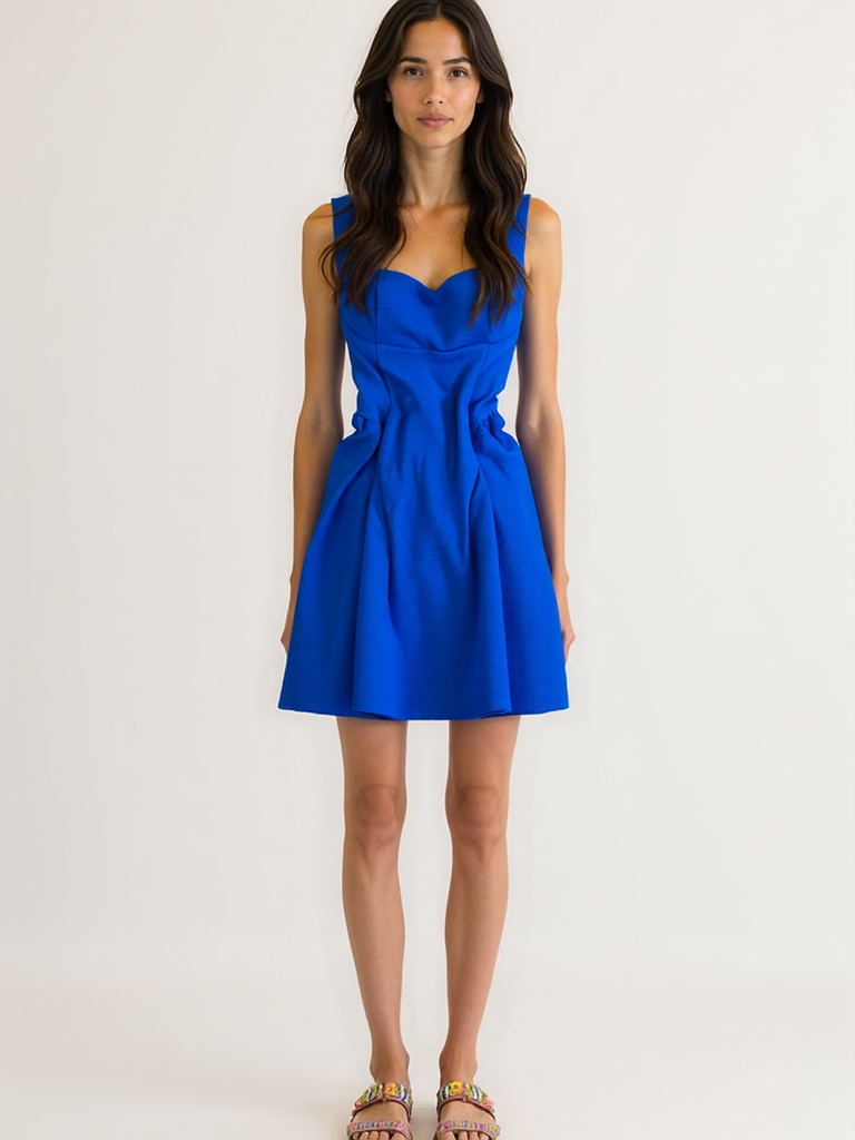 Abito corto con allacciatura dietro la schiena con gonna morbida in leggero tessuto strutturato