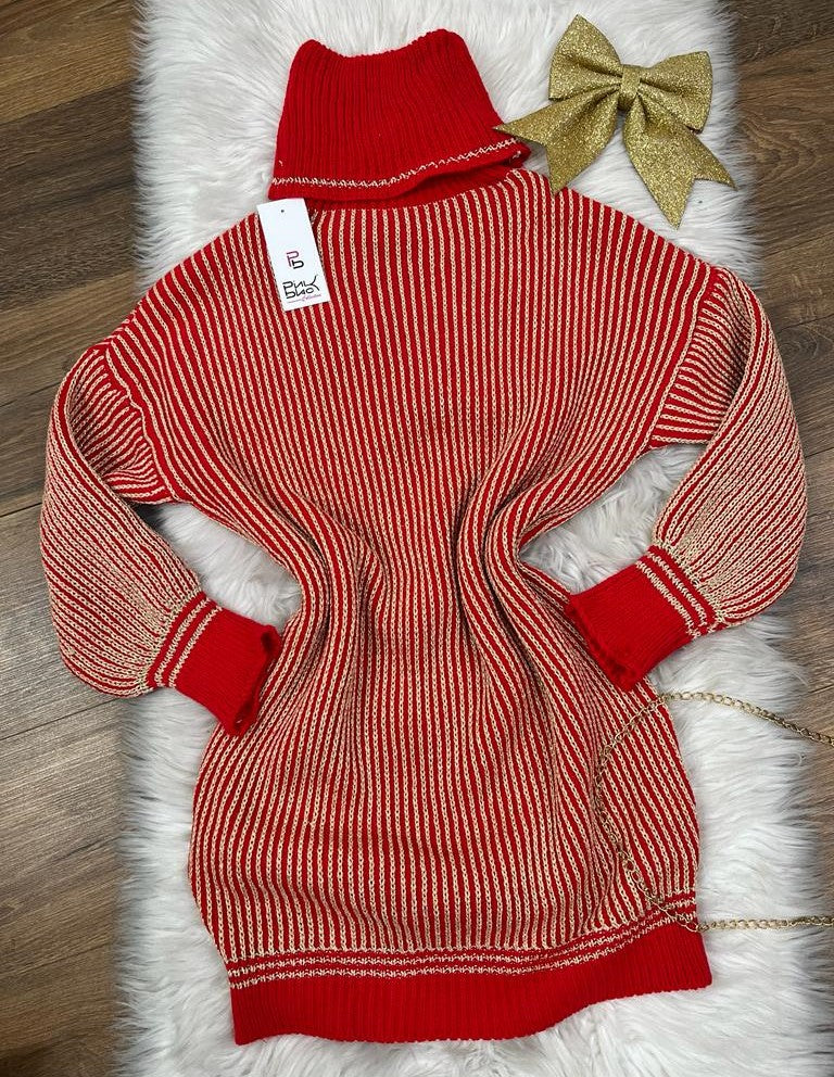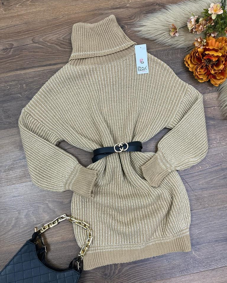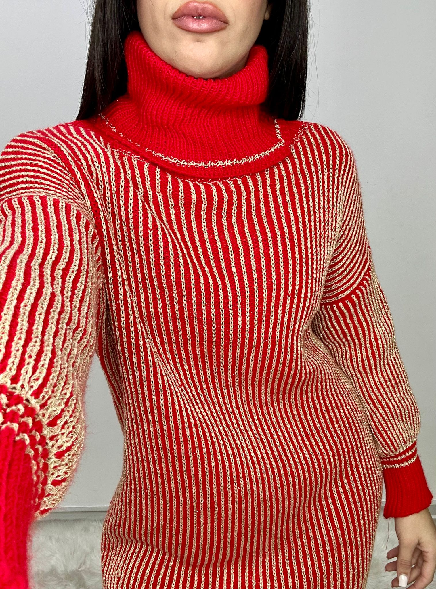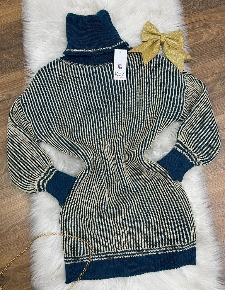 Abito - maxi maglia con design a righe e collo alto. Fabbricato in Italia.