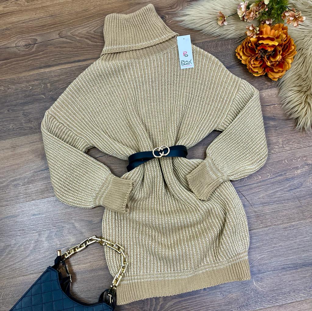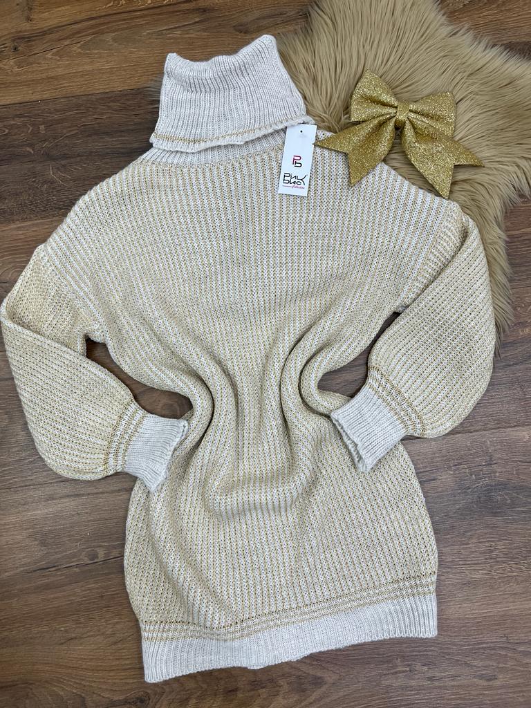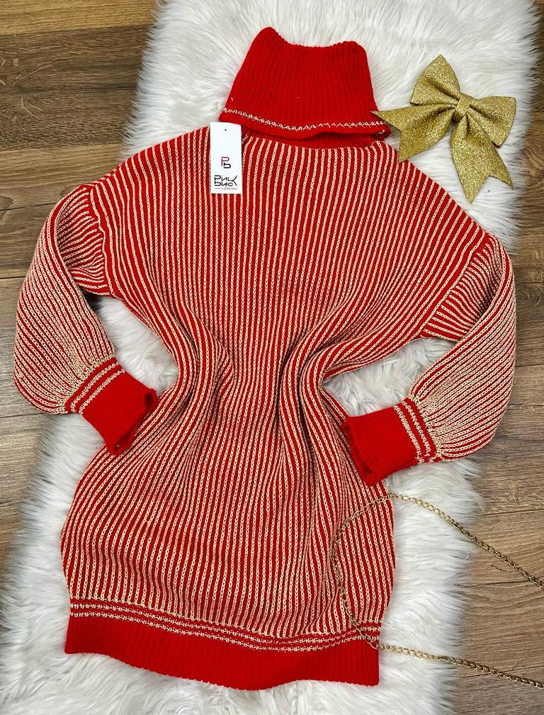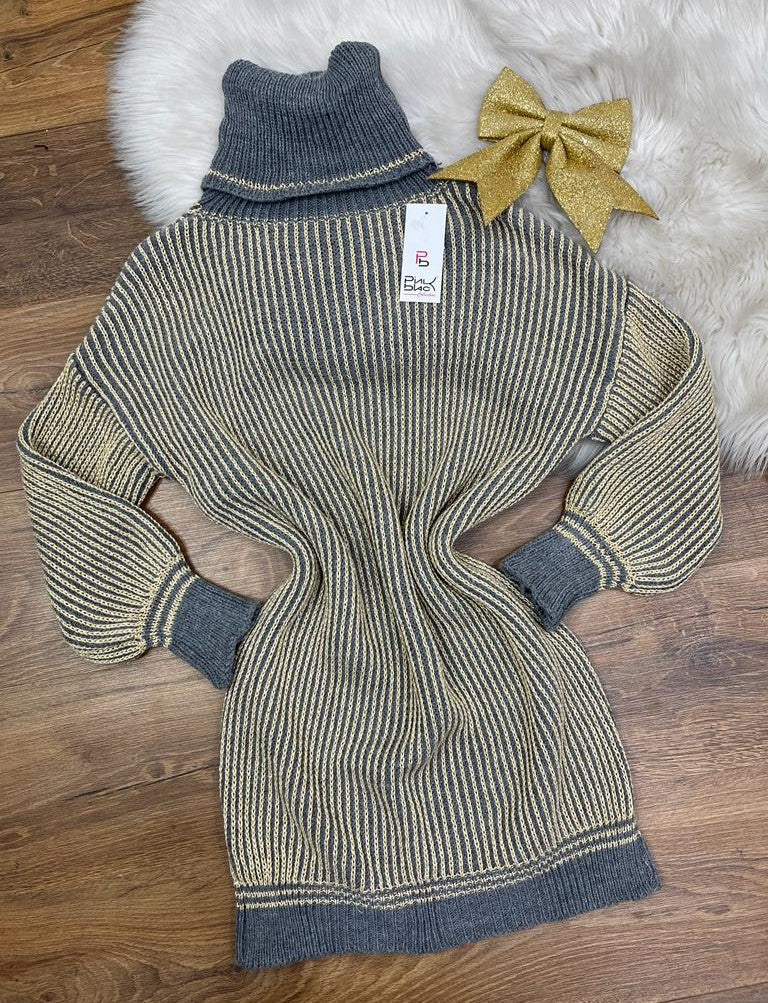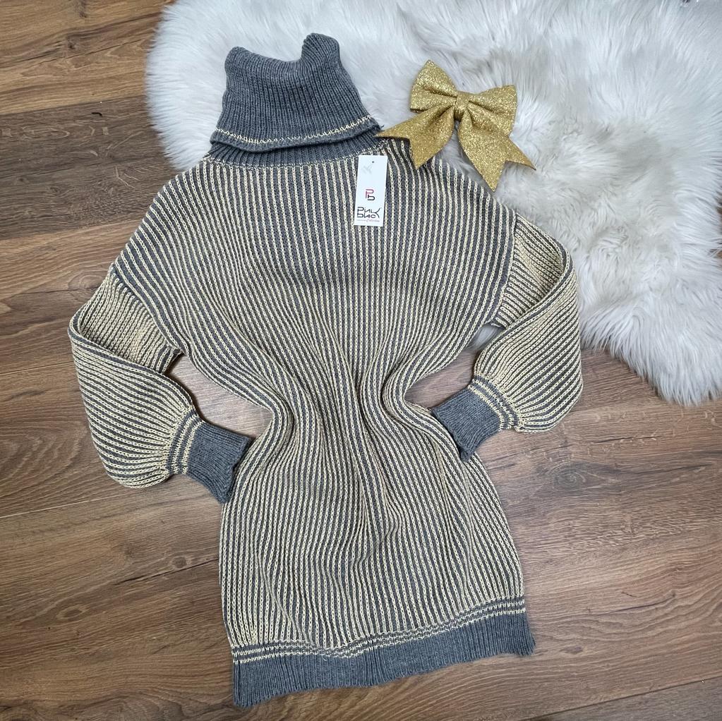Abito - maxi maglia con design a righe e collo alto. Fabbricato in Italia.
