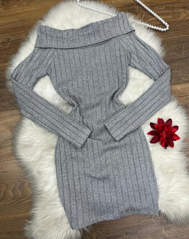Abito a costine con scollo a barca. Fabbricato in Italia.