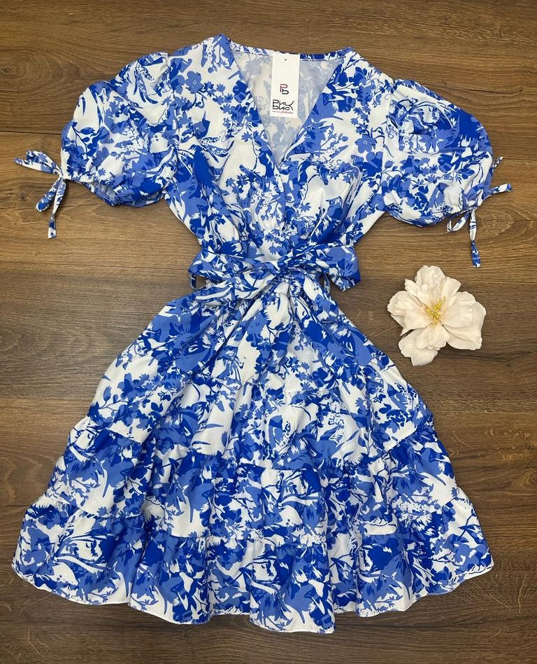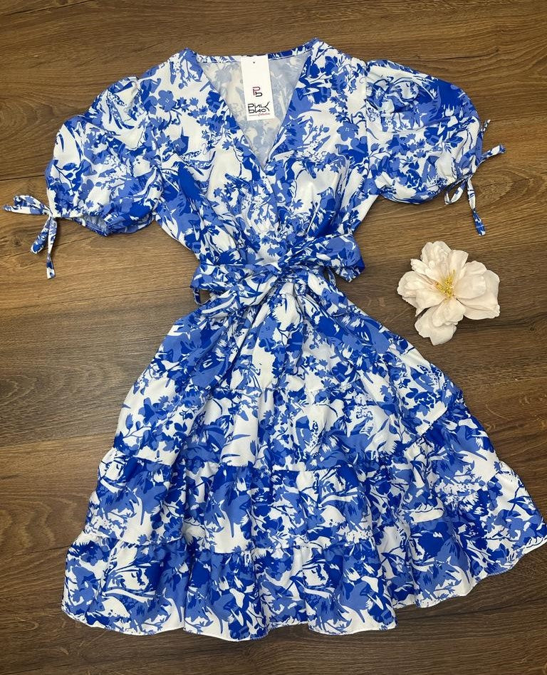 Abito in leggero tessuto strutturato con fantasia astratta, fascia elastica in vita e cinturino incluso. Fabbricato in Italia.