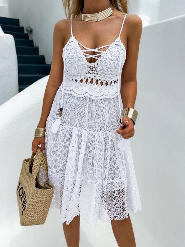 Abito corto effetto pizzo con coppette preformate