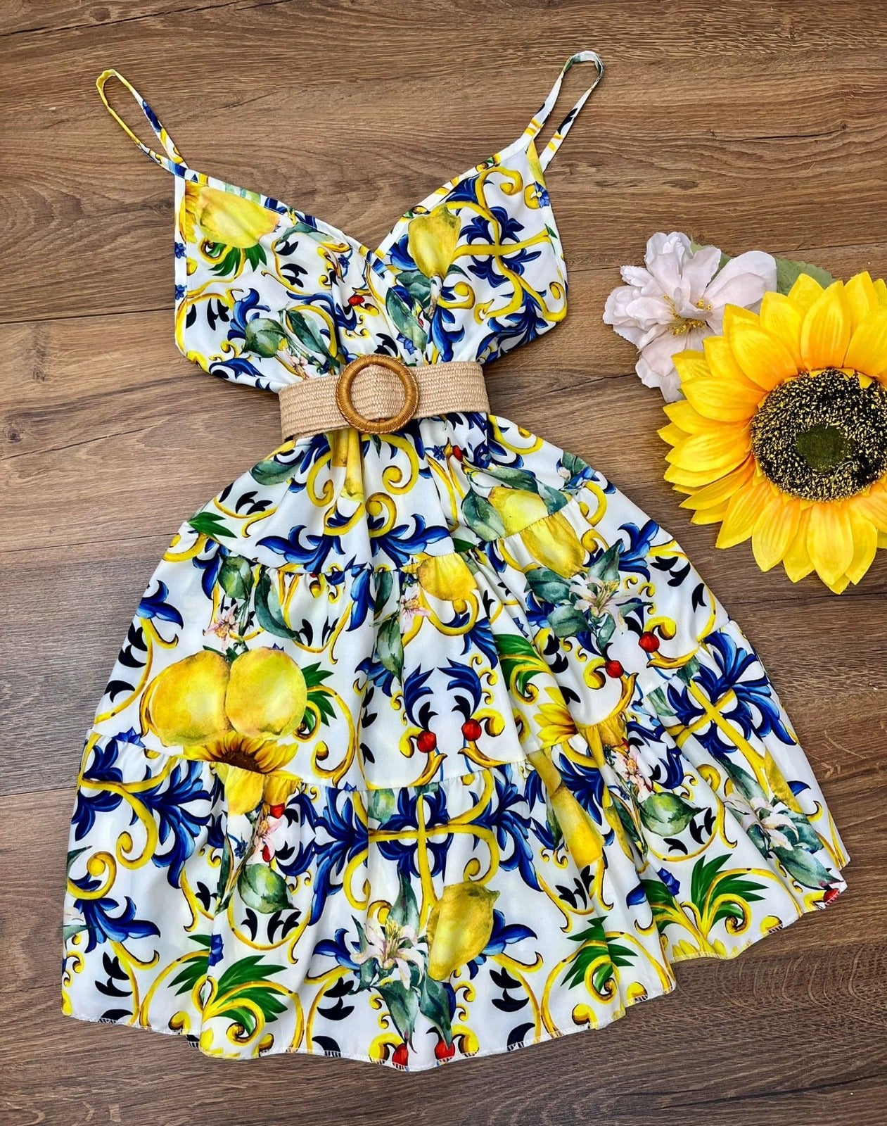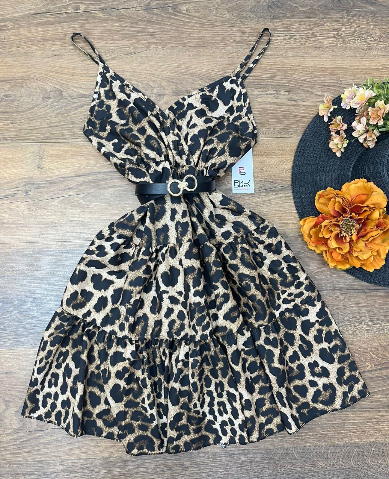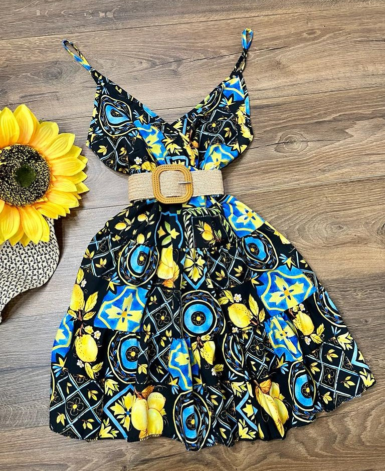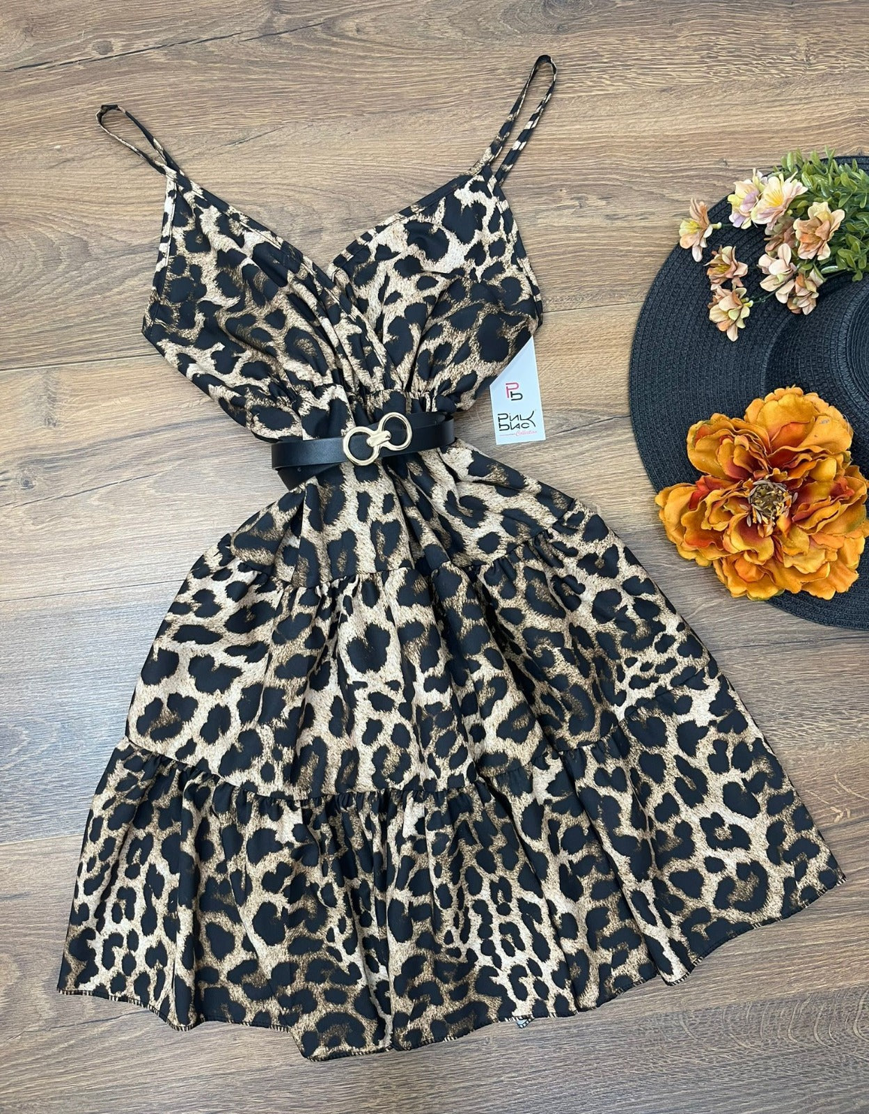 Abito in cotone con fantasia floreale astratta o animalier ed elastico in vita. Fabbricato in Italia.
