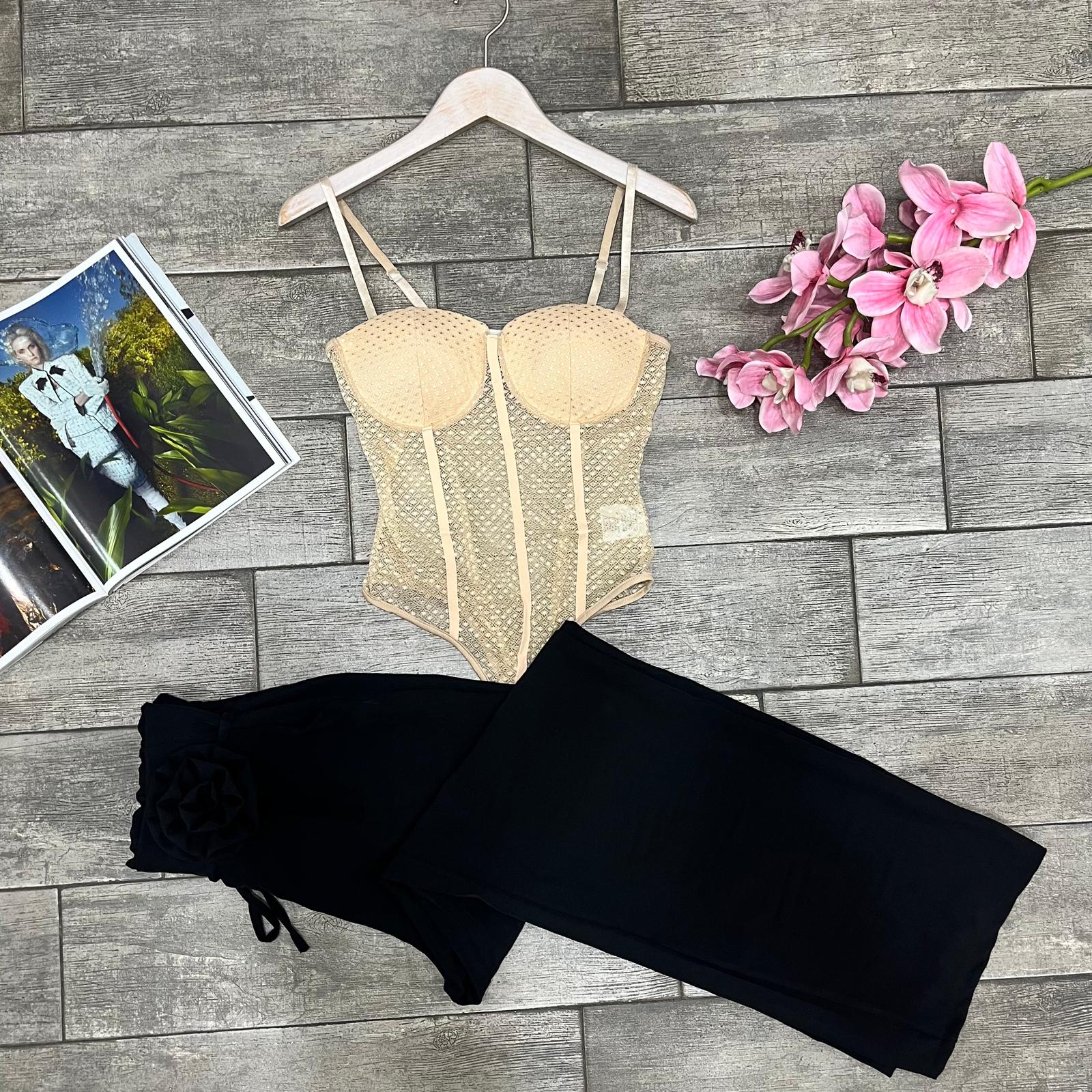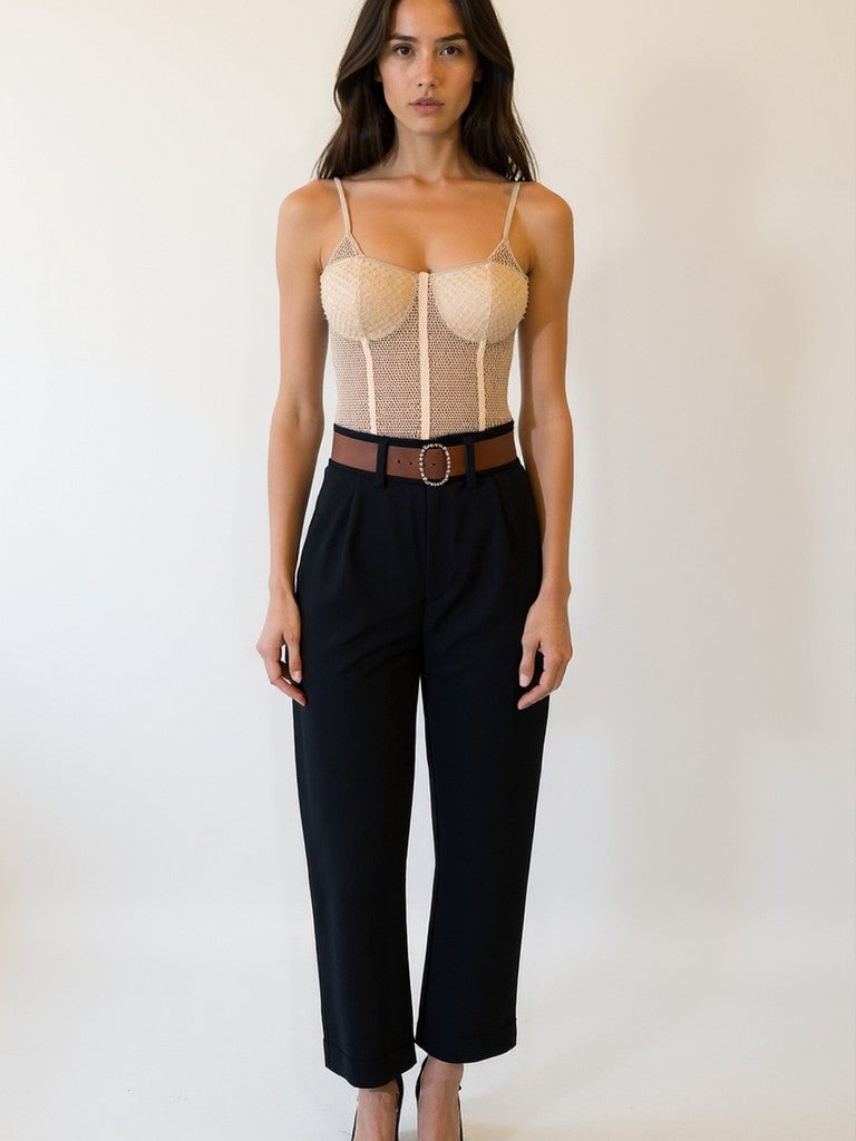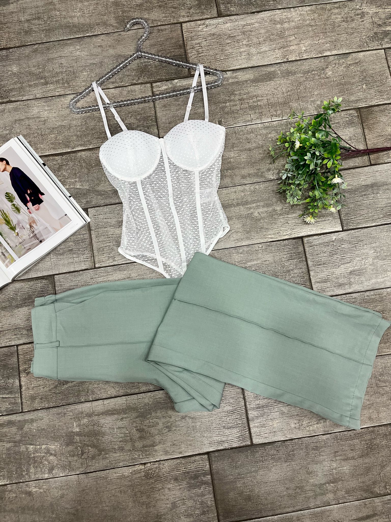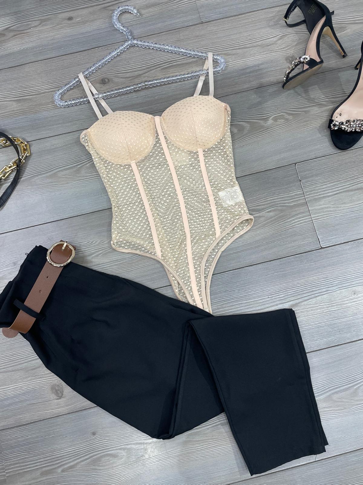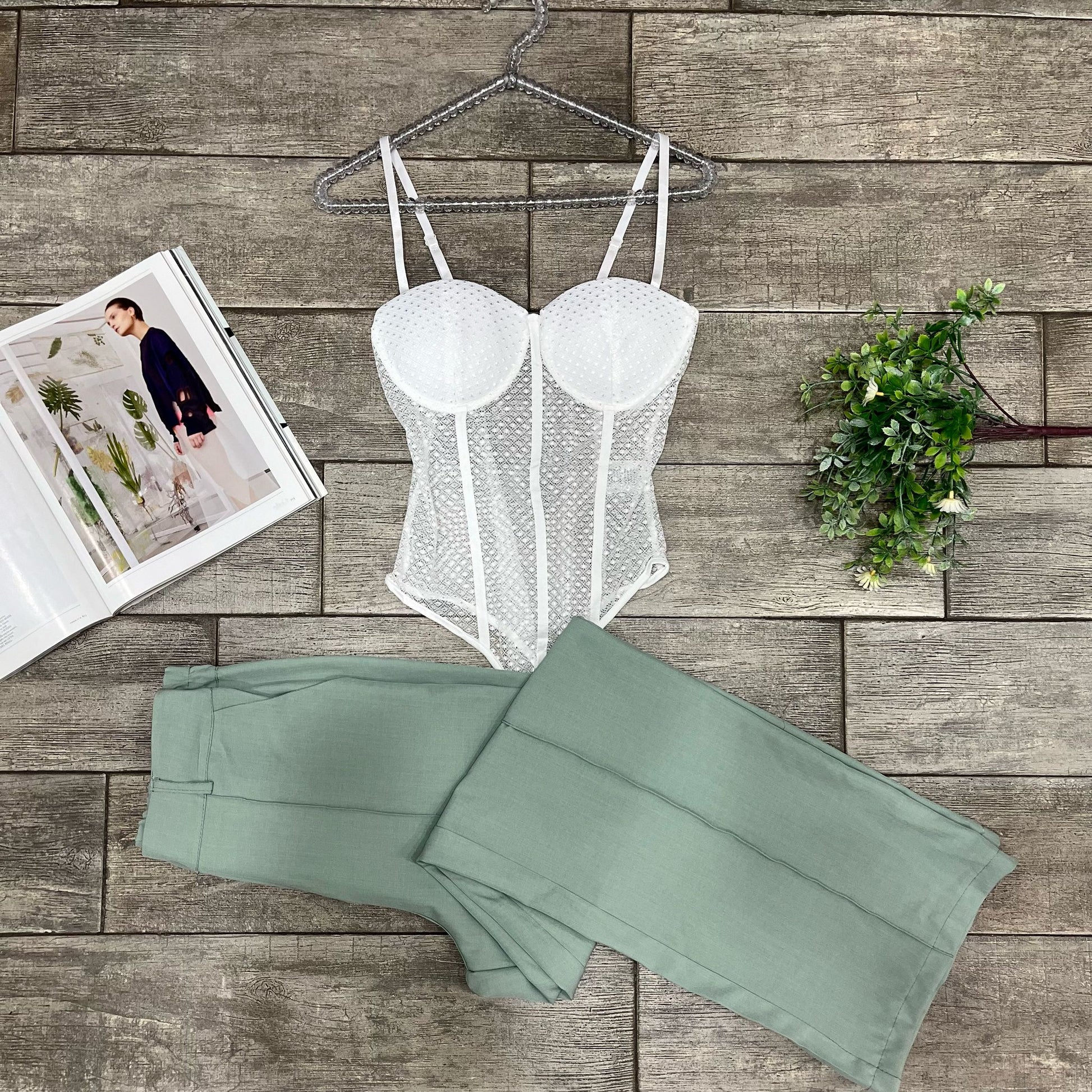 Body in pizzo con scollo a V, coppe preformate, spalline regolabili e chiusura con ganci sul cavallo. Chic, risalta la silhouette e il dècollettè per un look seducente e raffinato e una vestibilità ottimale e alla moda.