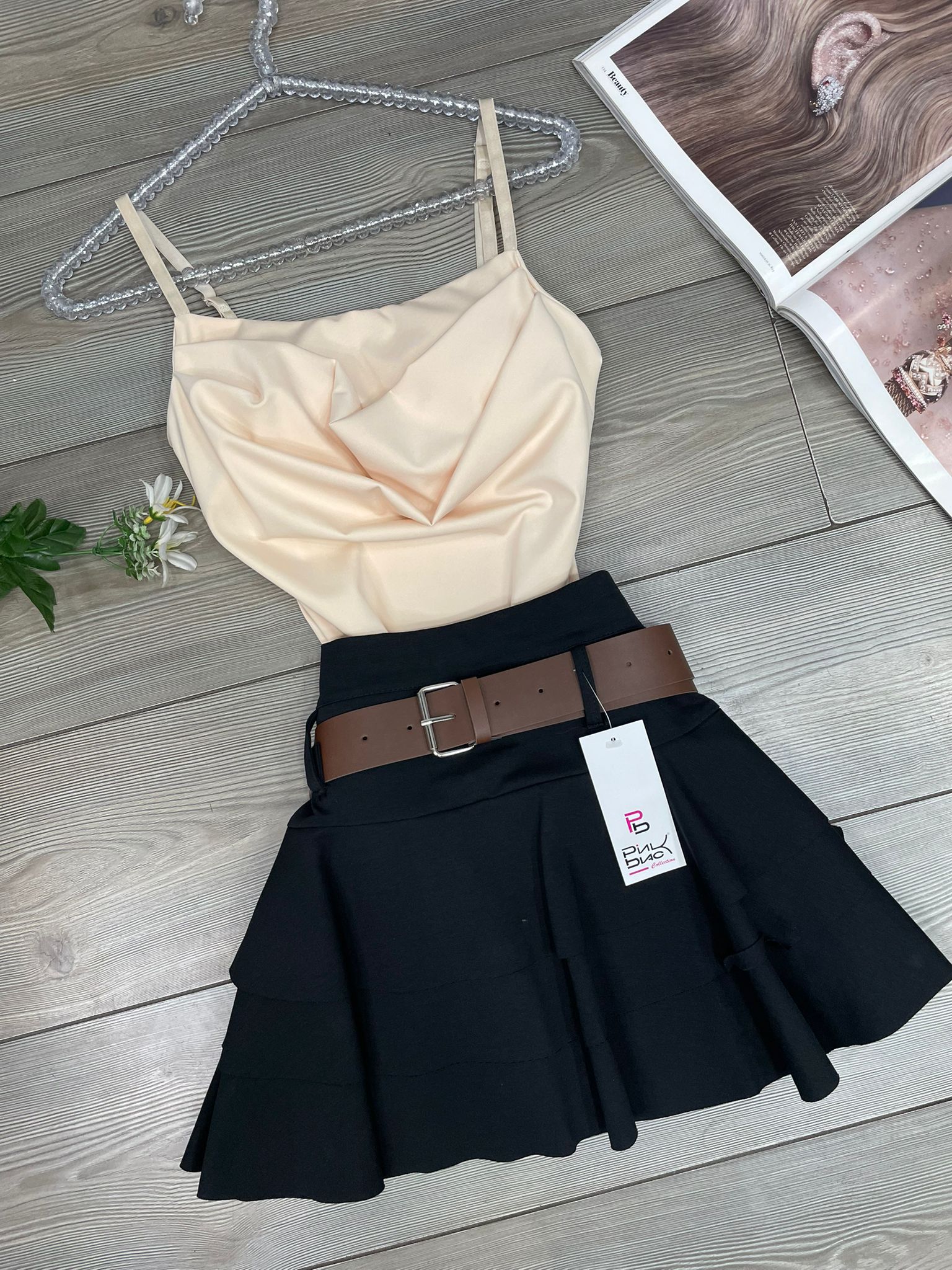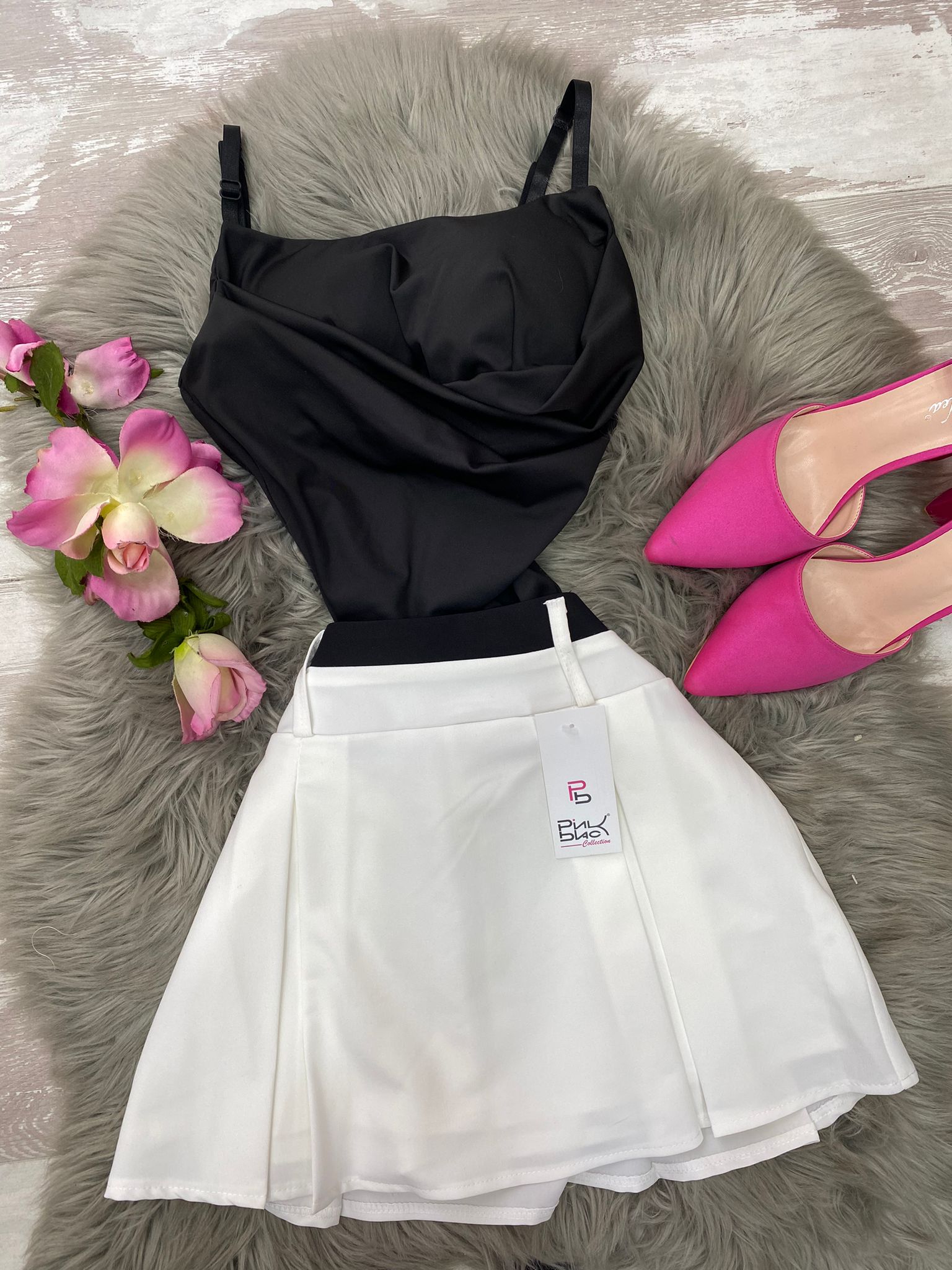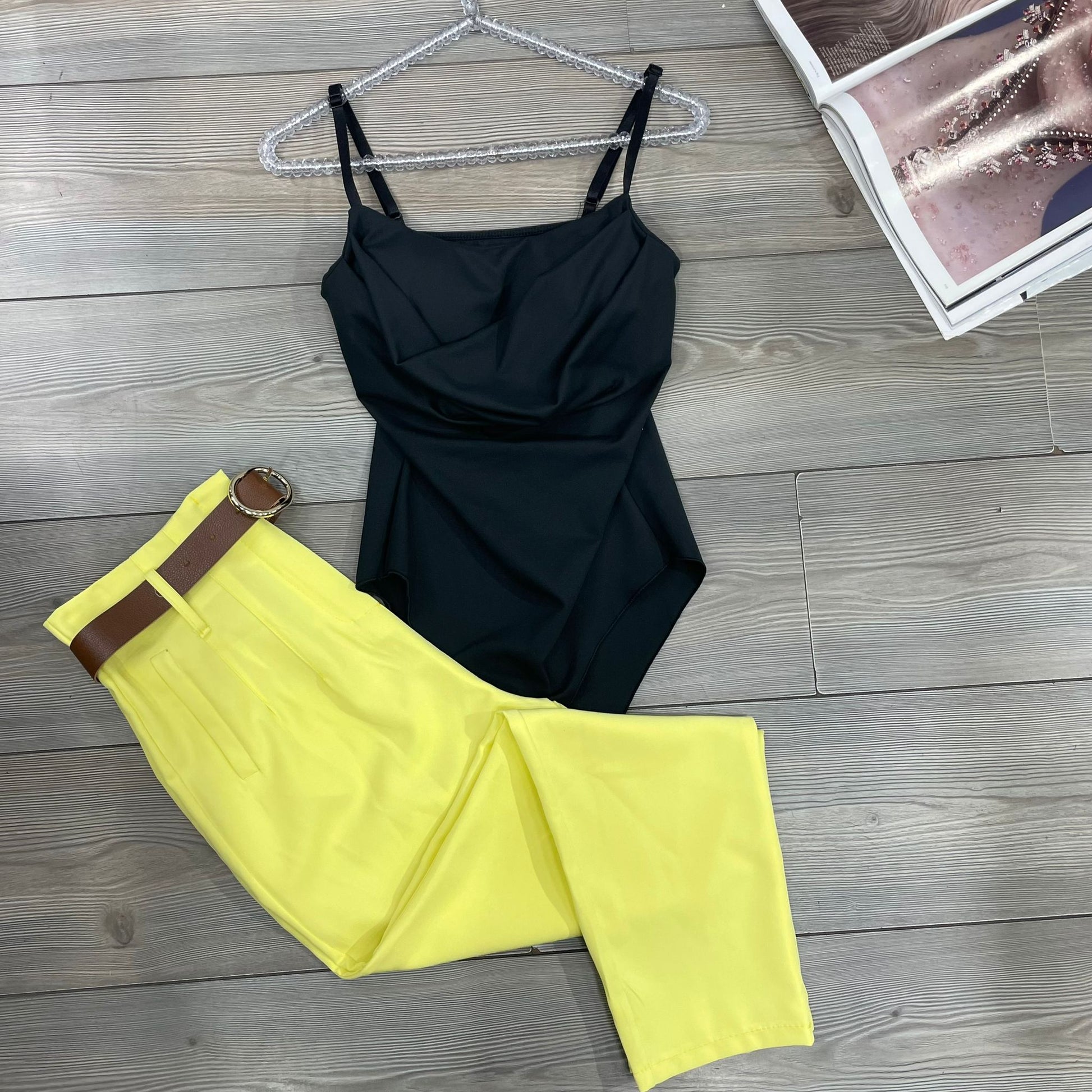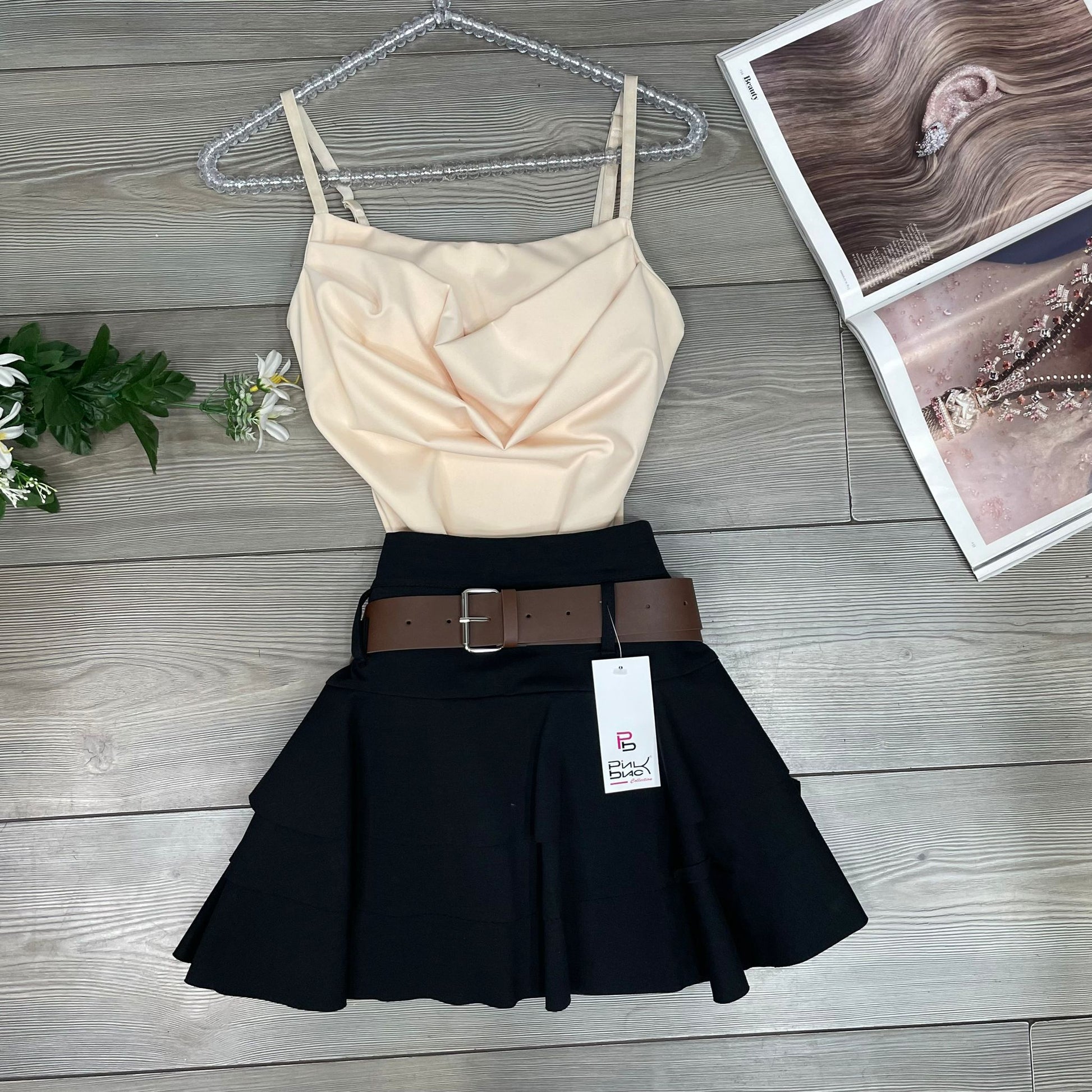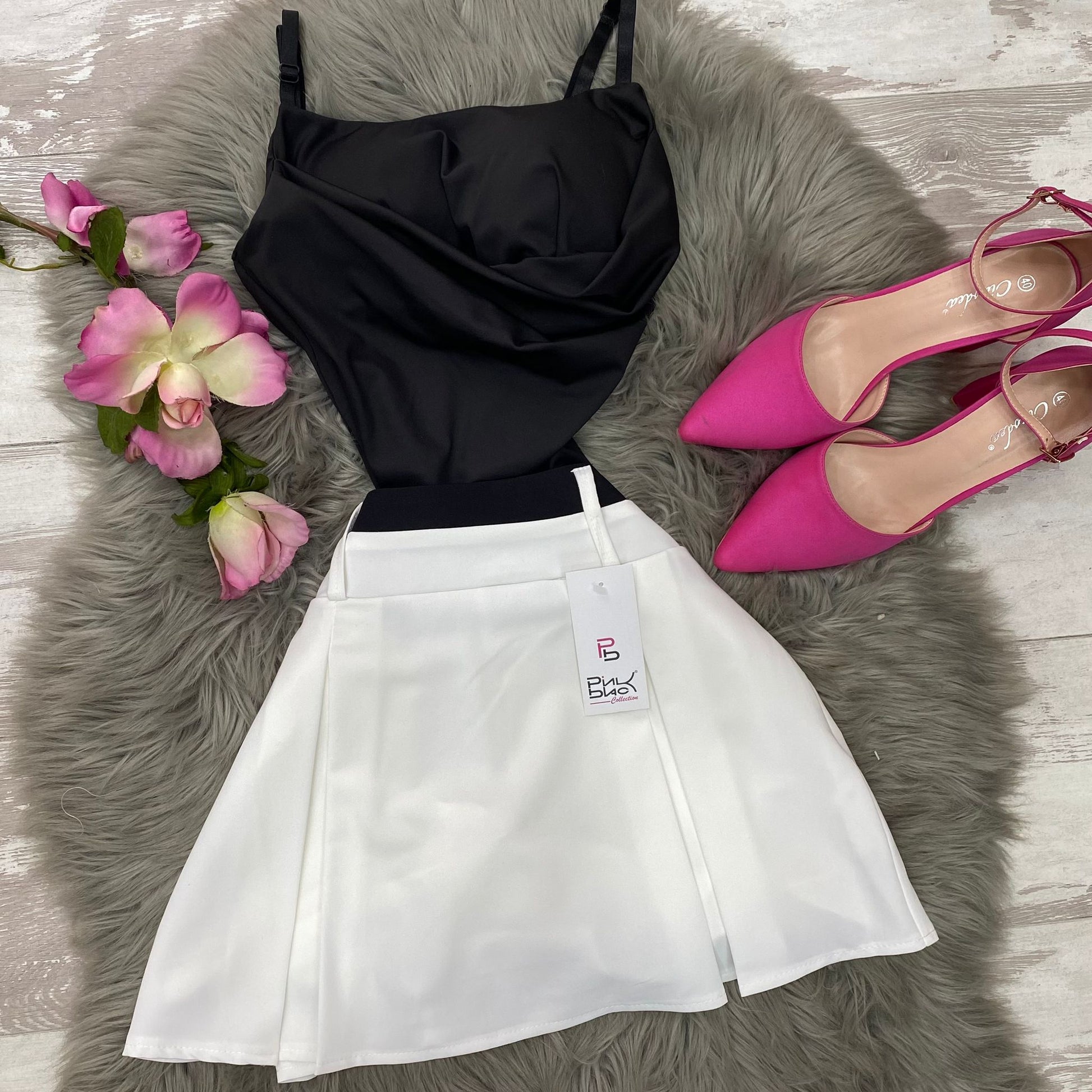 Body effetto lycra con balza, coppe preformate e chiusura ganci sul cavallo. Fabbricato in Italia.
