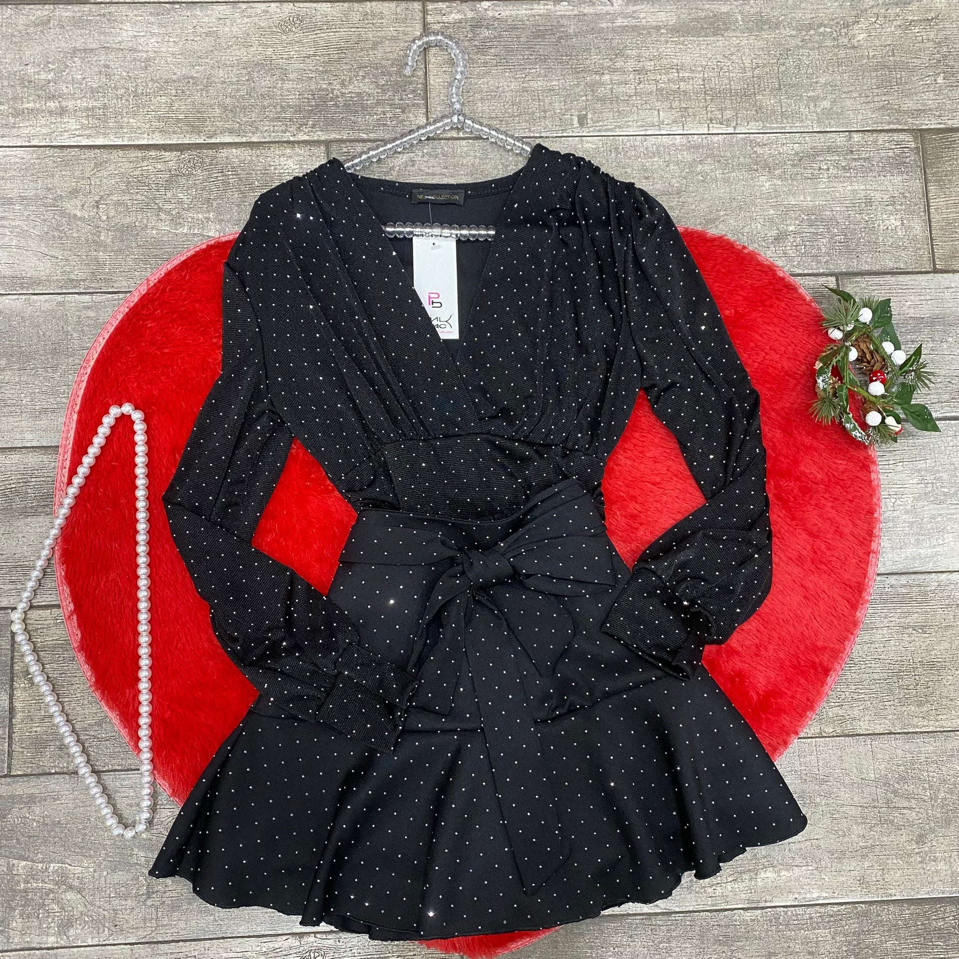 Body a manica lunga con scollo a V con chiusura con ganci sul cavallo e applicazioni in rilievo color argento.