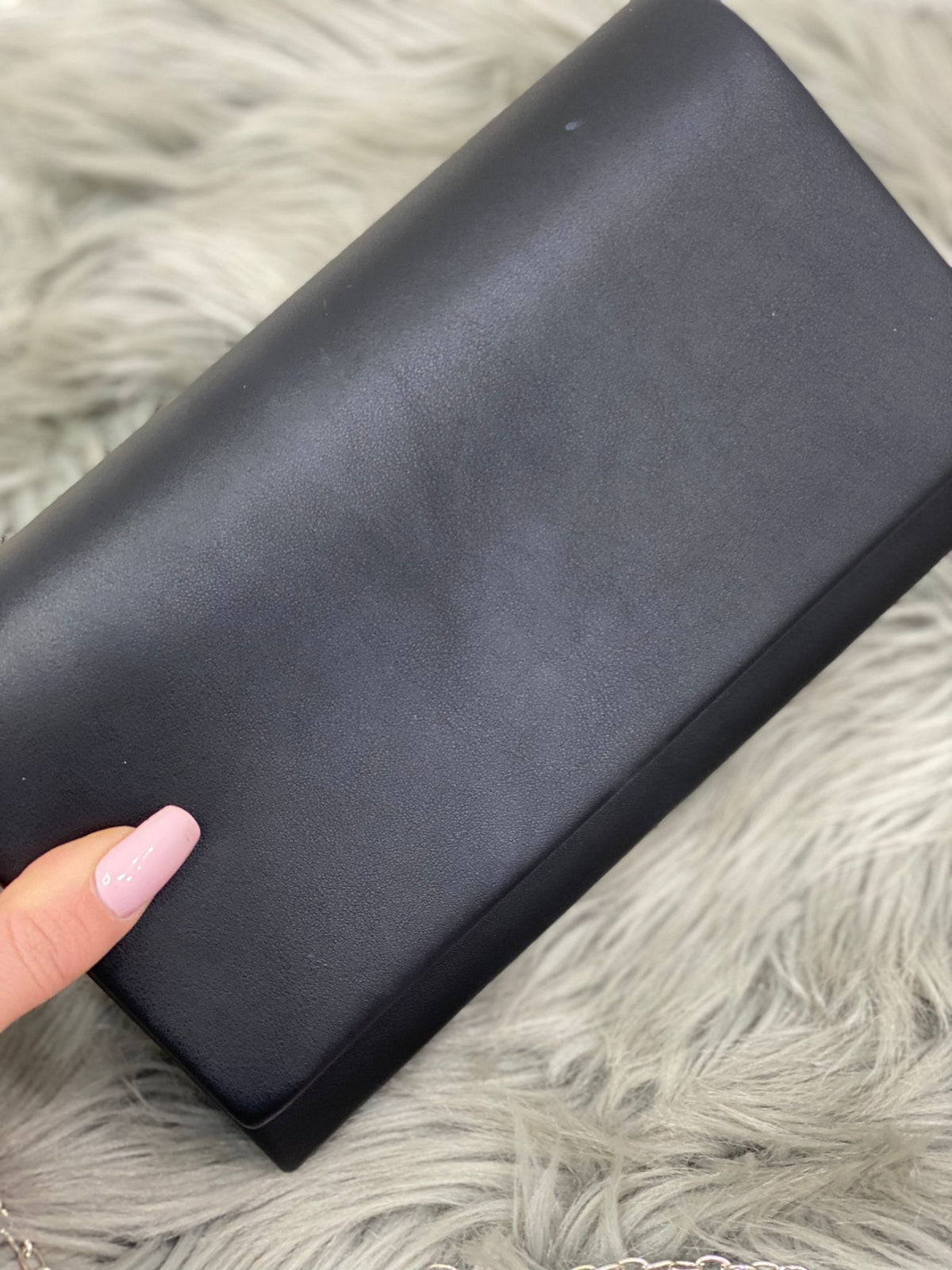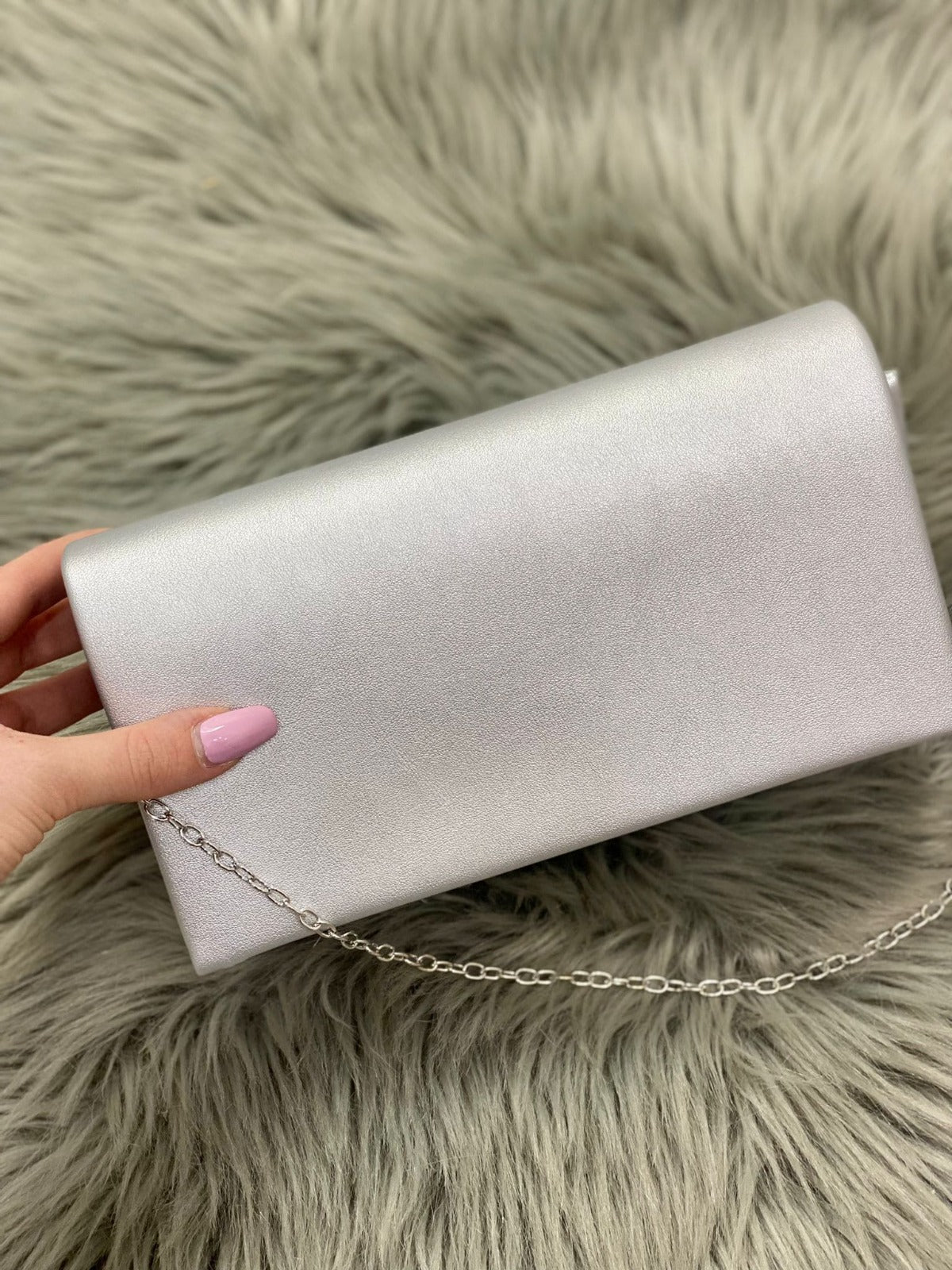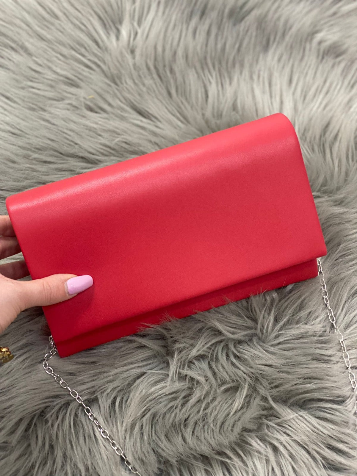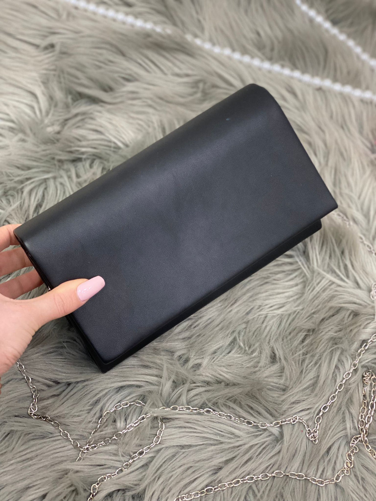 Pochette in ecopelle con in catena removibile.