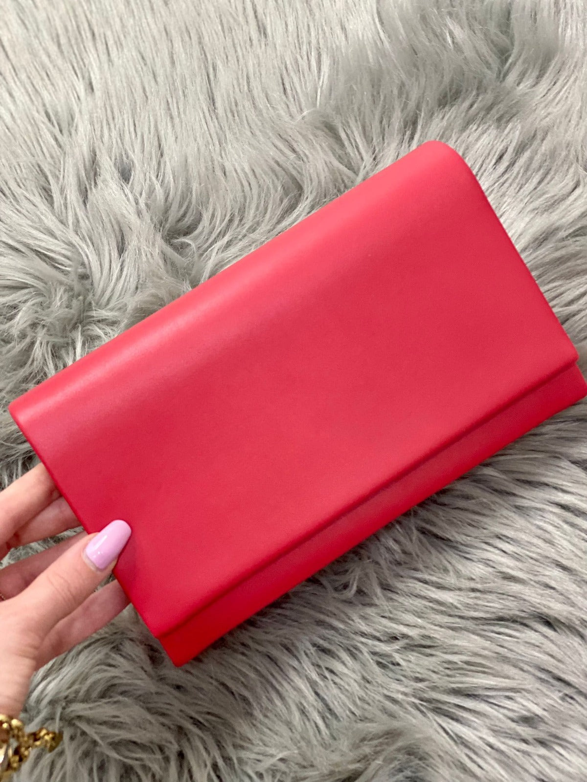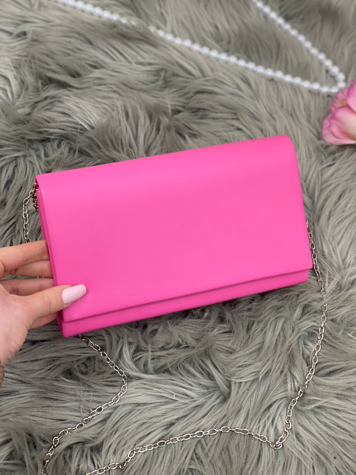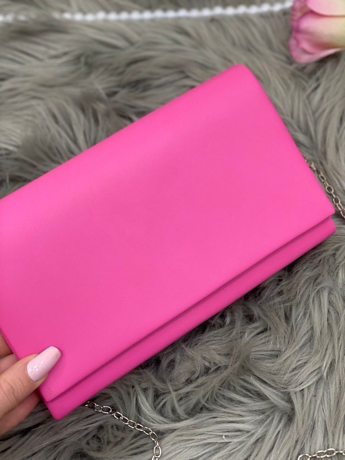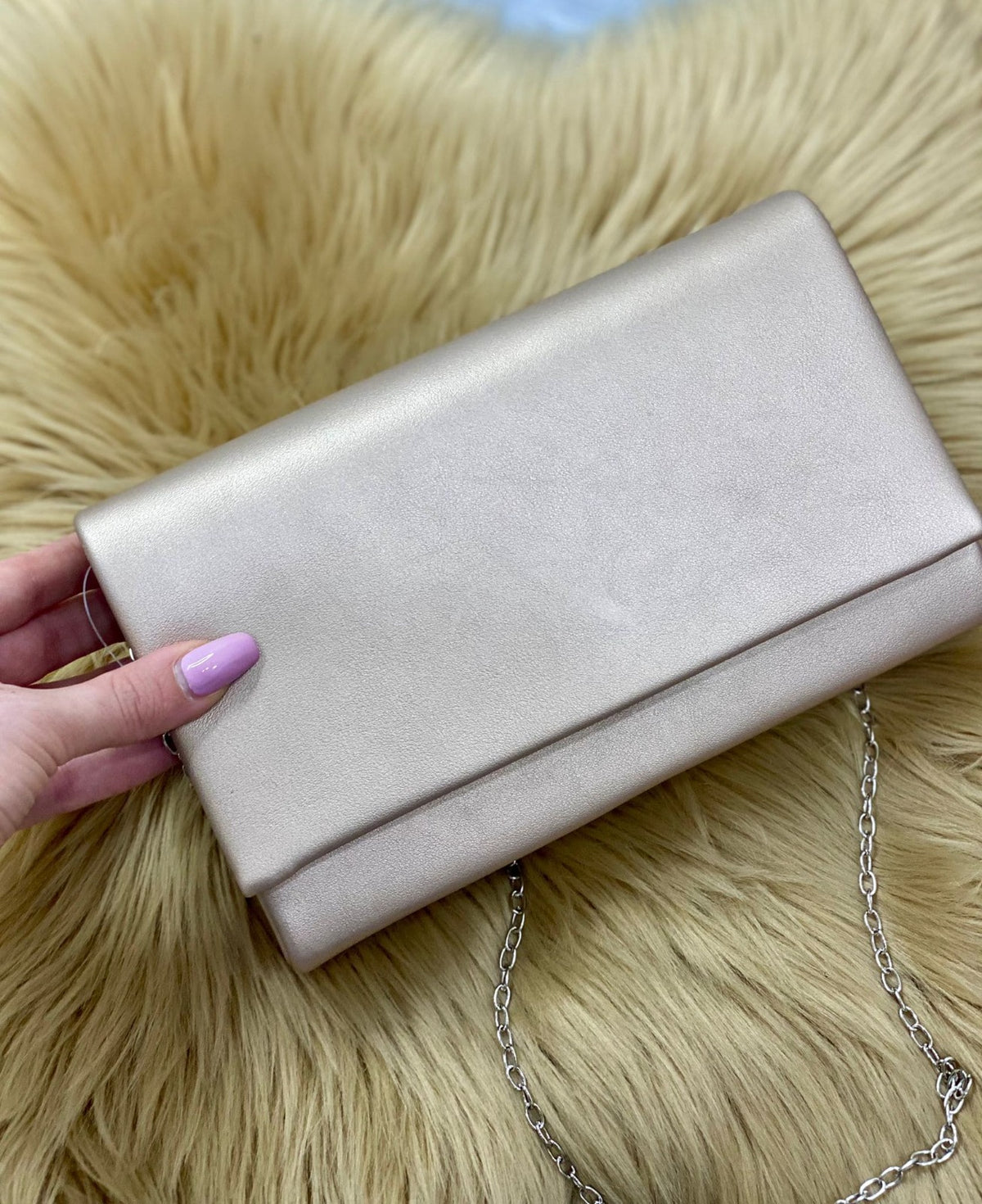 Pochette in ecopelle con in catena removibile.