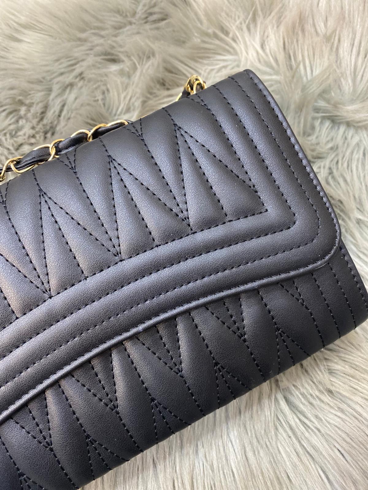 Borsa trapuntata in ecopelle con tracolla in catena.