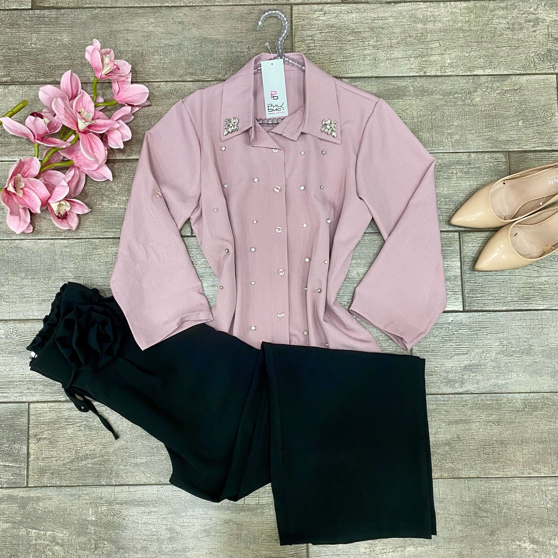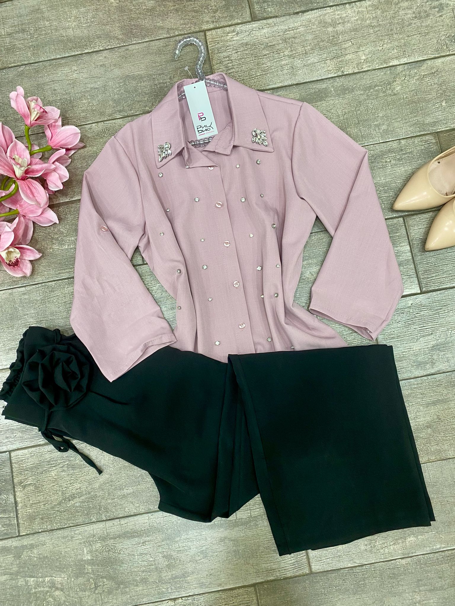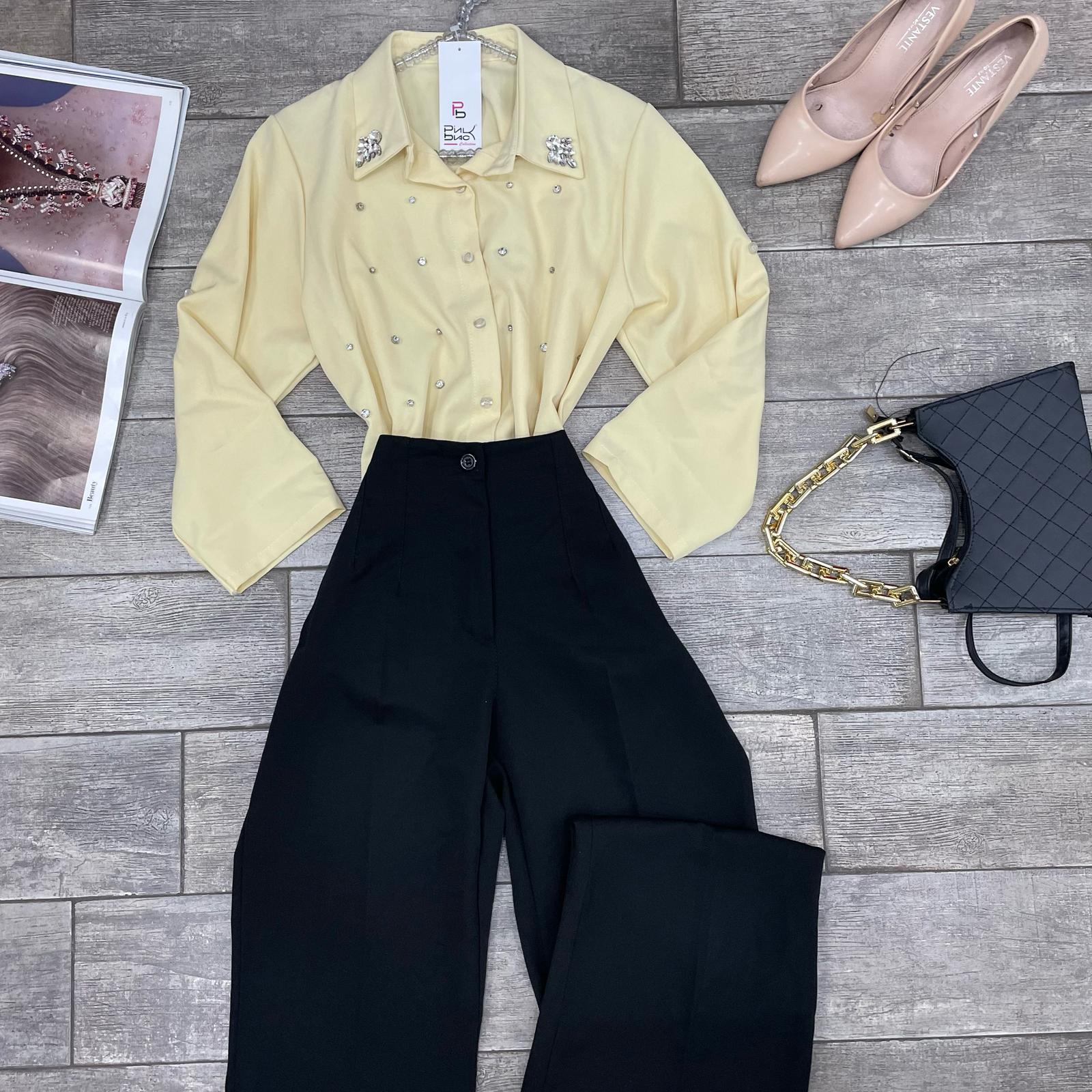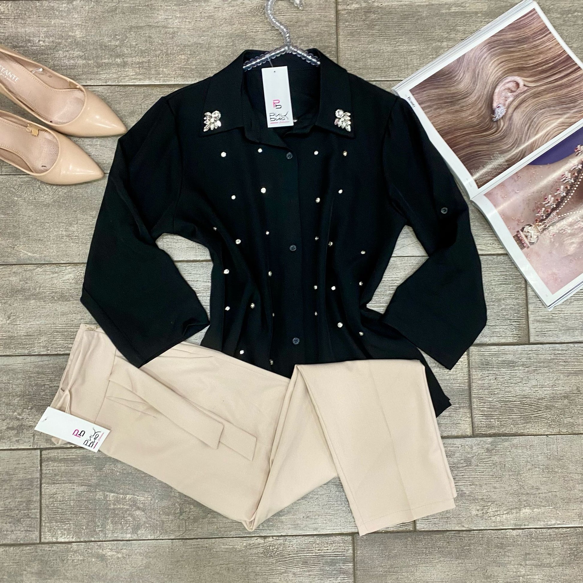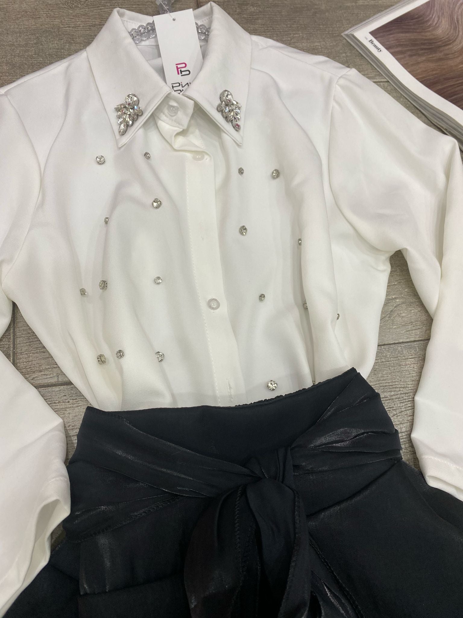 Camicia manica lunga in tessuto strutturato con brillantini color argento