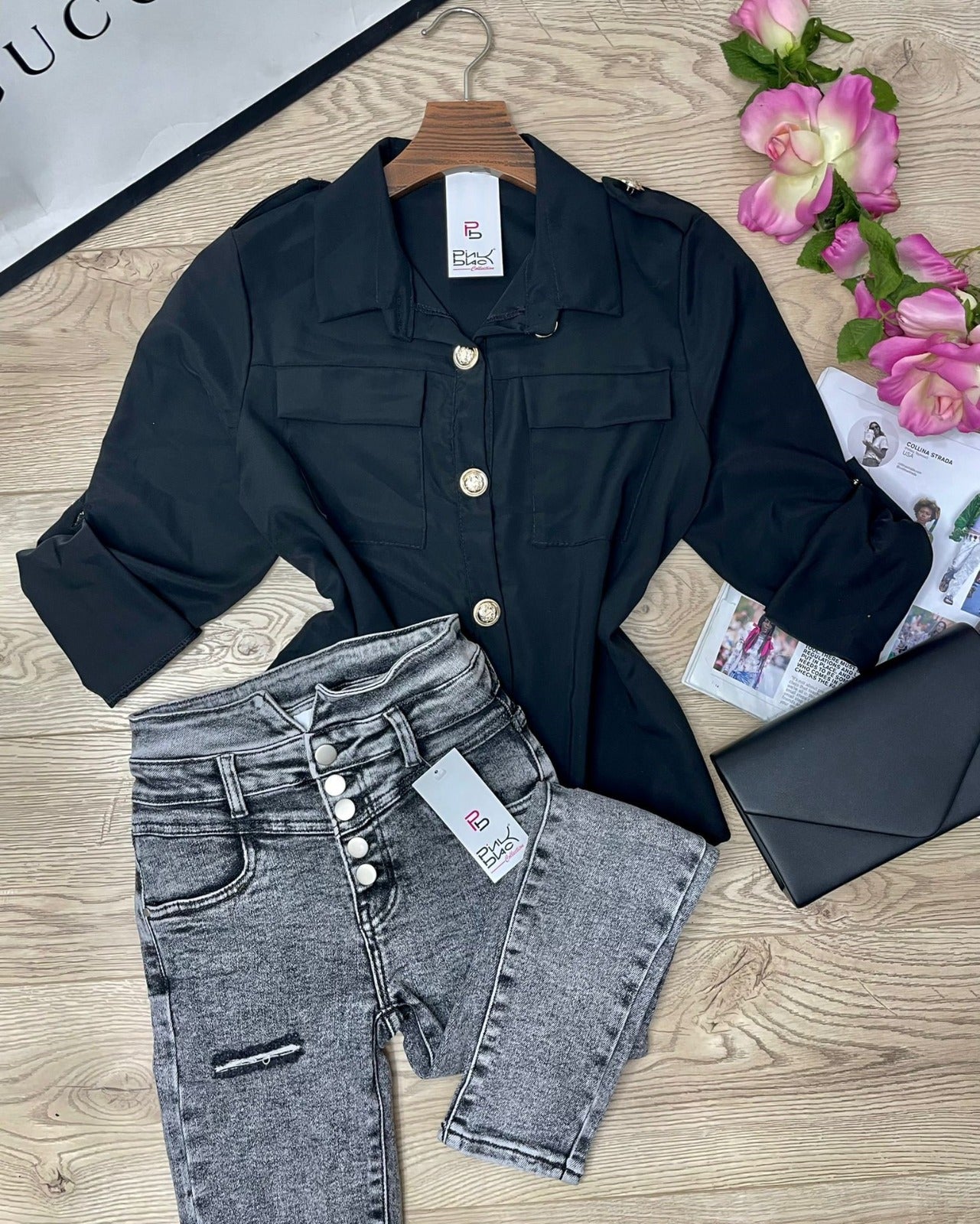 Camicia in tessuto strutturato con tasche e maniche con risvolto. Fabbricato in Italia.