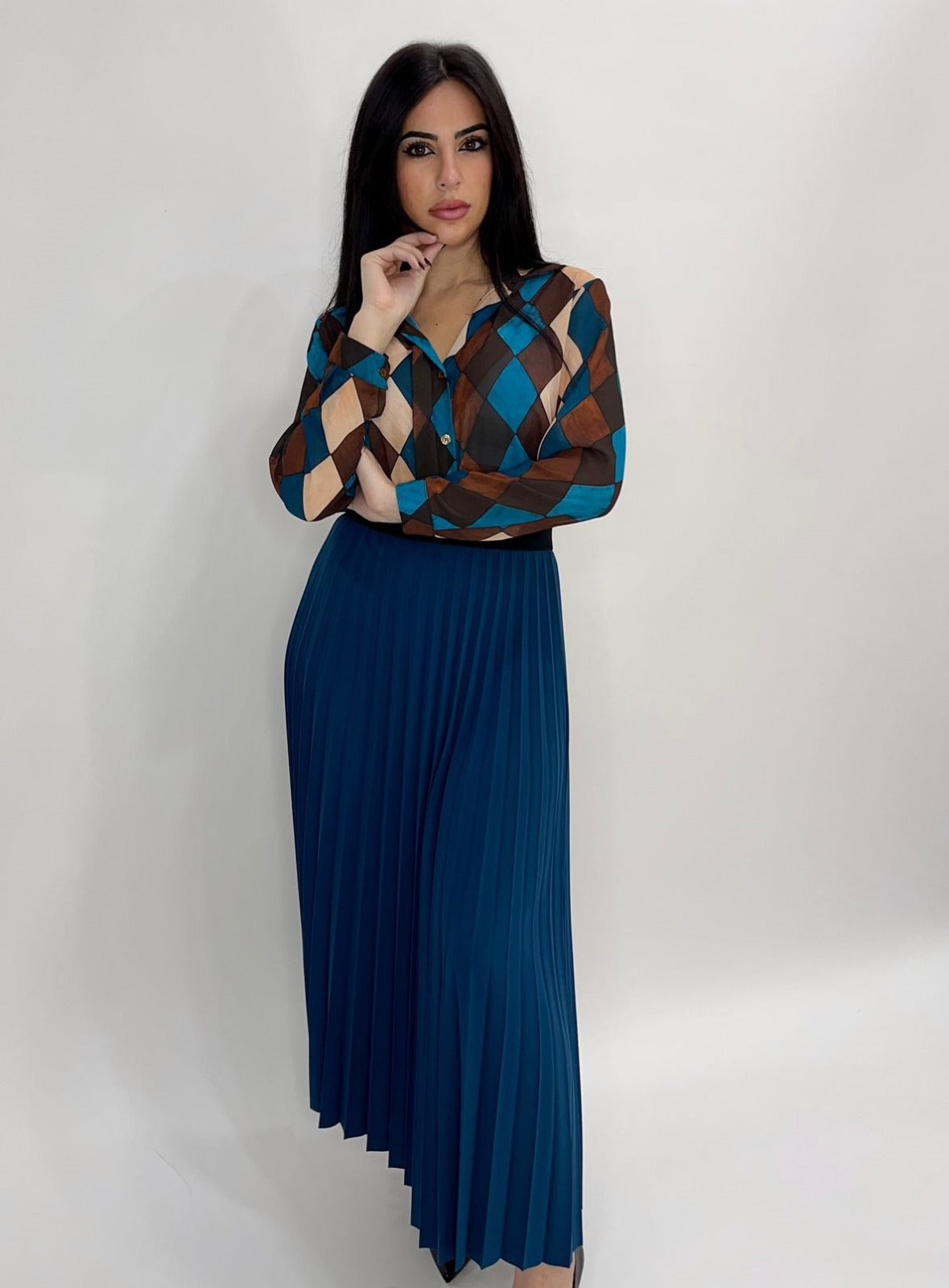 Camicia in chiffon velata con design a rombi multicolor. Fabbricato in Italia.