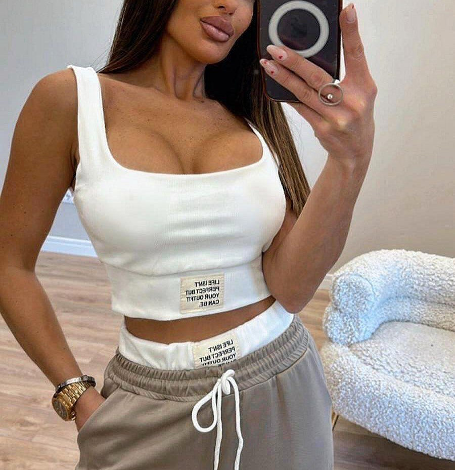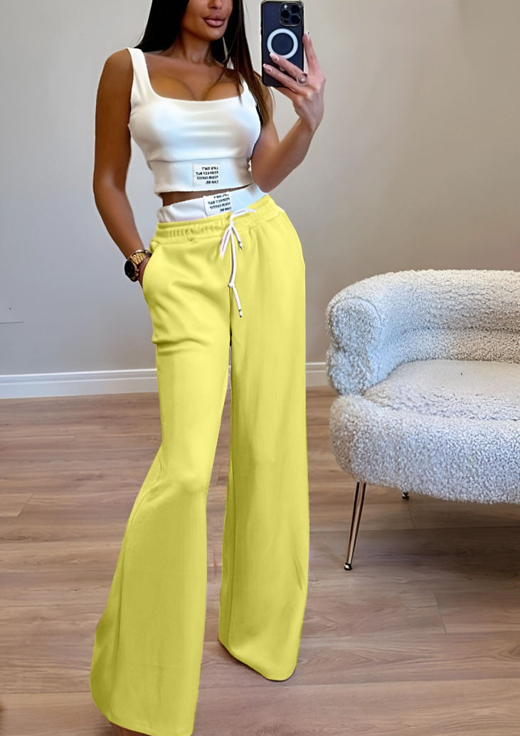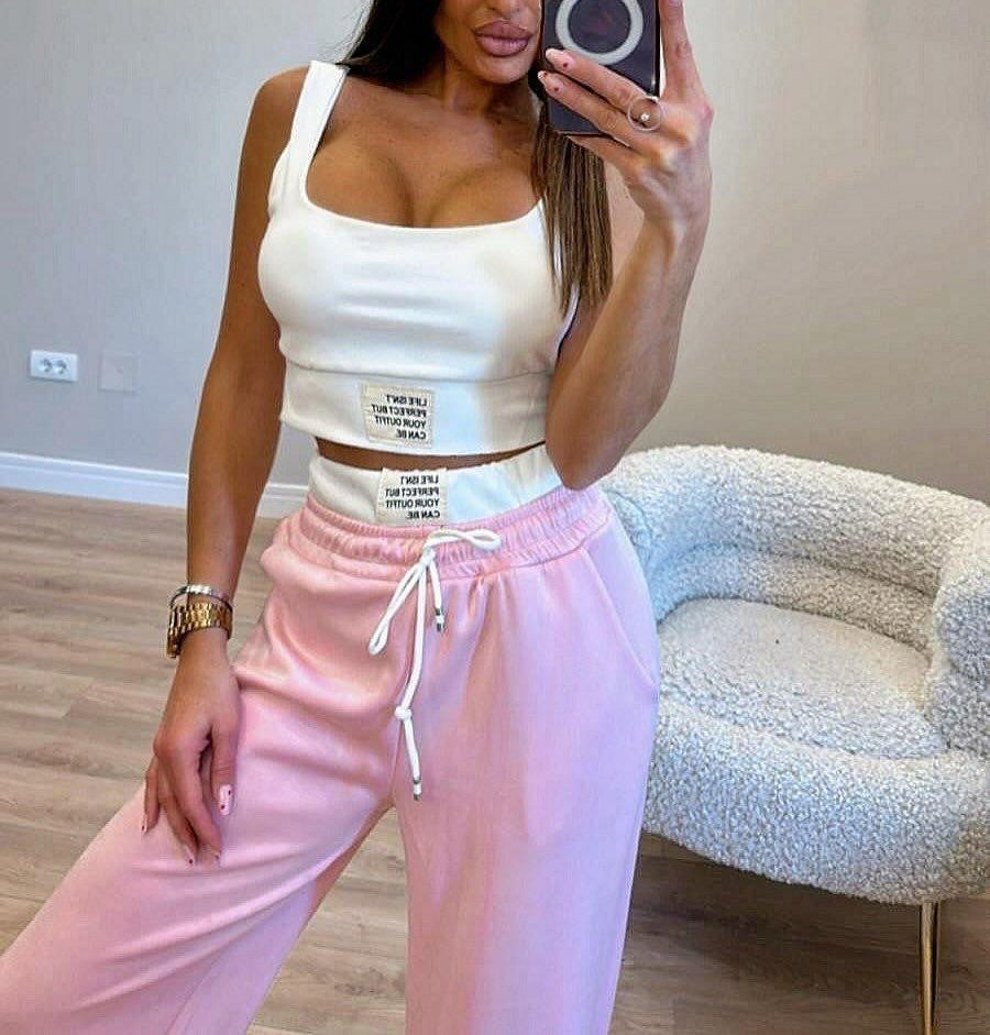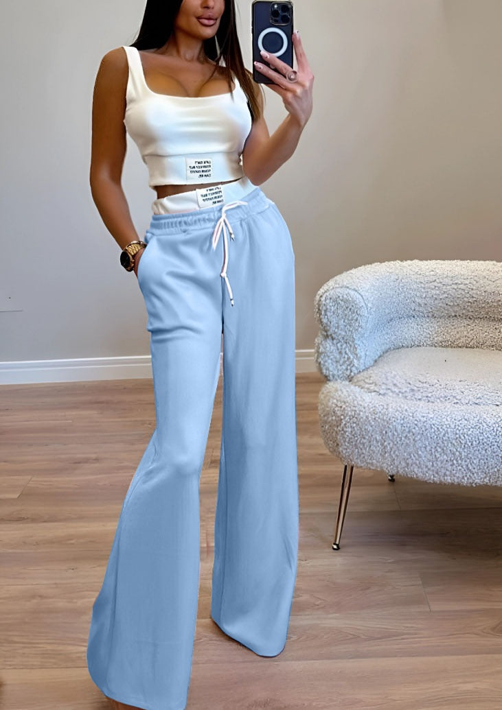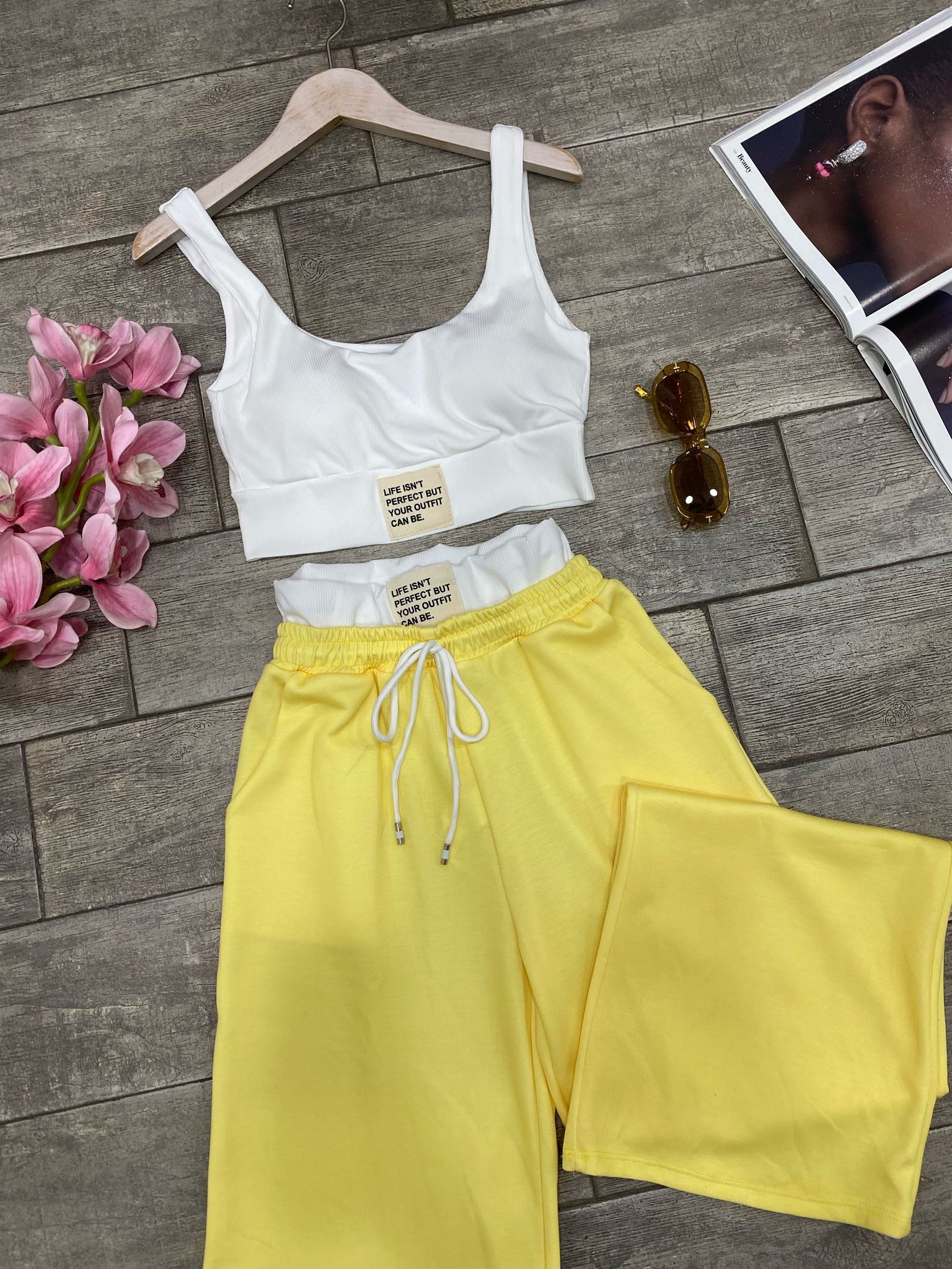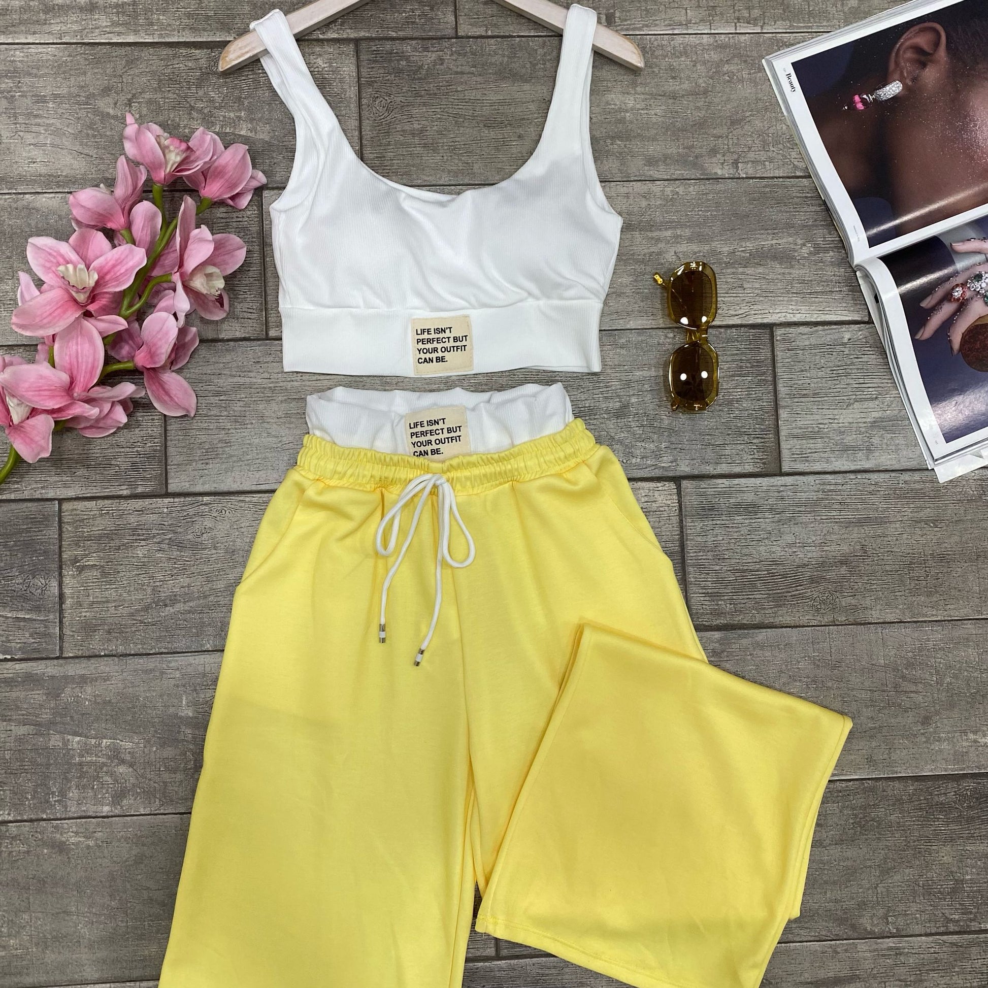 Completo tuta con top modello crop a costine e pantalone vita alta modello palazzo
