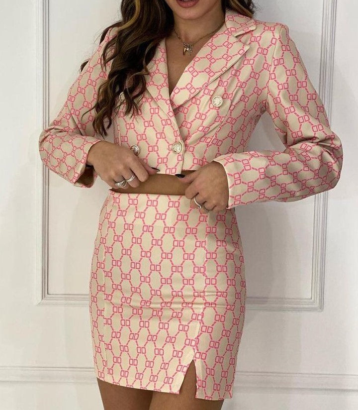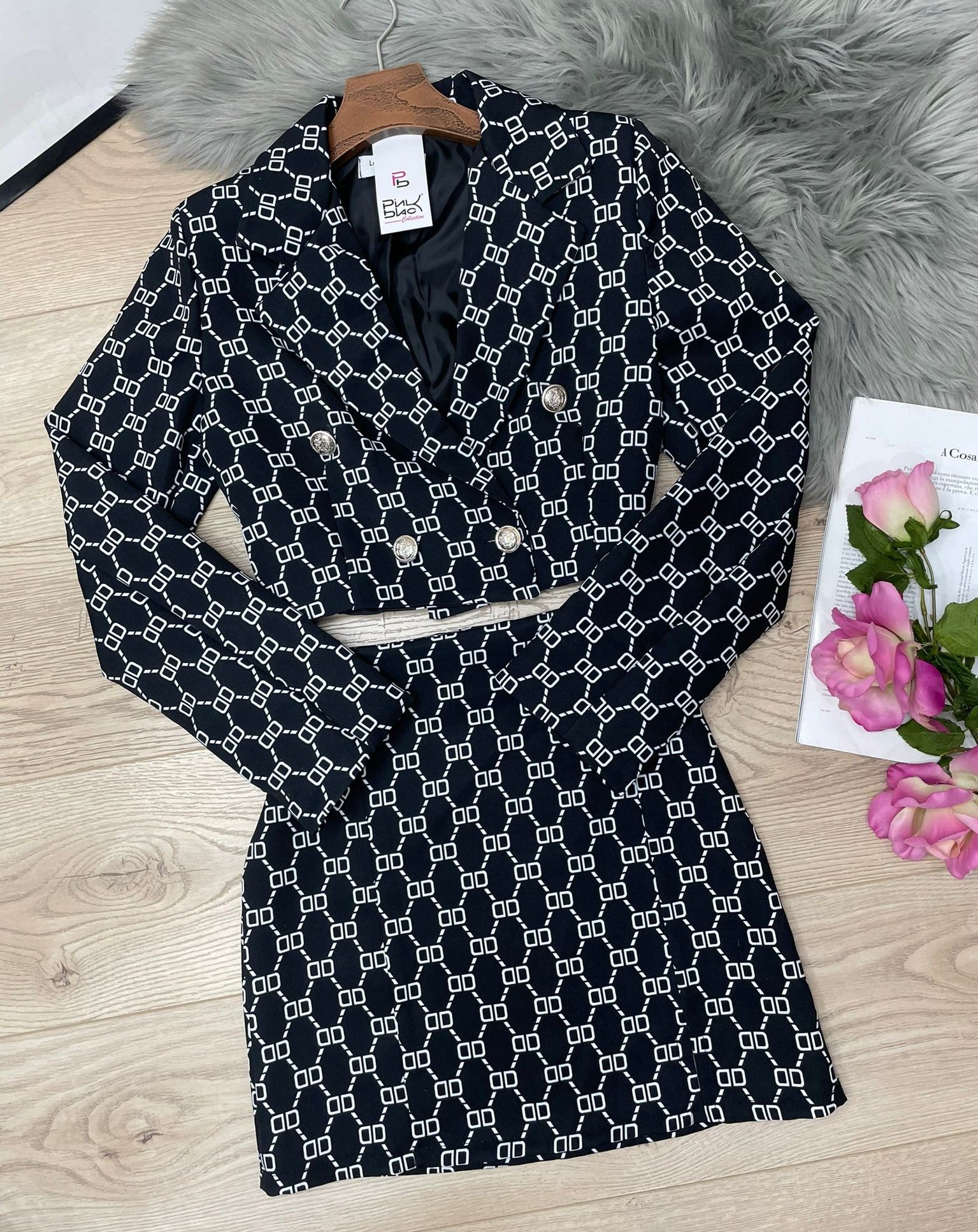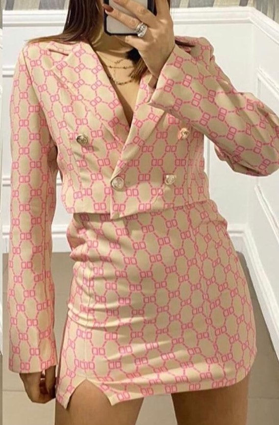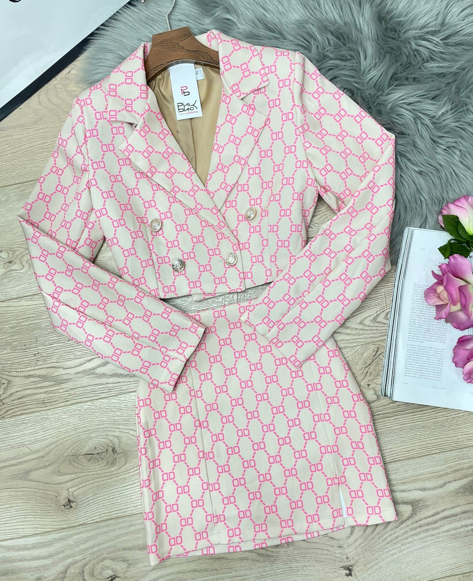 Komplette Jacke - strukturierter Stoffrock mit abstrakter Fantasie. Kurzmodelljacke mit klassischem Rever, Kreuzkreuz, Knöpfe und Langarm mit gepolsterten Innen-Schultergurten; Minirock mit kleinem Schlitz und Seitenverschluss mit Reißverschluss. Glamour, passt sich an verschiedene Anlässe an, für ein vielseitiges und modisches Look. Die Anpassung von Größen ist regelmäßig. Hergestellt in Italien.