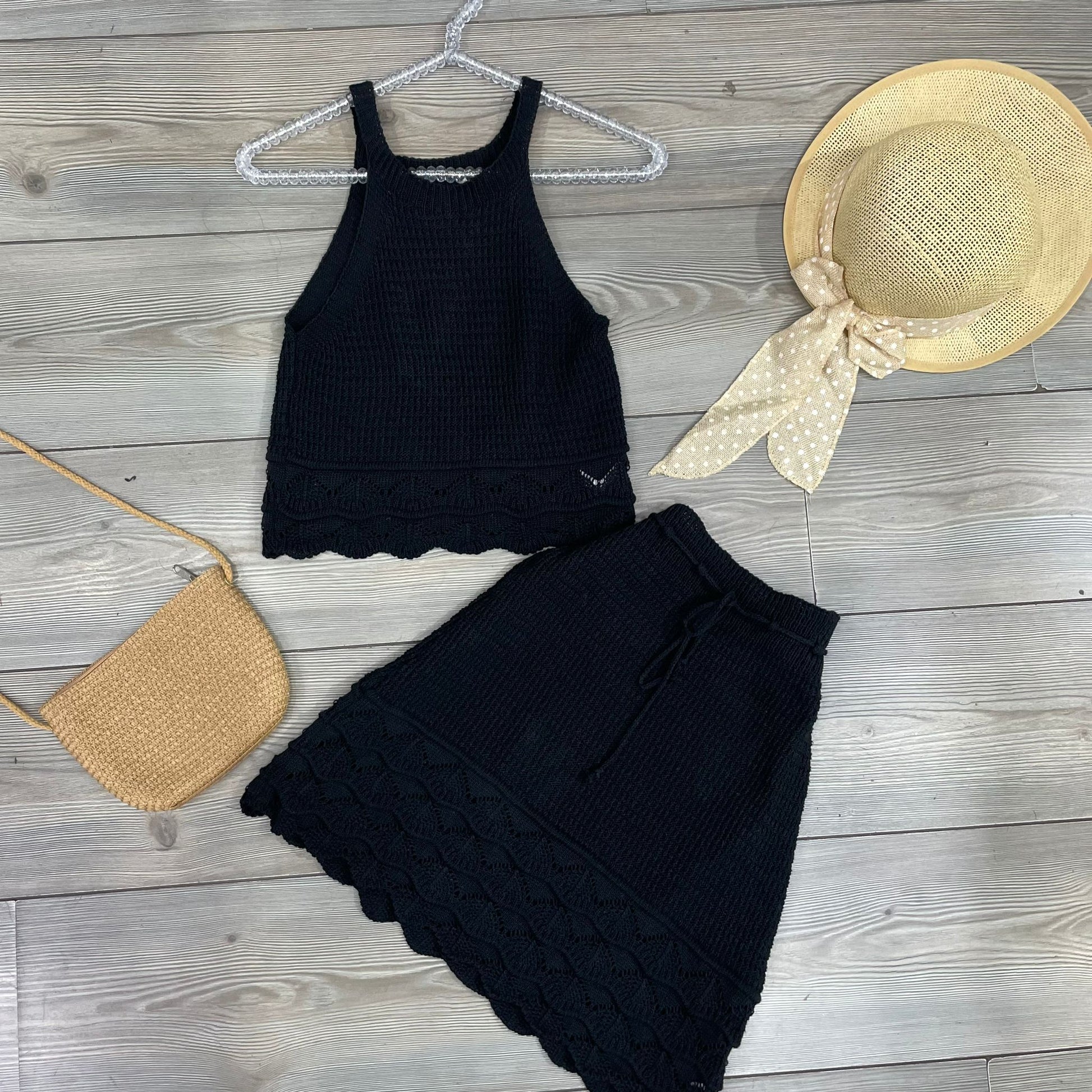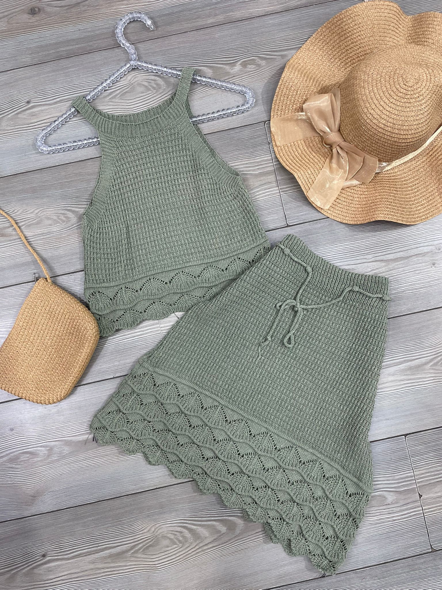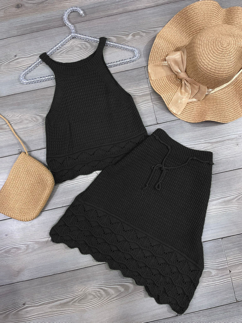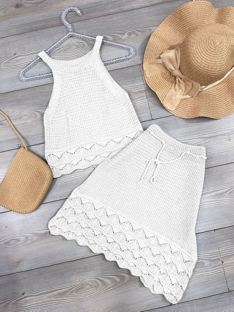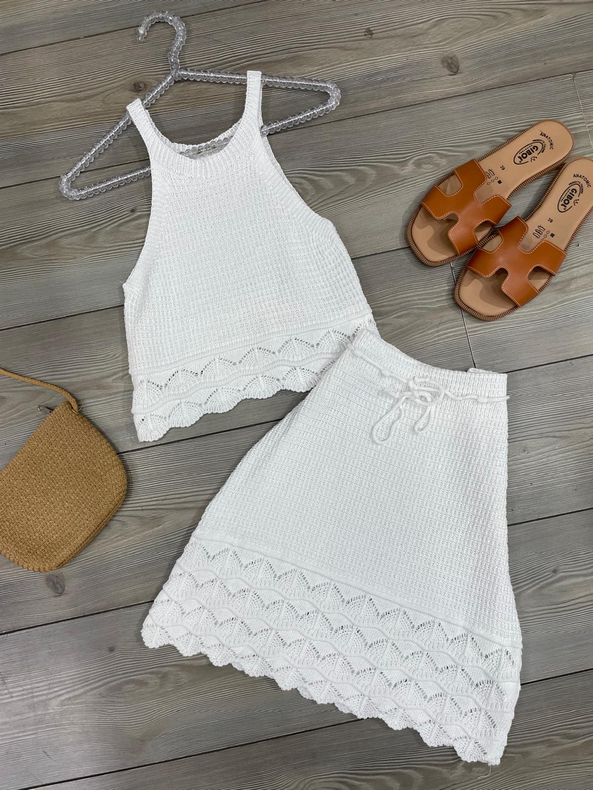 Completo traforato con top e gonna con elastico in vita e ricamo
