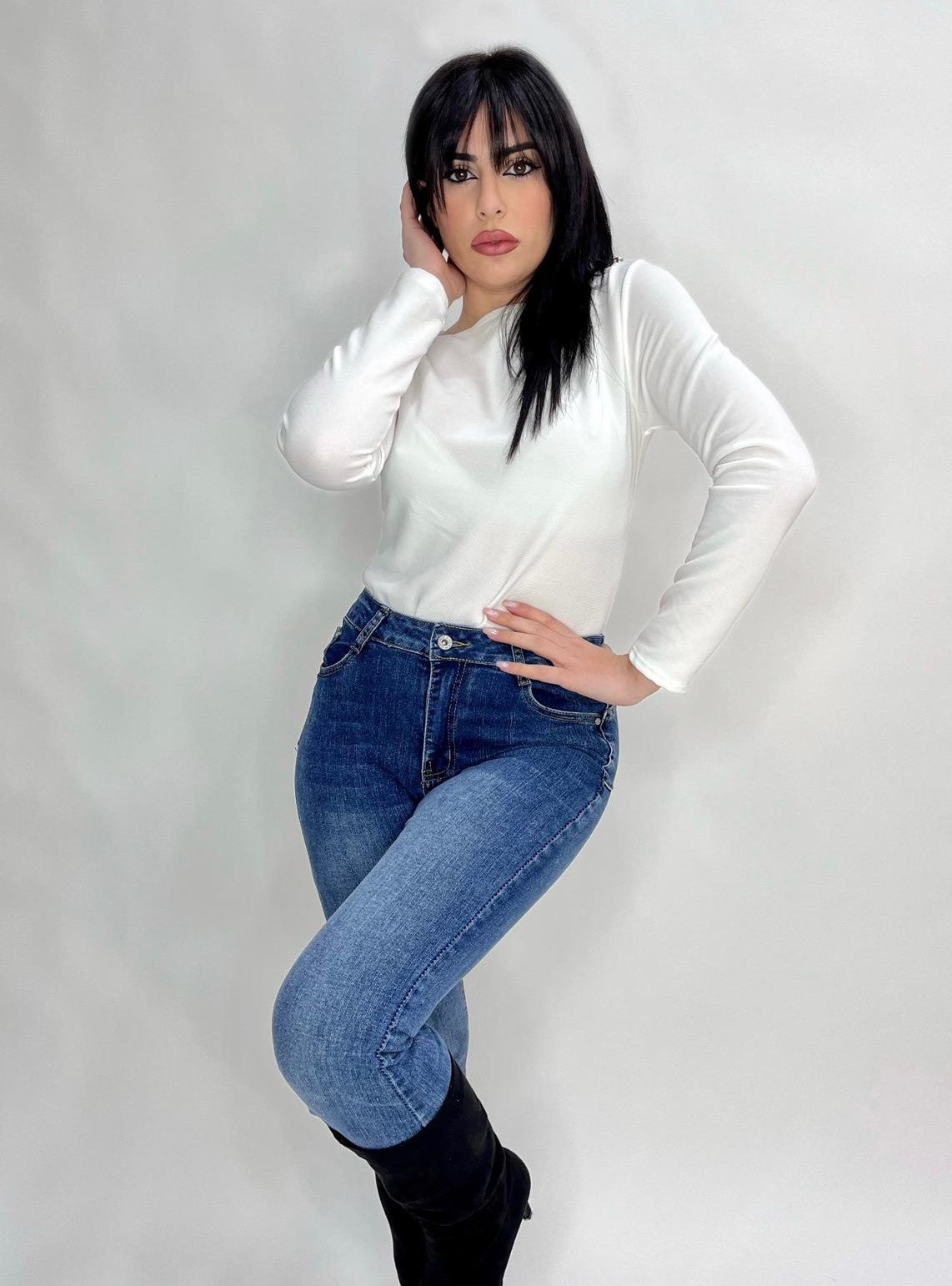 Body in tessuto strutturato con bottoni sulla spalla e chiusura con ganci sul cavallo. Fabbricato in Italia.