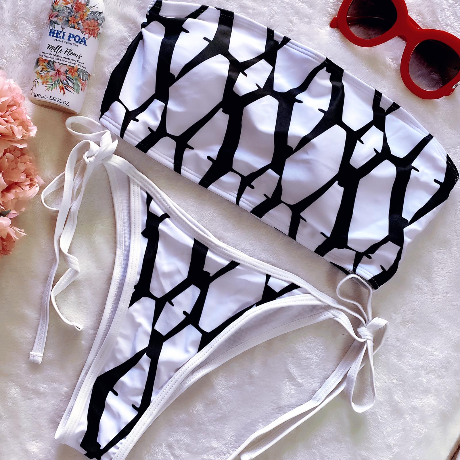 Zweiteiliges Kostüm mit Grafikband-Top und einstellbarer Briefs-Tanga.