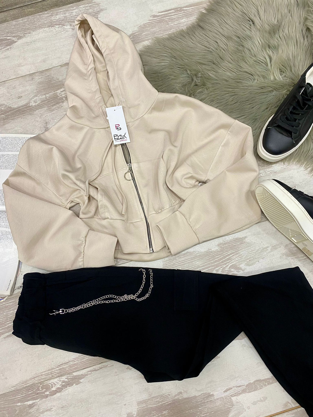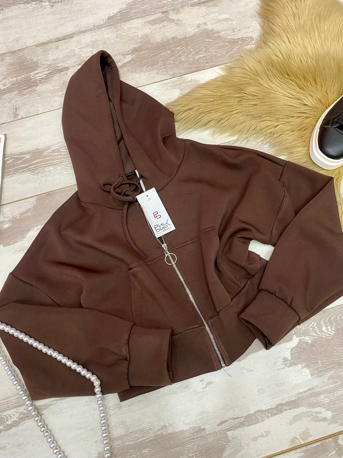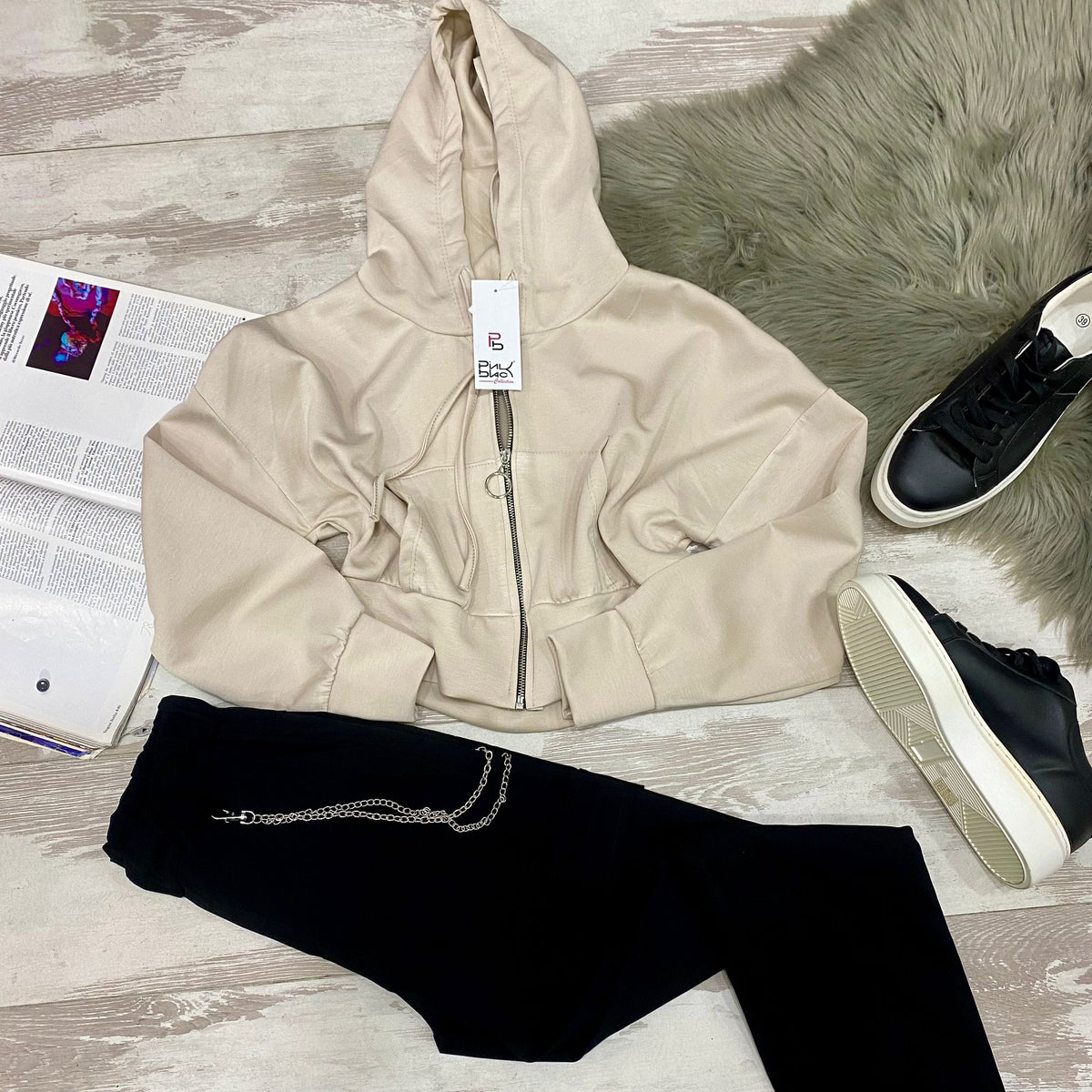 Felpa con cerniera ,tasche centrali e cappuccio Fabbricata in Italia.