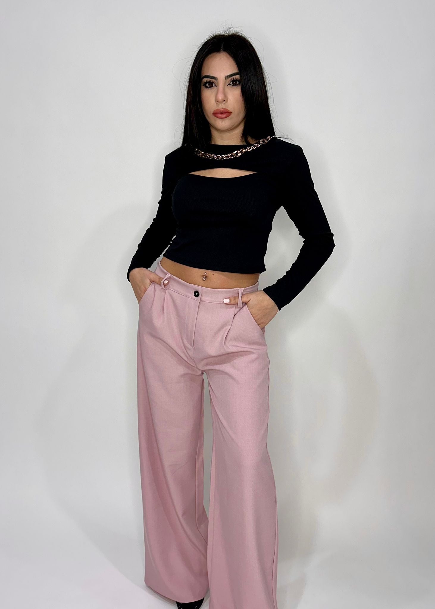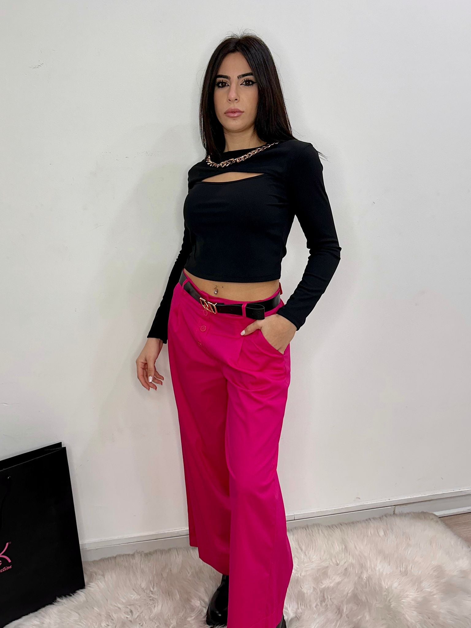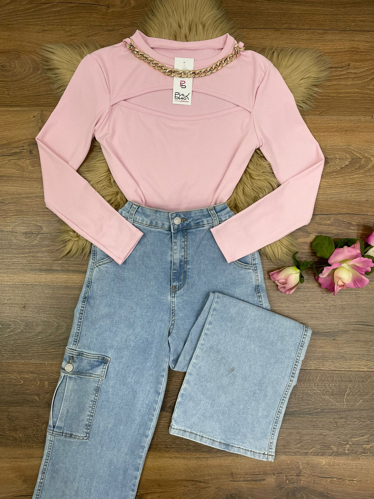 Maglia a costine con apertura e catena ad anelli. Fabbricato in Italia.