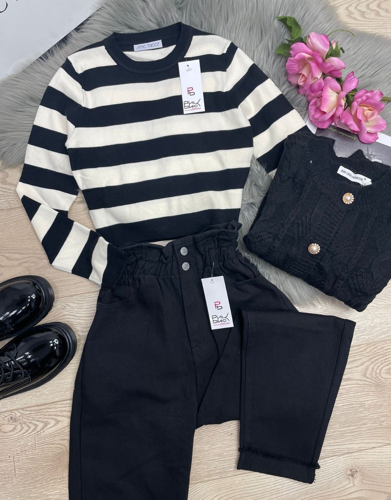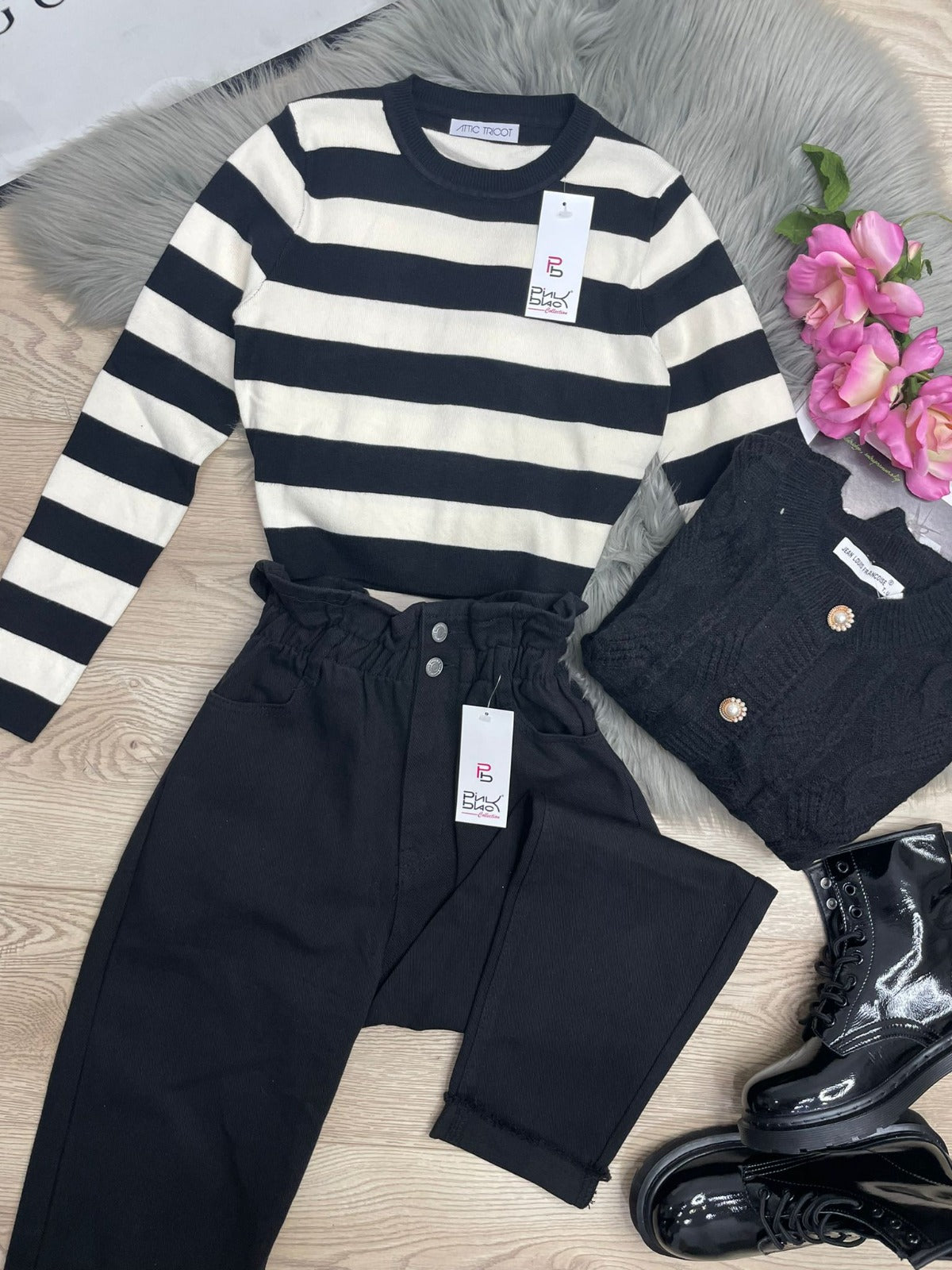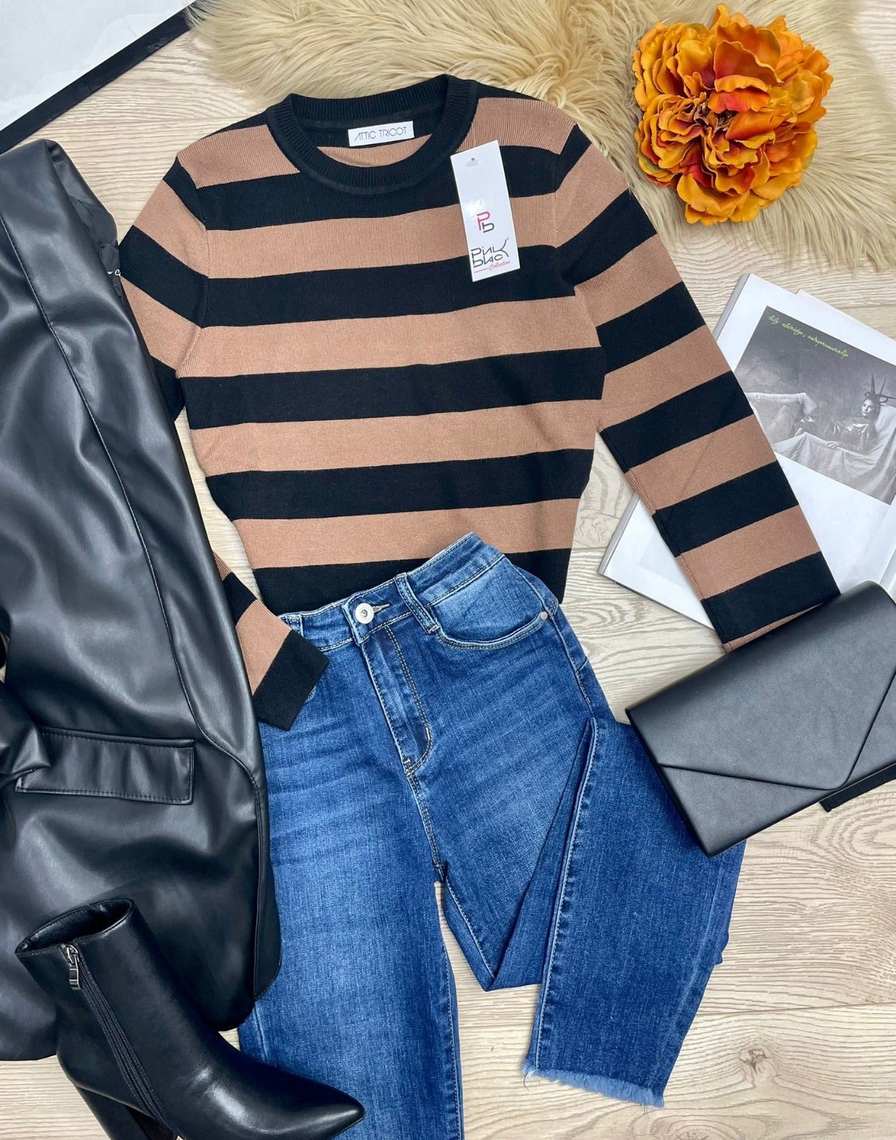 Maglioncino in viscosa con design a righe. Fabbricato all'estero.