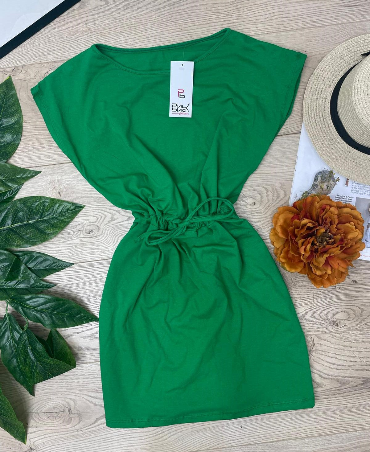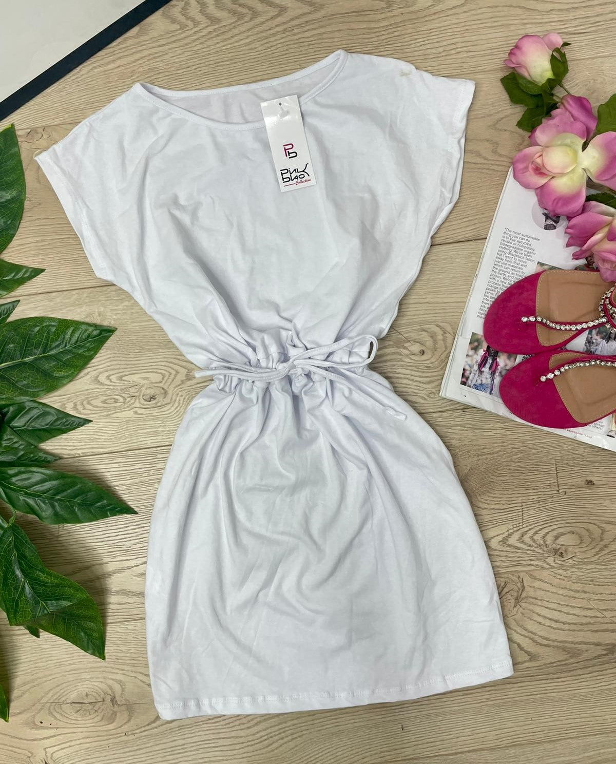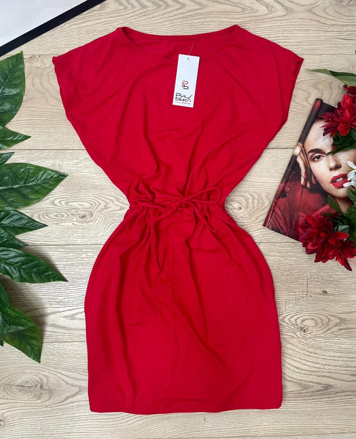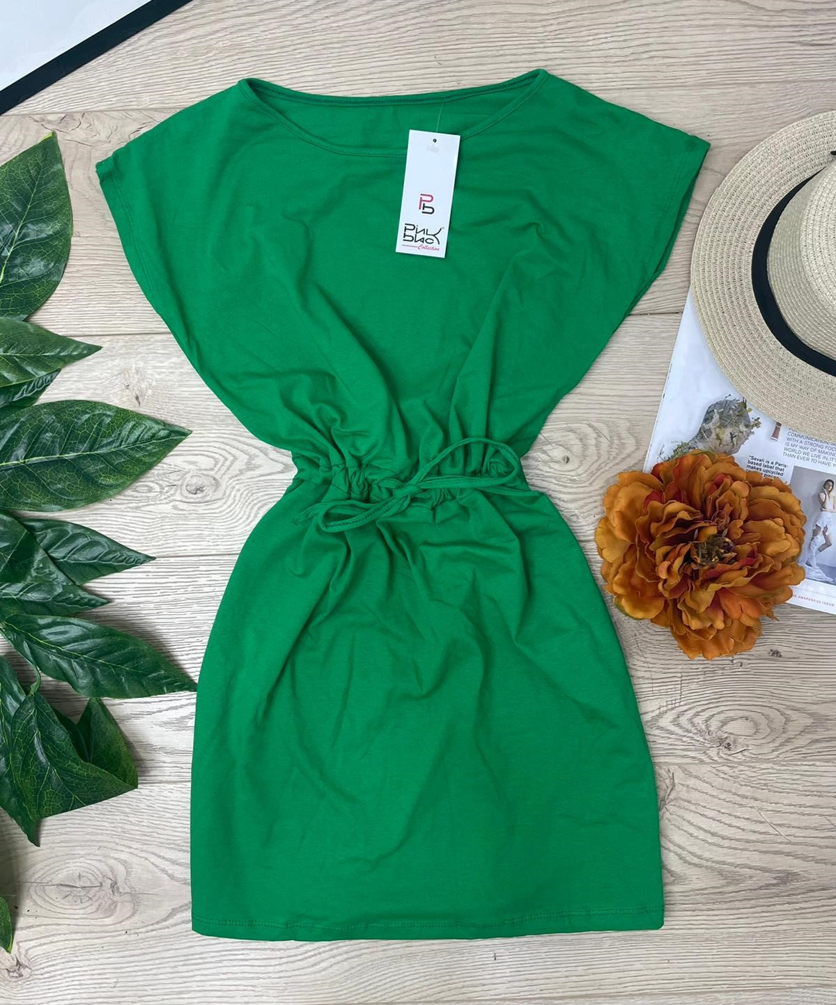 Abito basic in cotone con elastico e laccio regolabile in vita. Fabbricato in Italia.