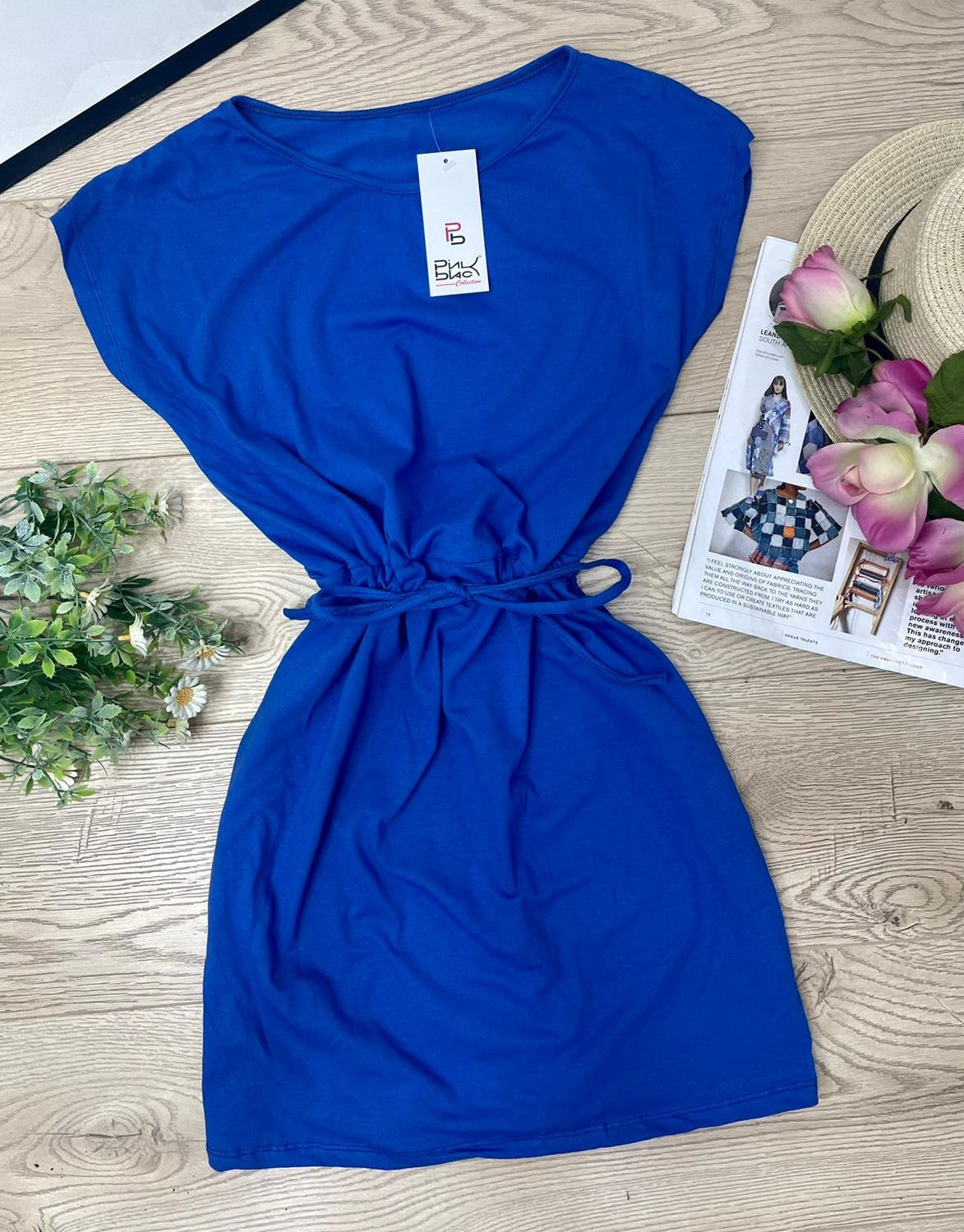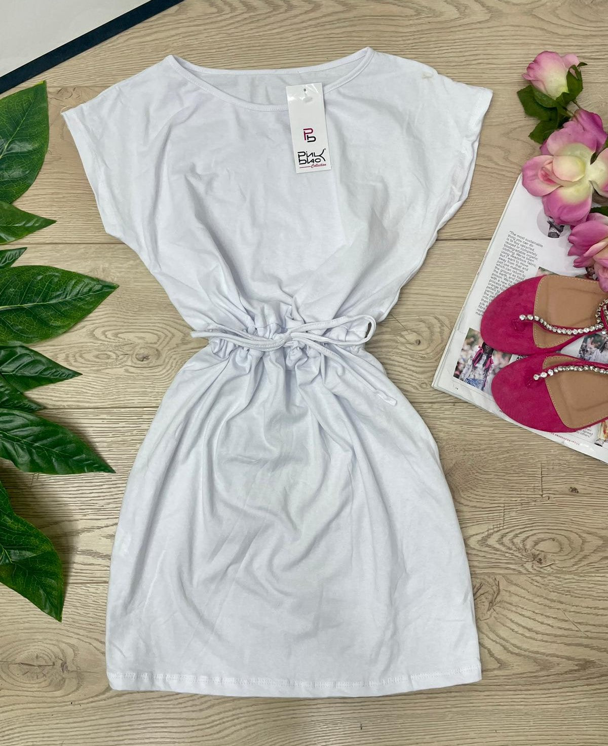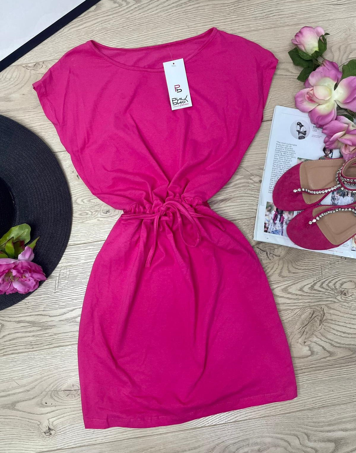 Abito basic in cotone con elastico e laccio regolabile in vita. Fabbricato in Italia.
