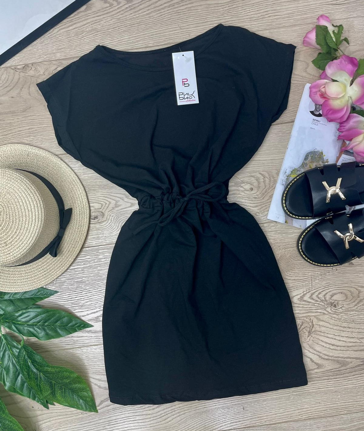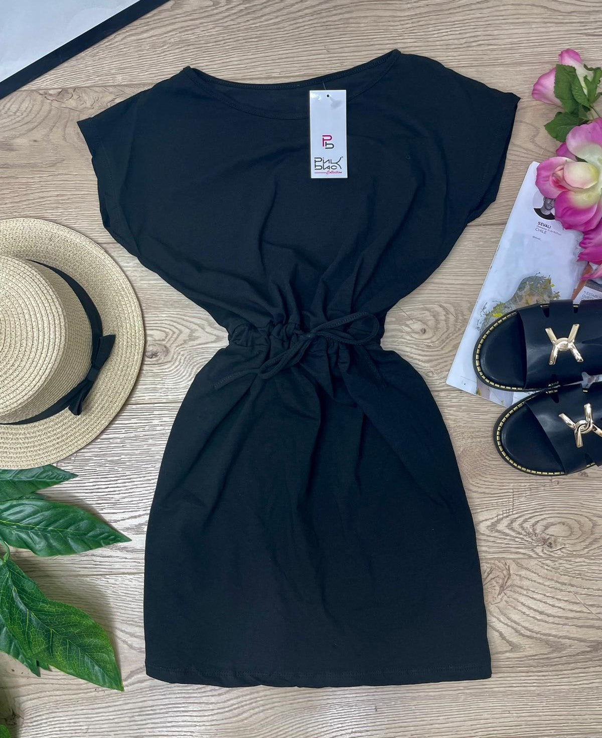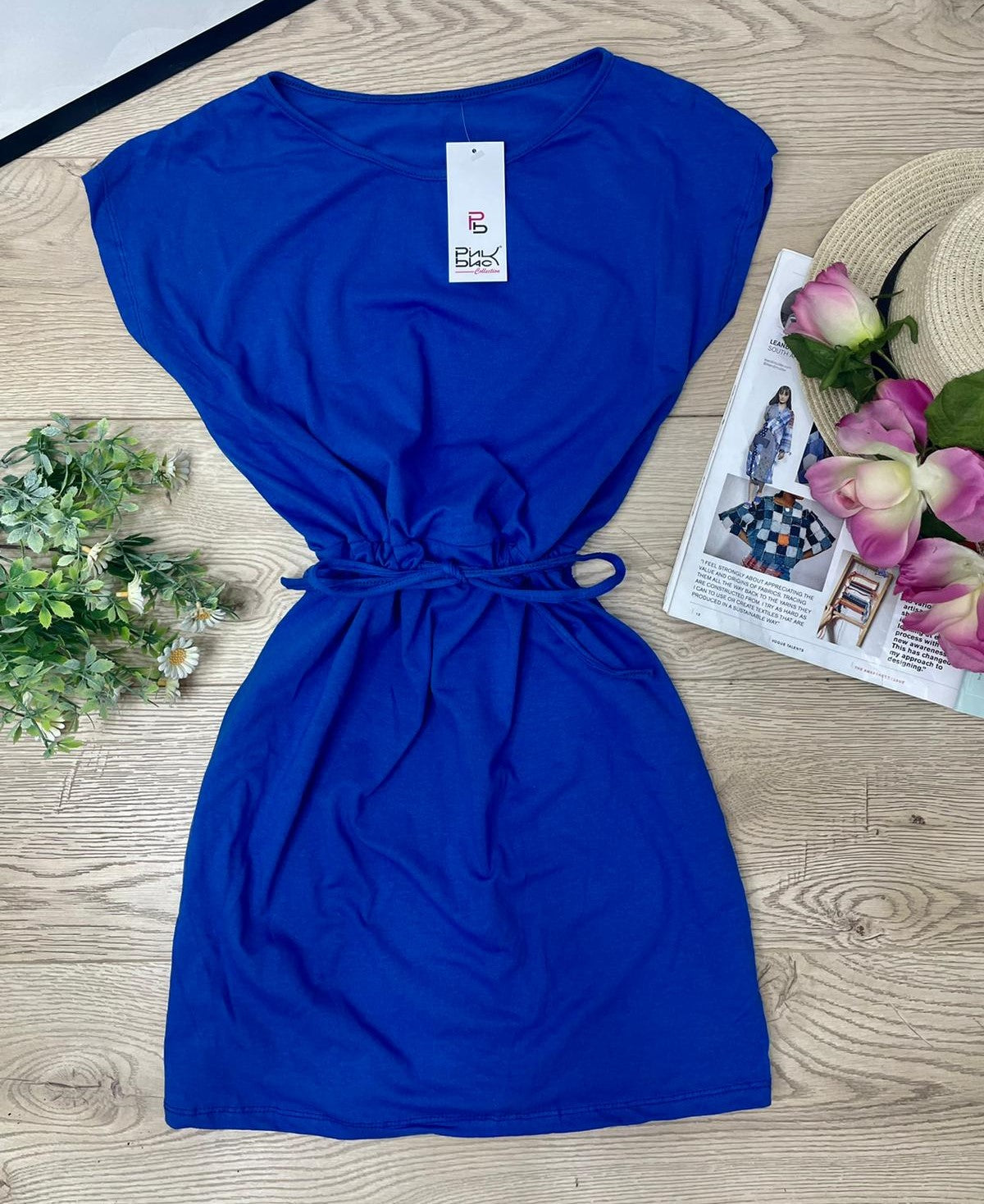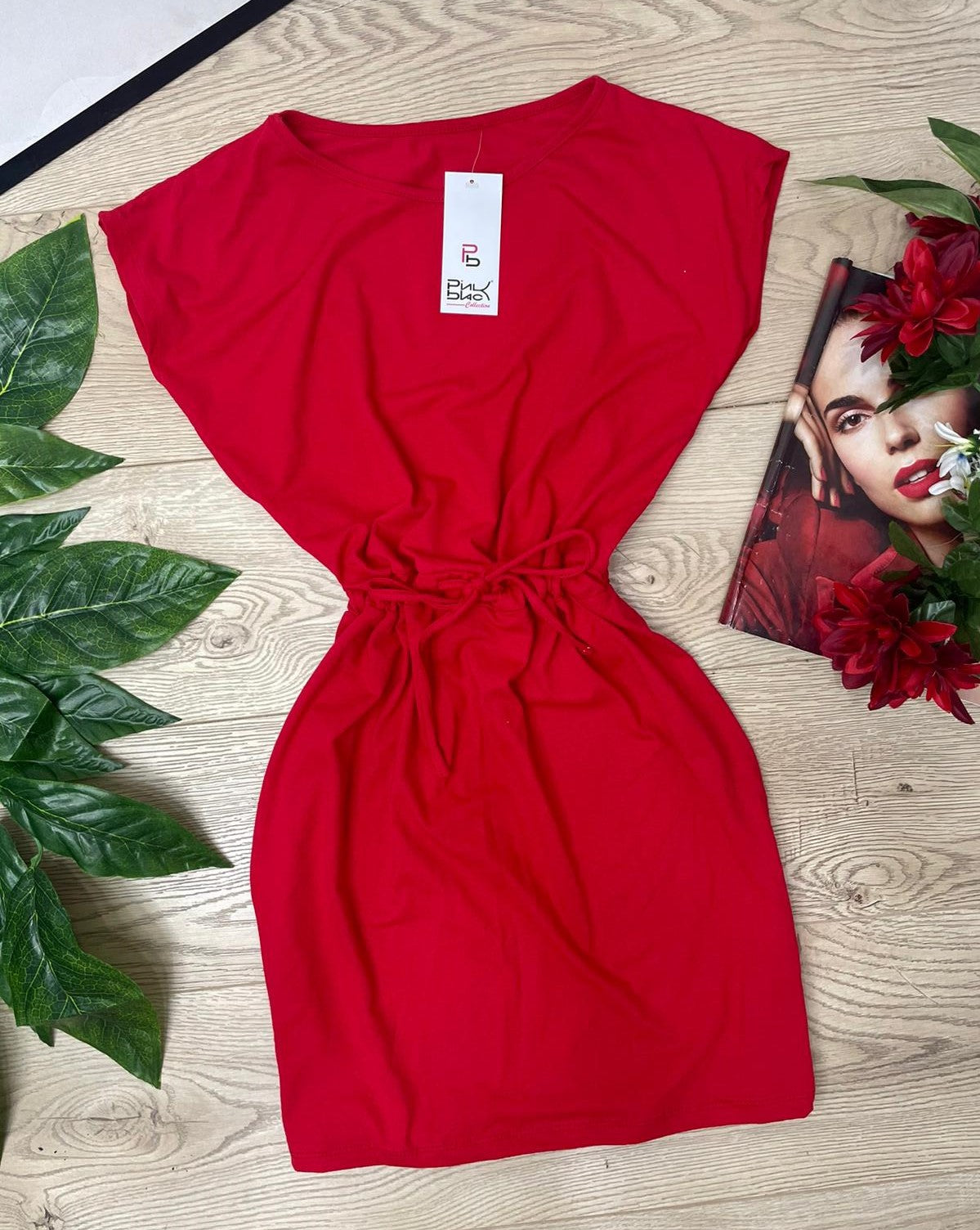 Abito basic in cotone con elastico e laccio regolabile in vita. Fabbricato in Italia.
