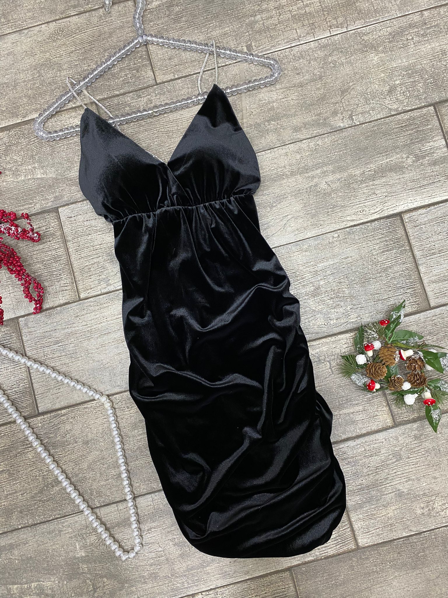 Abito in velluto sagomato con spalline gioiello , scollatura sulla schiena con incrocio.