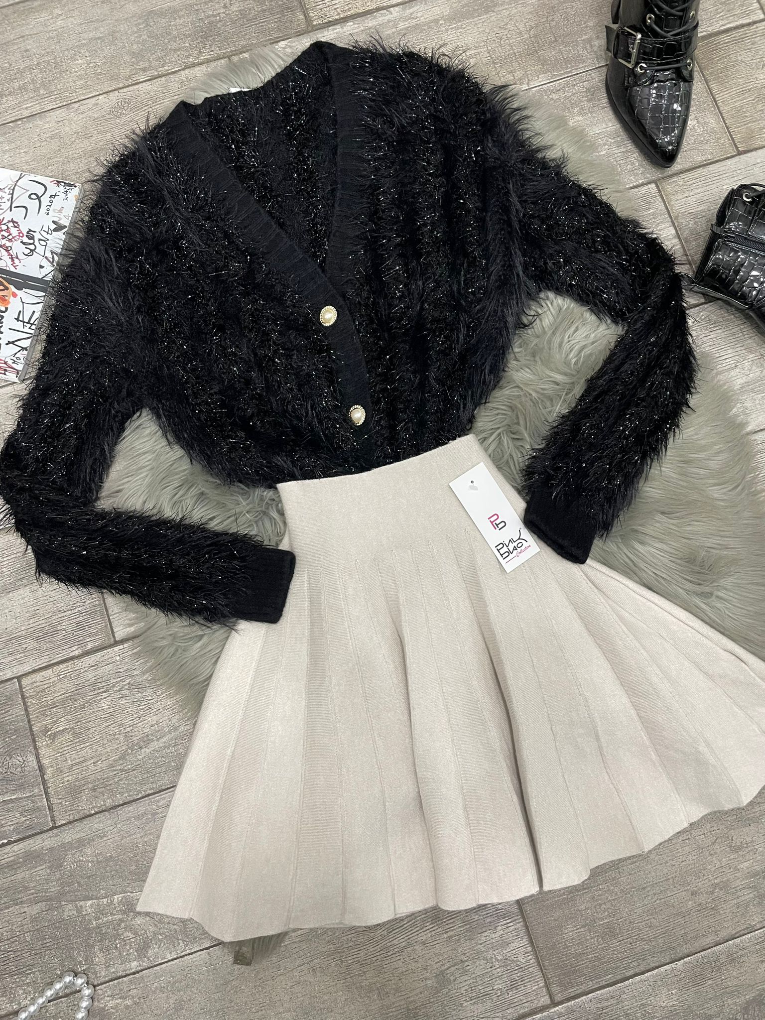 Cardigan in maglia effetto pelliccia con bottoni con perle Fabbricato in Italia.