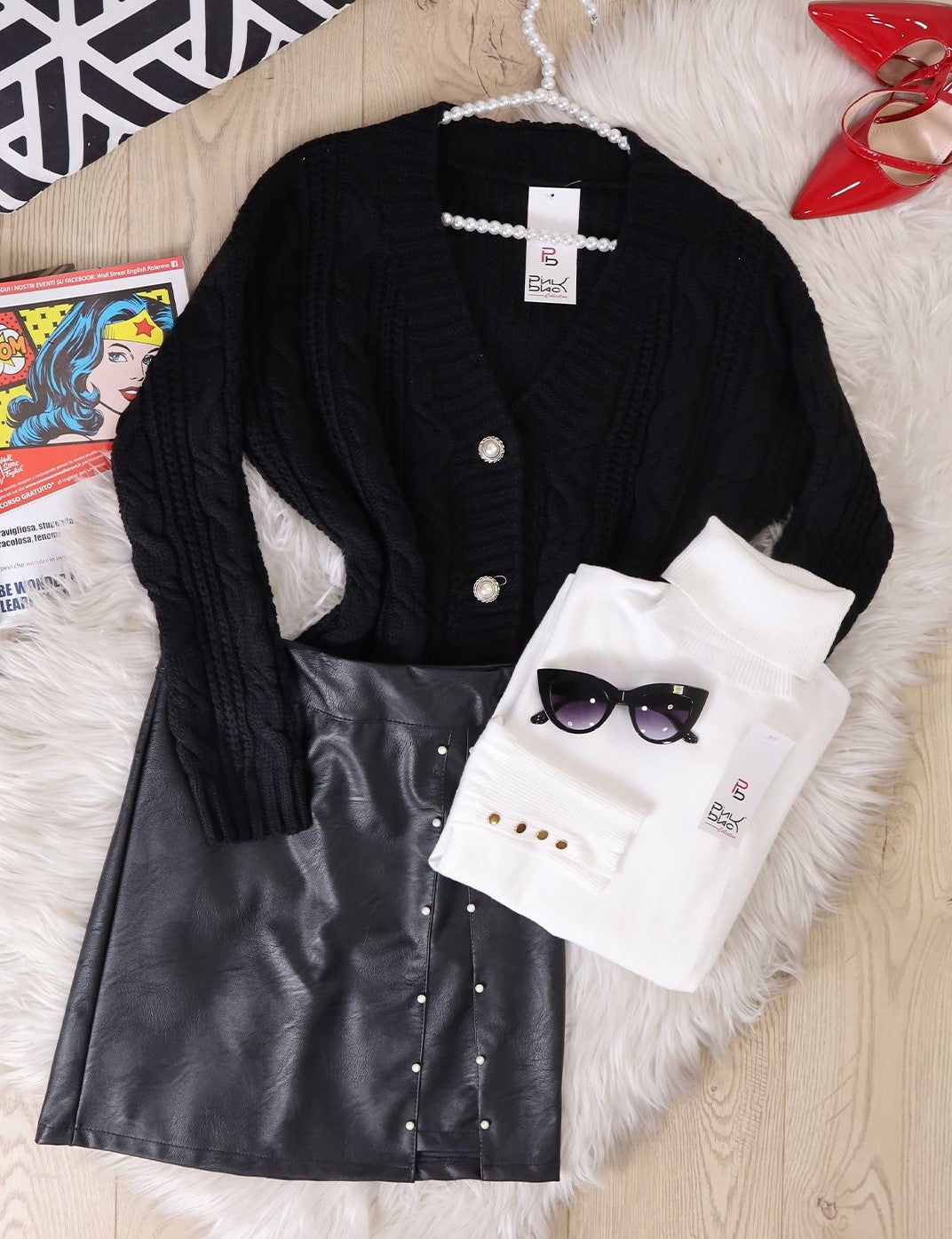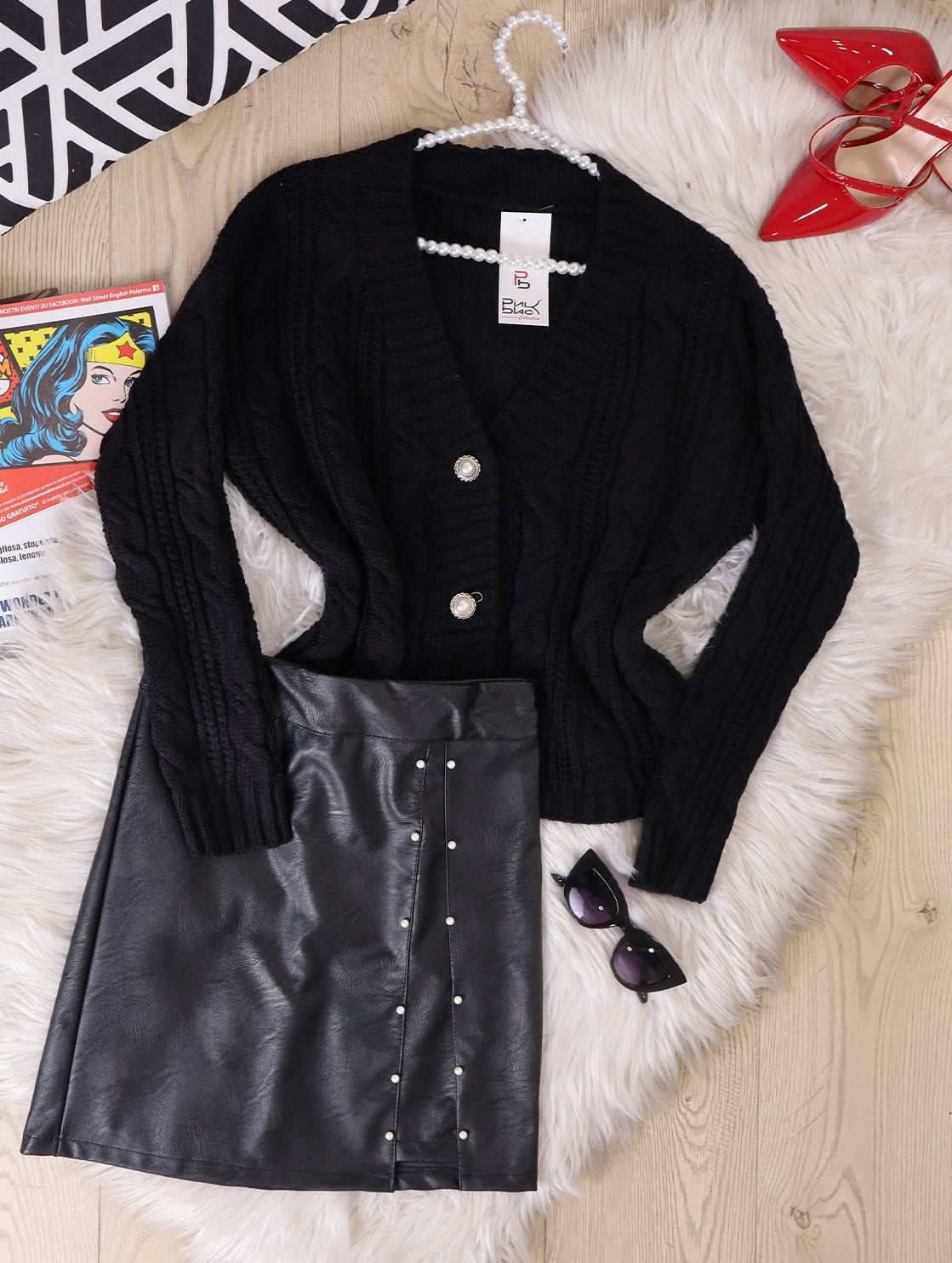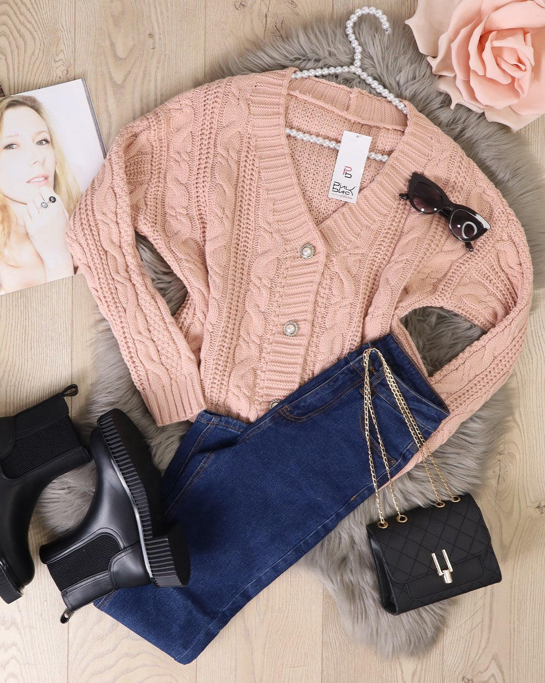 Cardigan in maglia con motivo a intreccio e bottoni con perle. Fabbricato in Italia.
