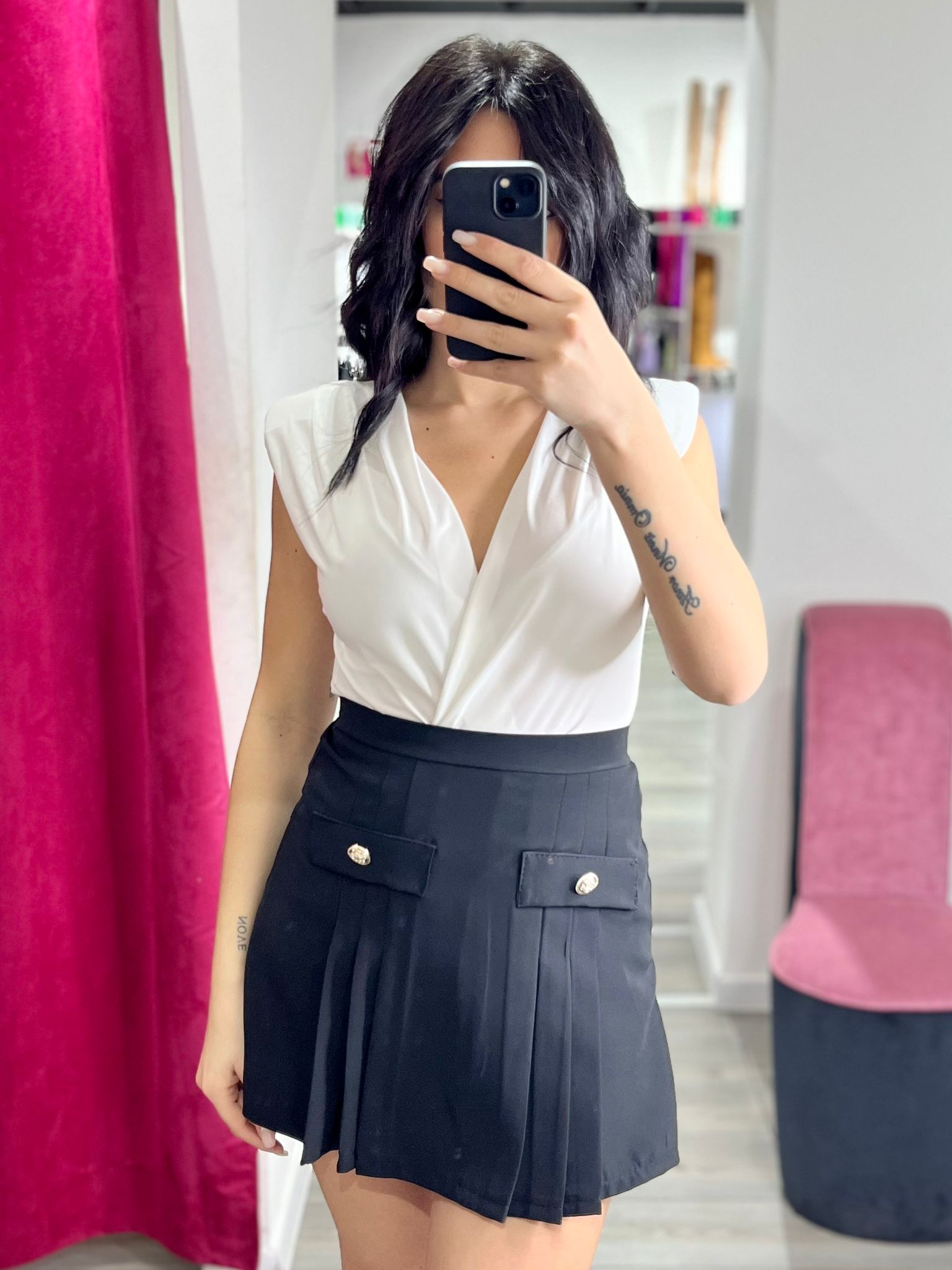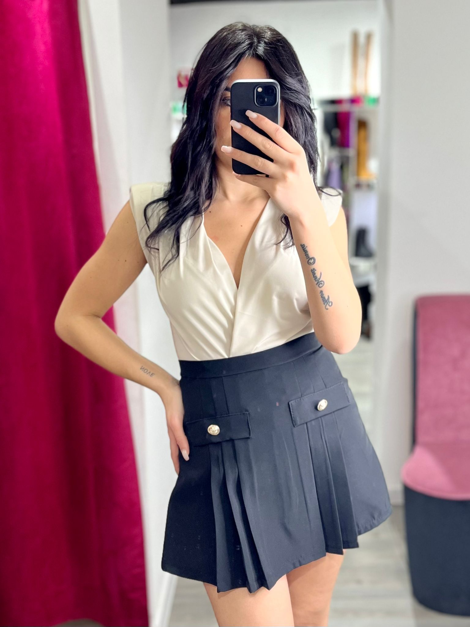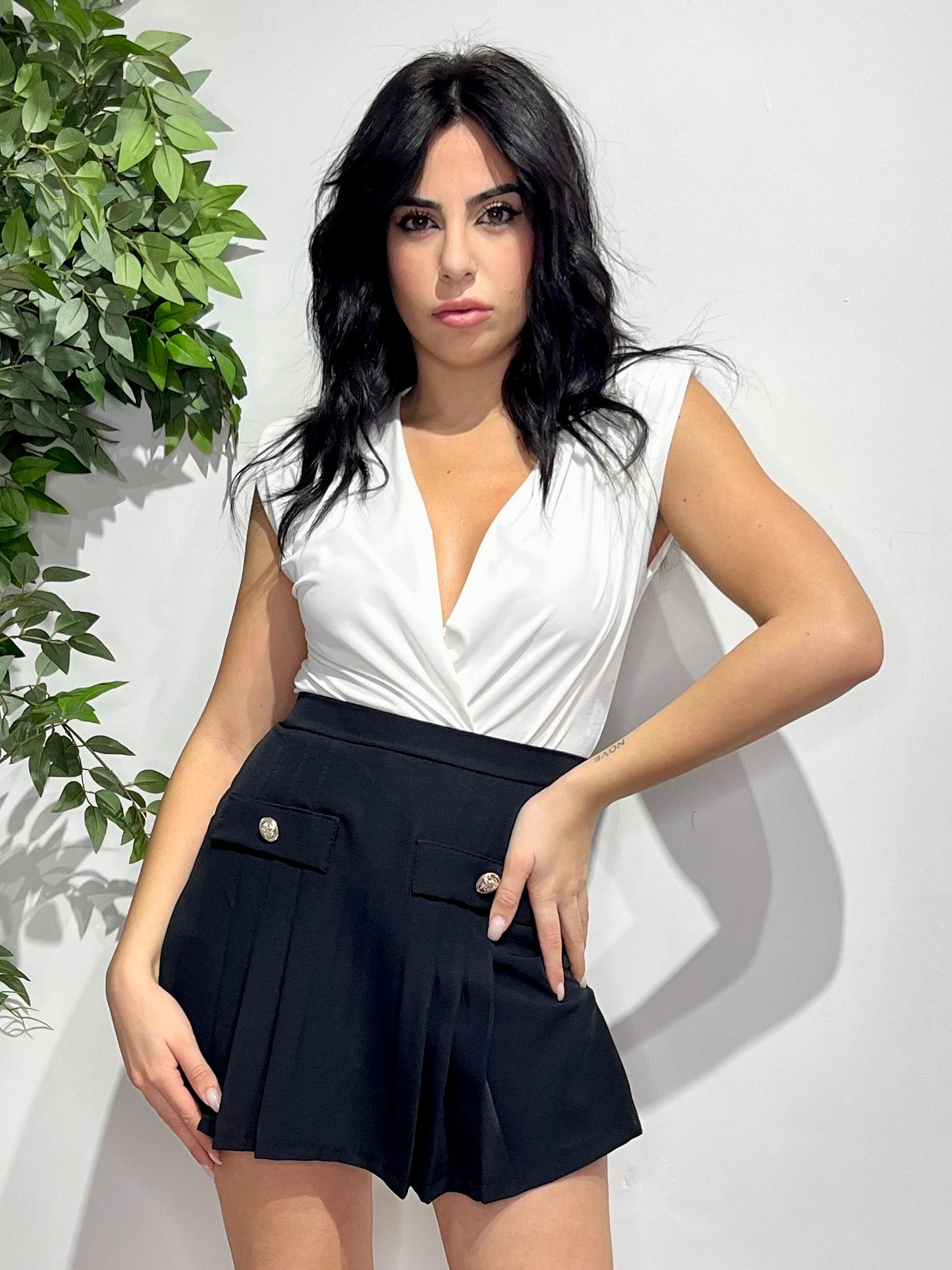 Pantagonna in tessuto strutturato con pantaloncino, effetto plissè, tasche estetiche e cerniera. Fabbricato in