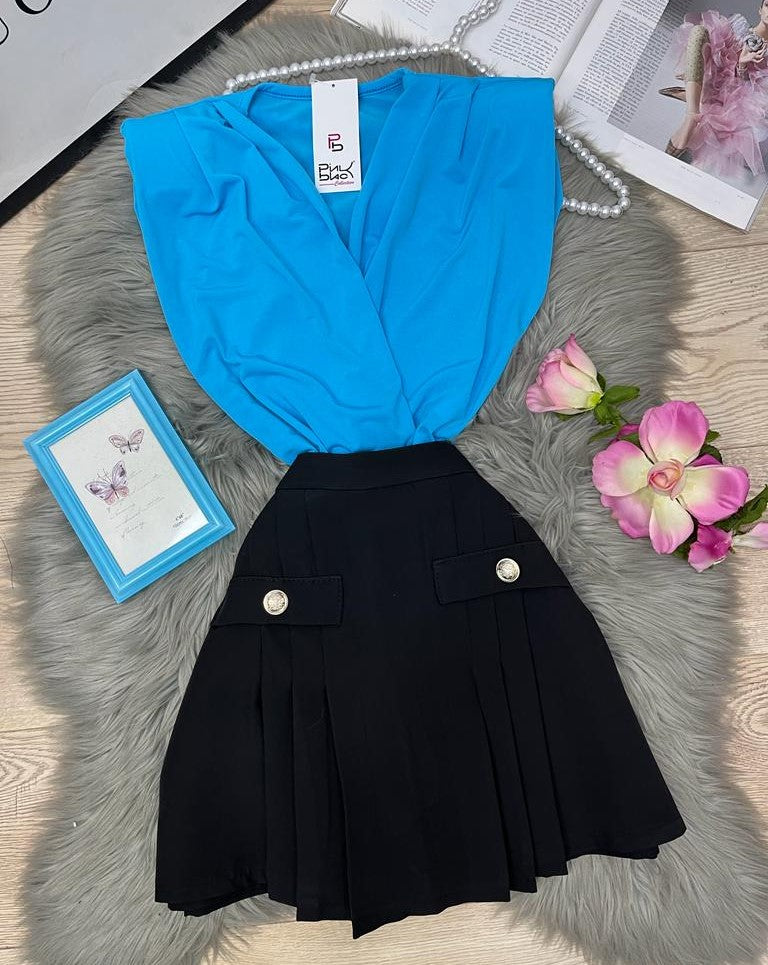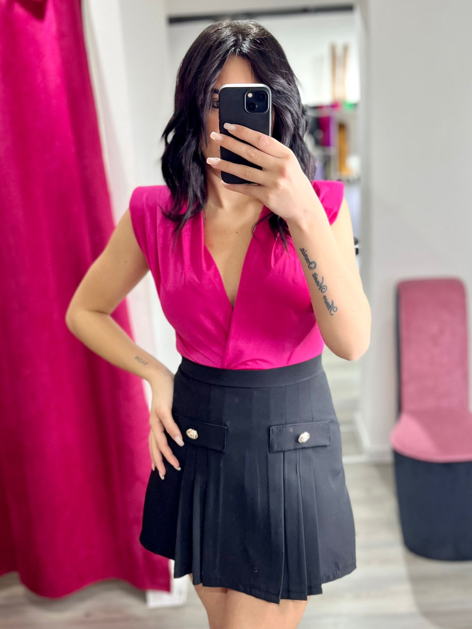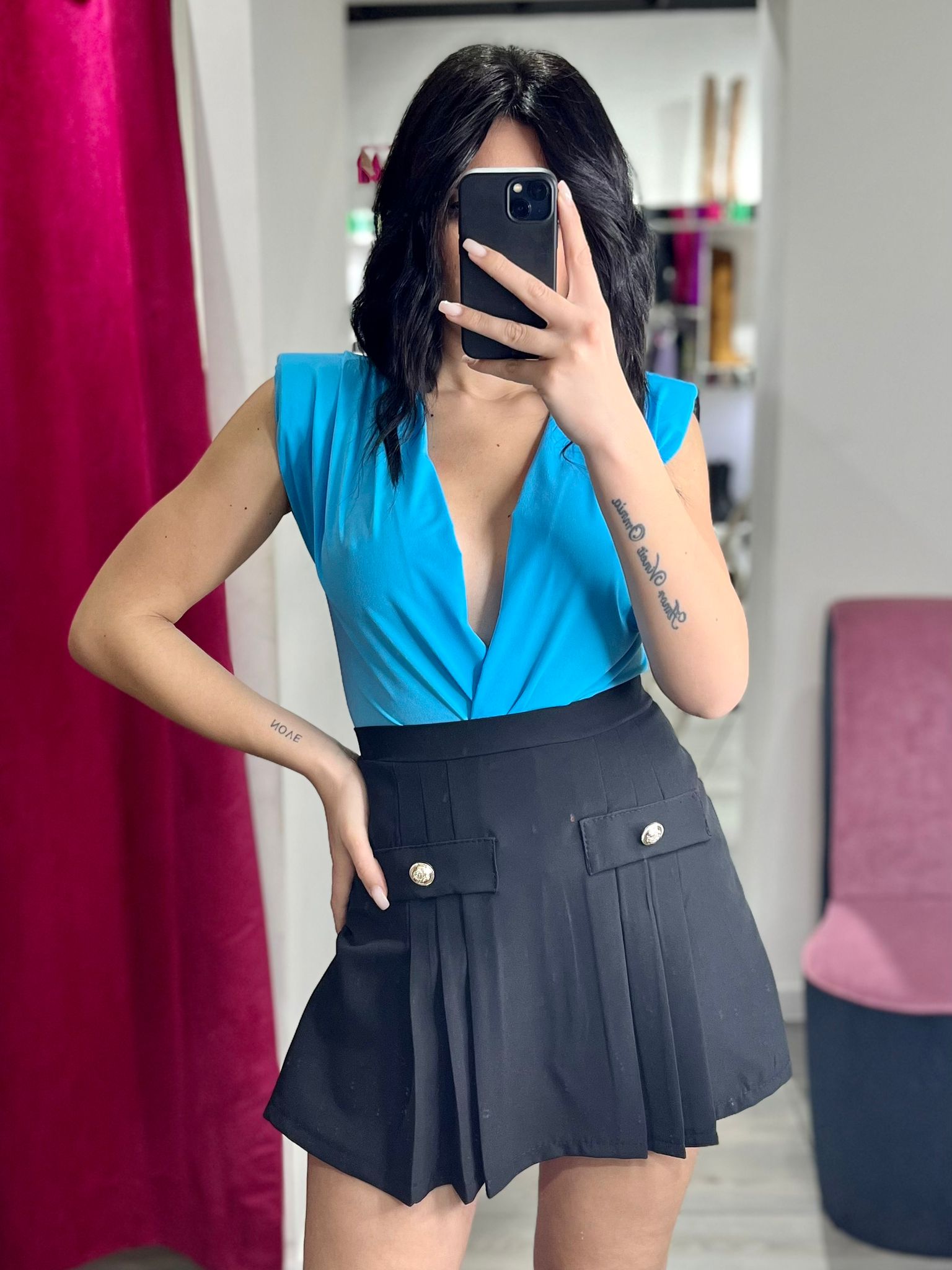 Pantagonna in tessuto strutturato con pantaloncino, effetto plissè, tasche estetiche e cerniera. Fabbricato in