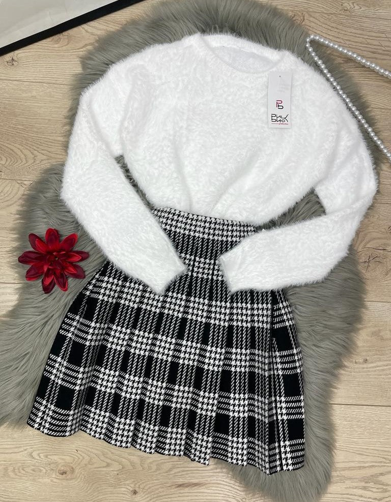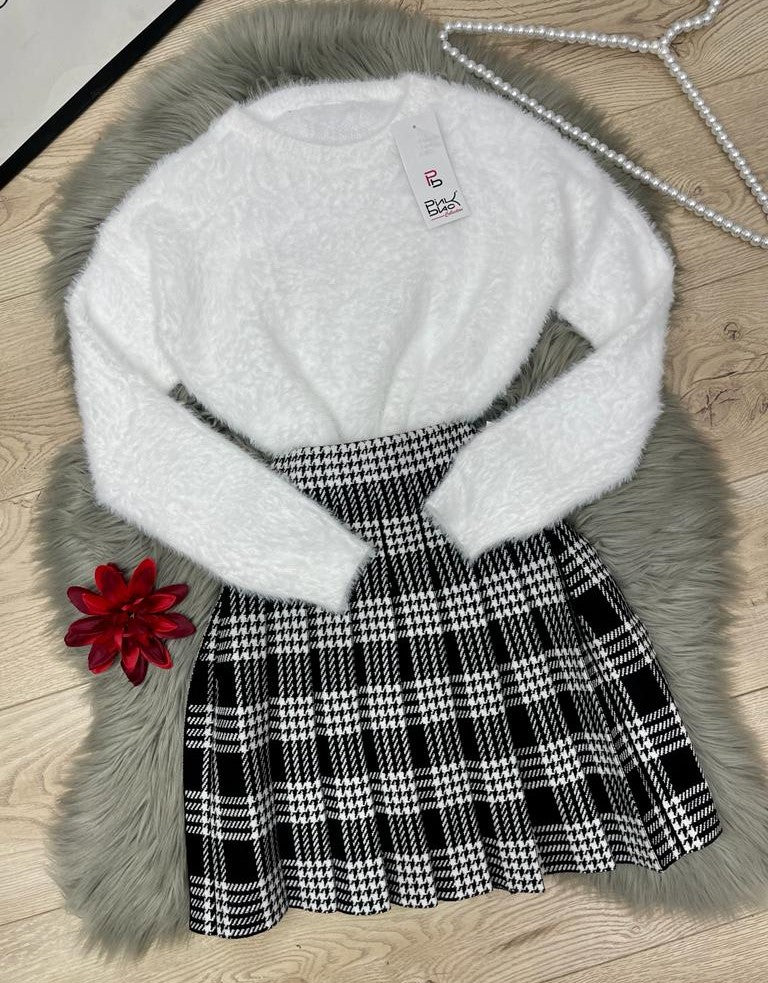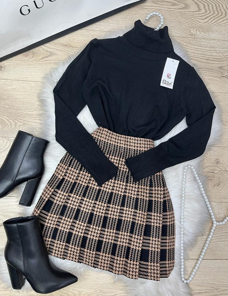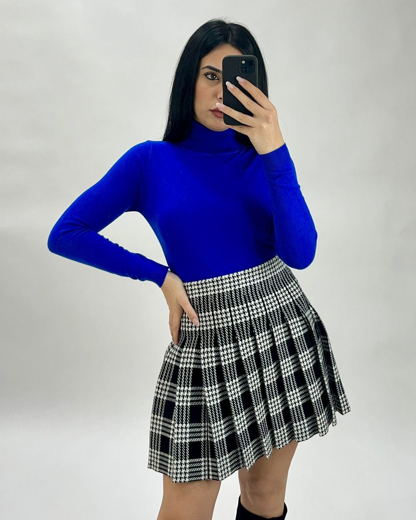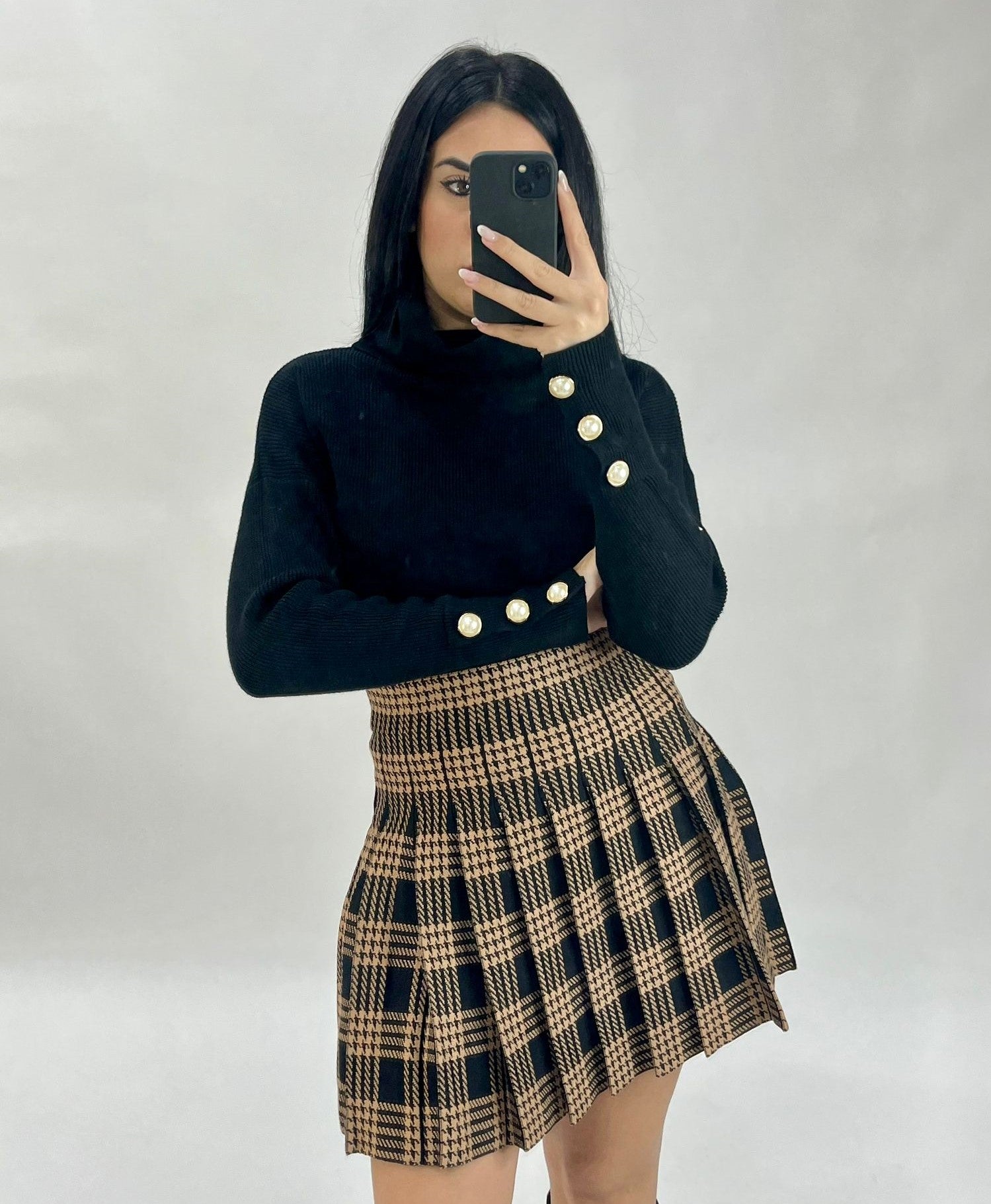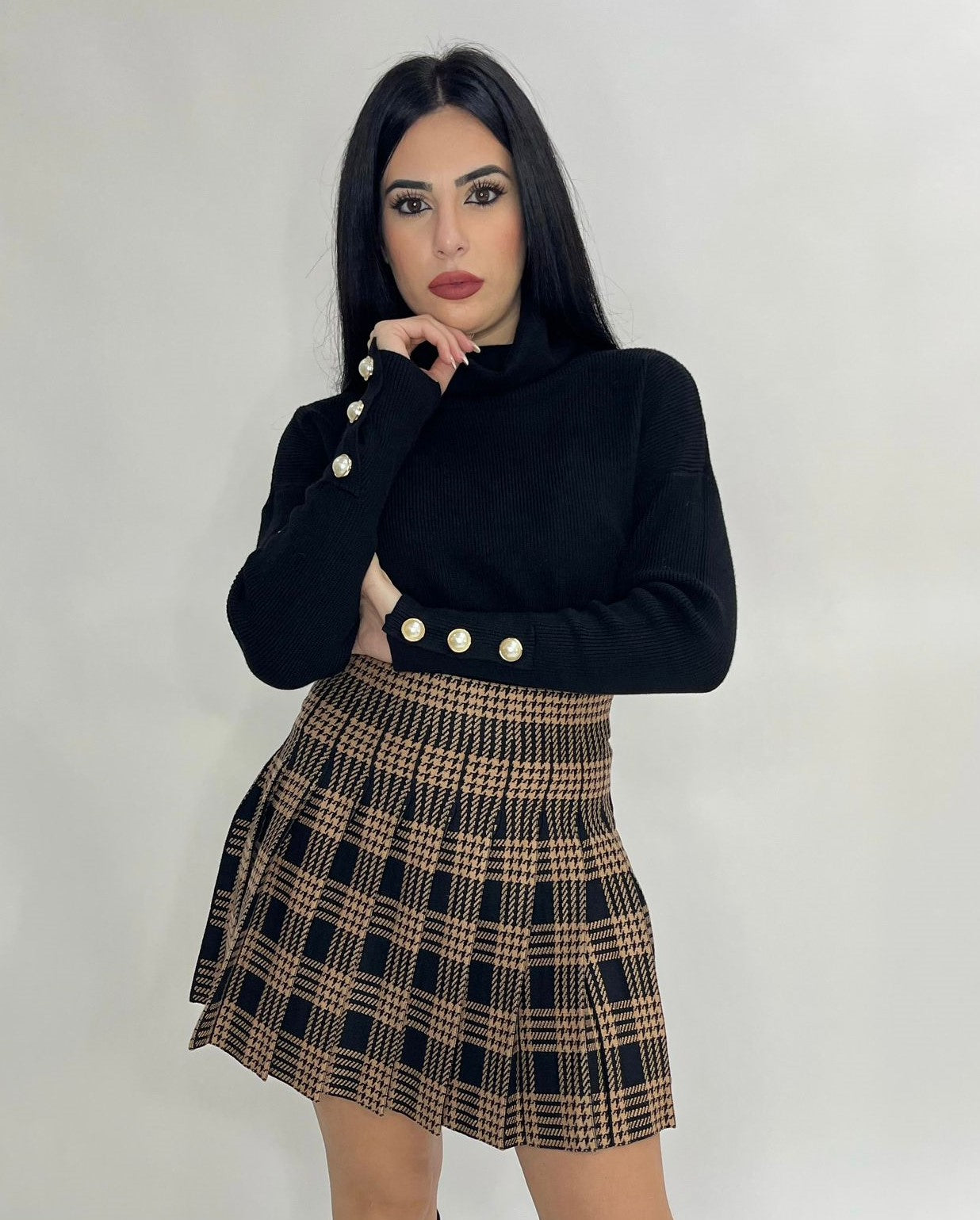 Gonna plissè in viscosa con fantasia pied de poule. Fabbricato all'estero.