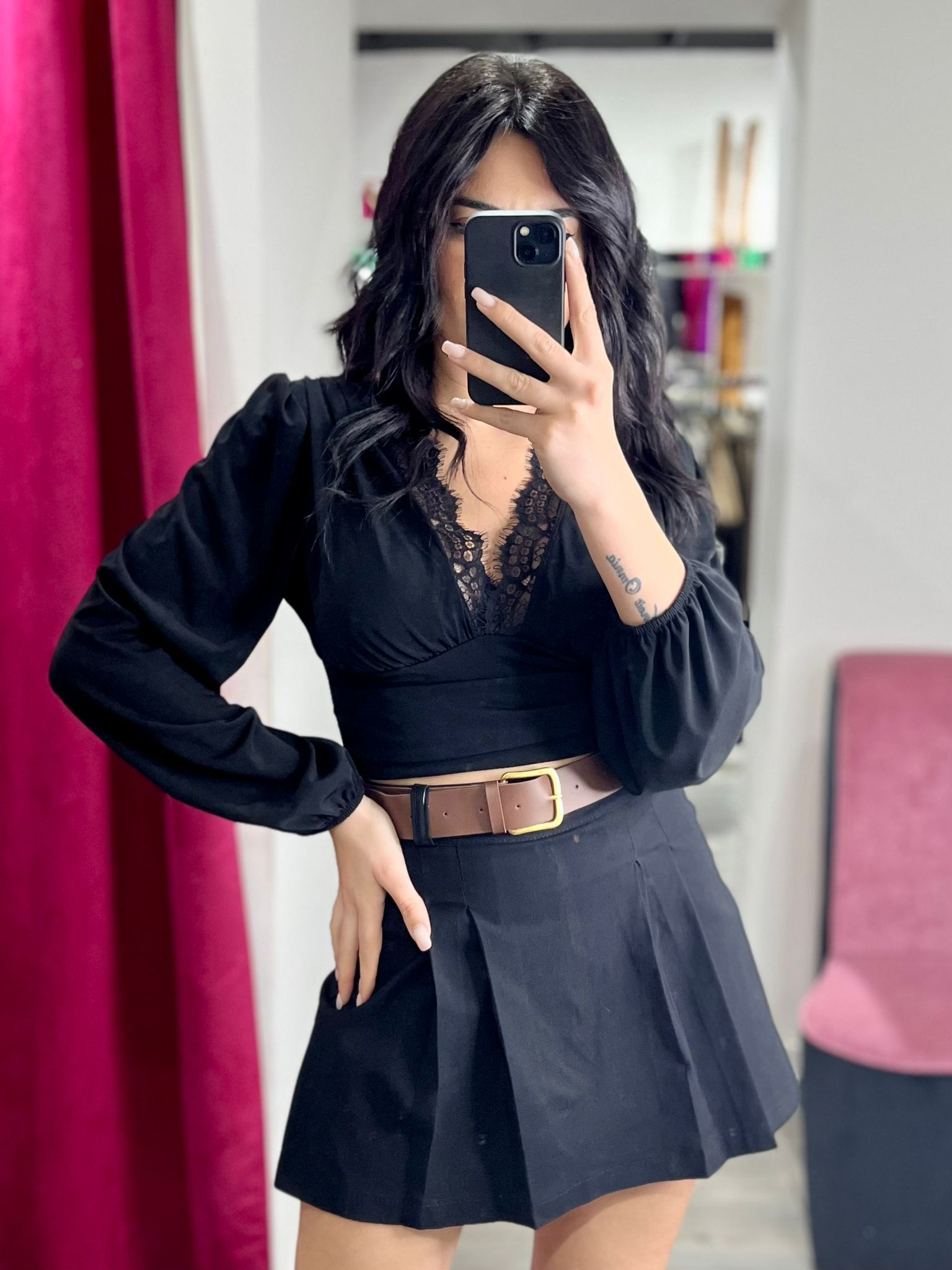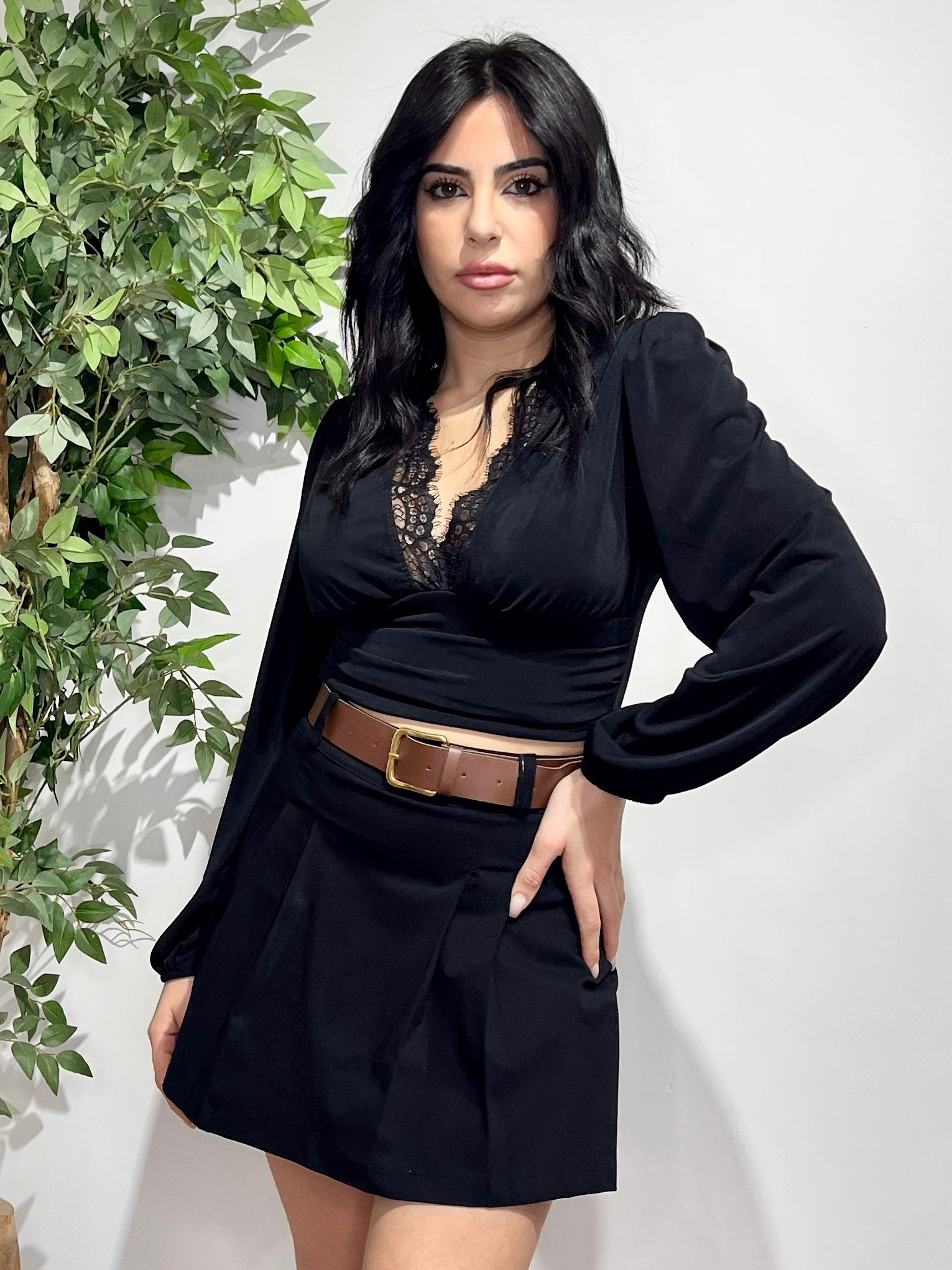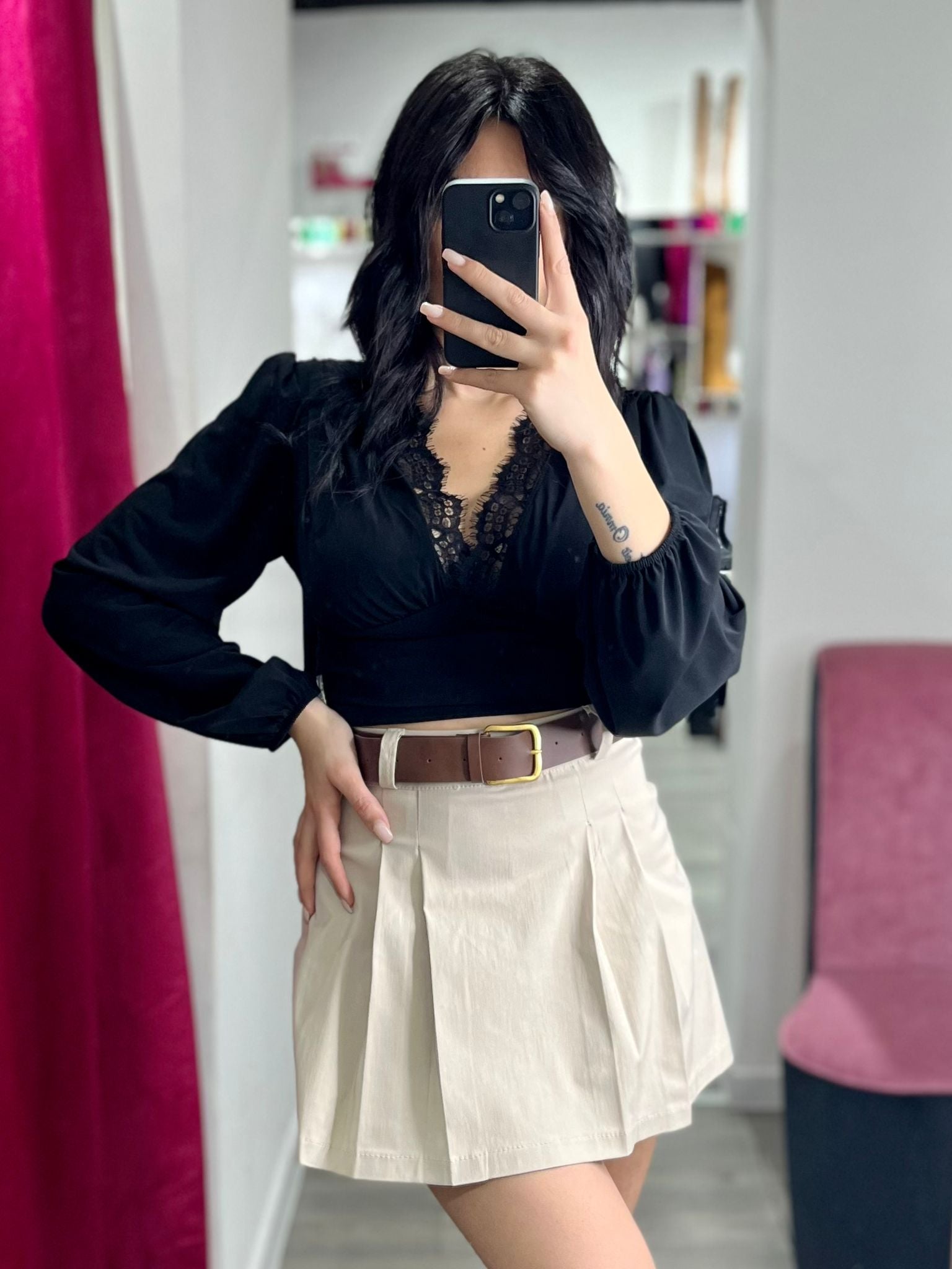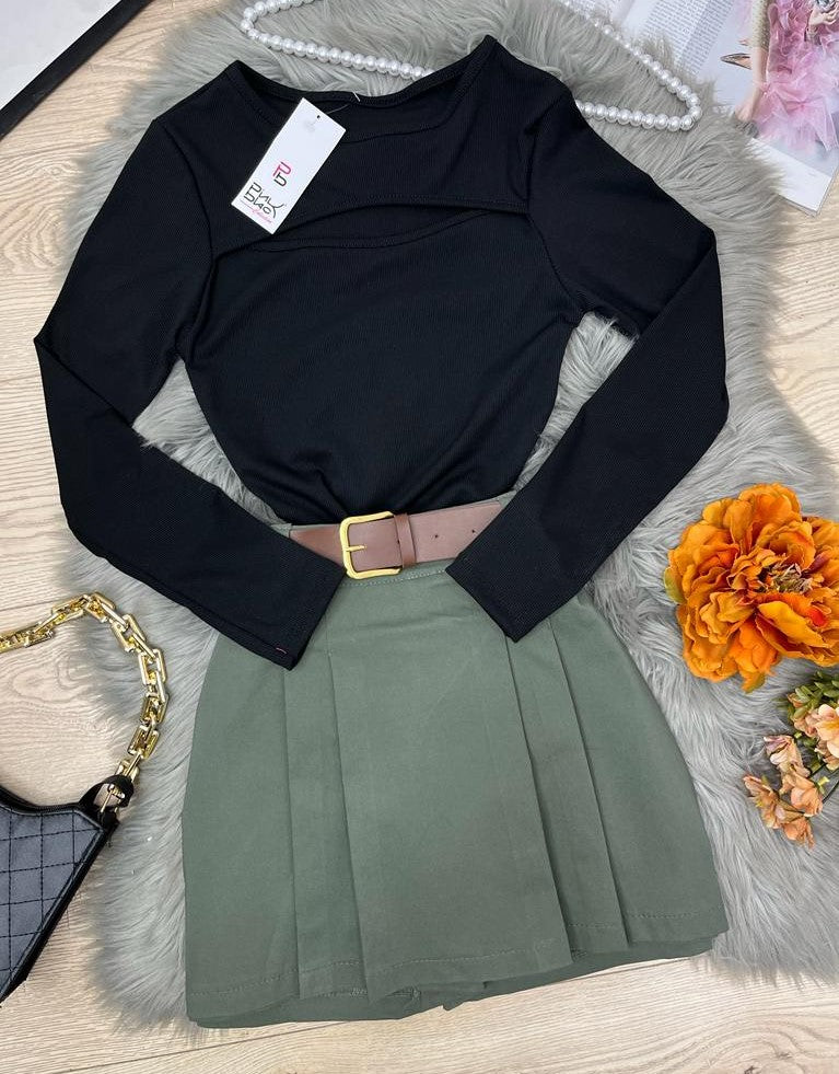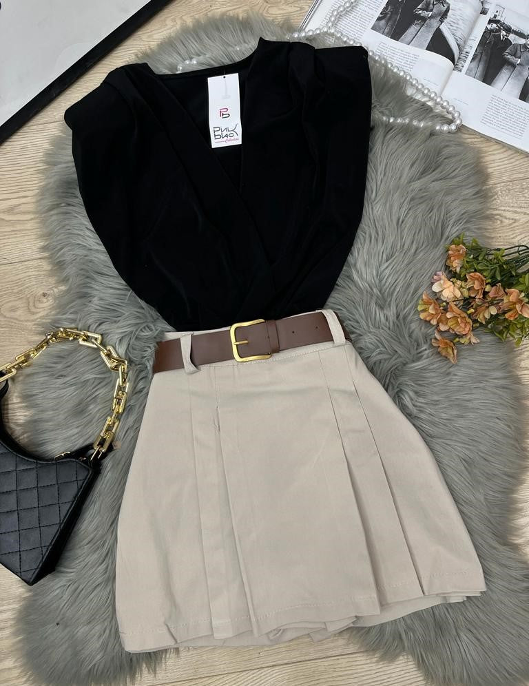 Pantagonna in tessuto strutturato con pantaloncino, pinces, cerniera e cintura inclusa.