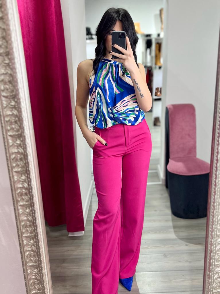 Maglia effetto lycra con fantasia multicolor. Fabbricato in Italia.