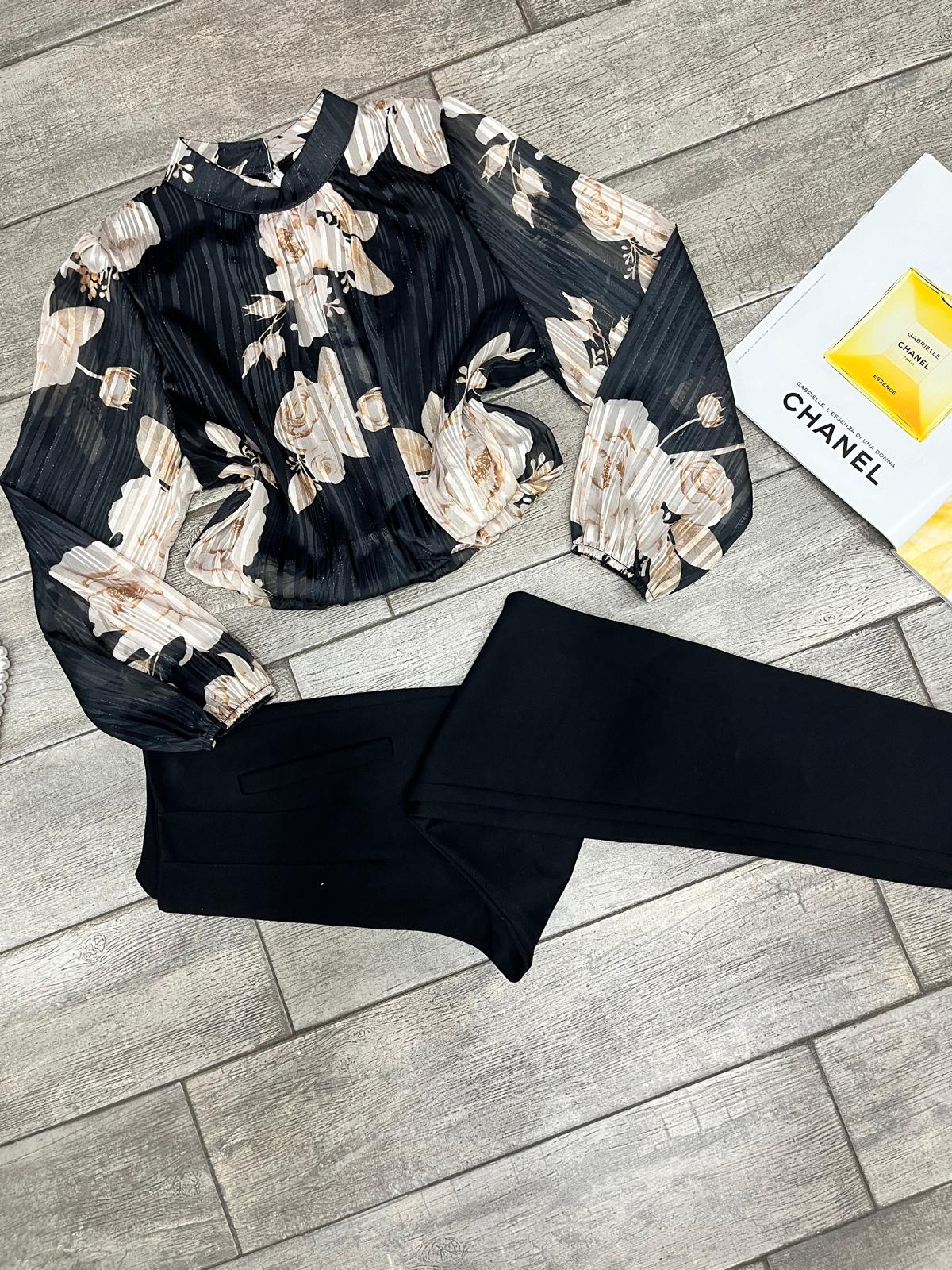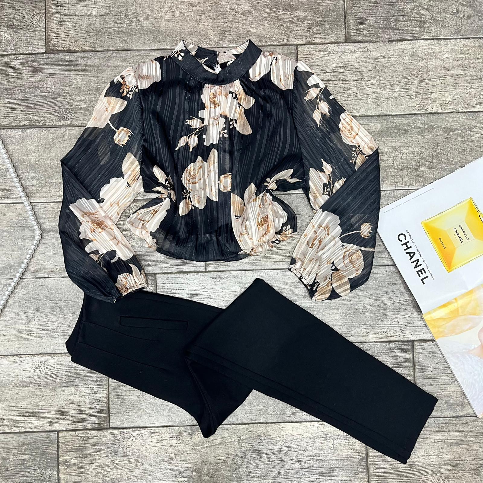 Maglia effetto velato a manica lunga con fantasia floreale chiusura con bottoni sul retro.