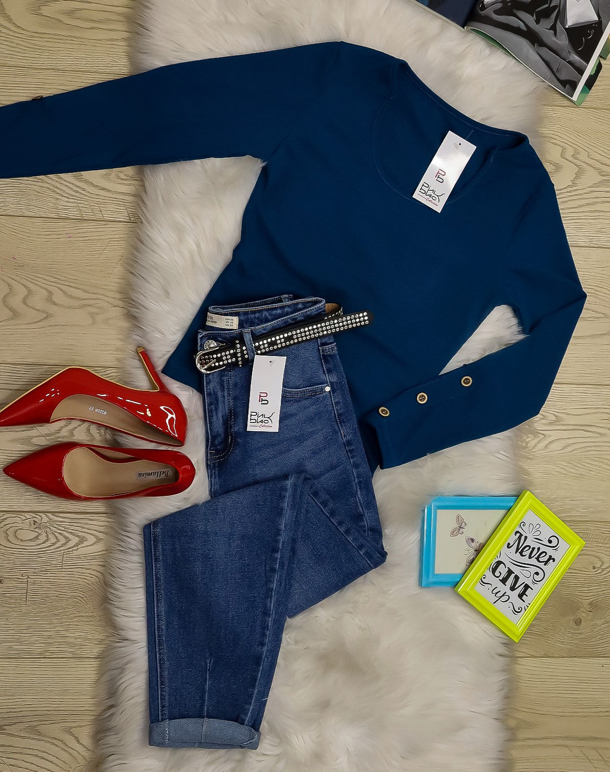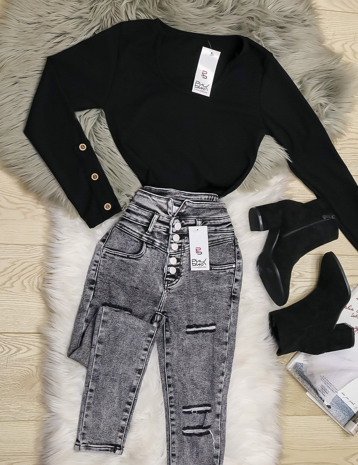 Maglia a costine con bottoni nelle maniche. Fabbricato in Italia.