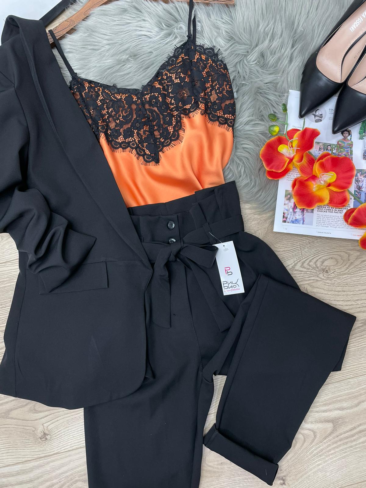 Crepe Scuba fabric trousers with caramel high waist and belt included. Made in Italy.