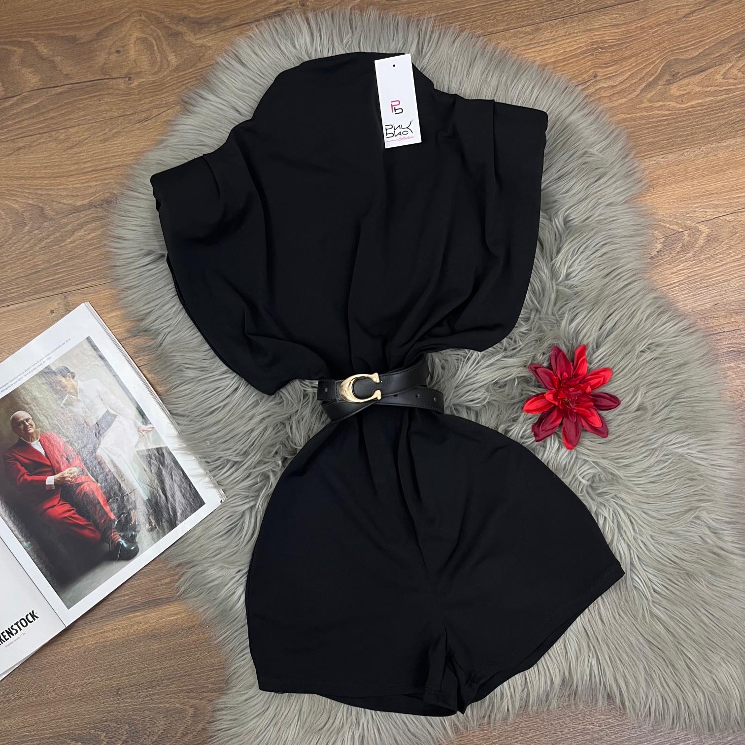 Tutina in tessuto strutturato con spalline imbottite. Fabbricato in Italia.