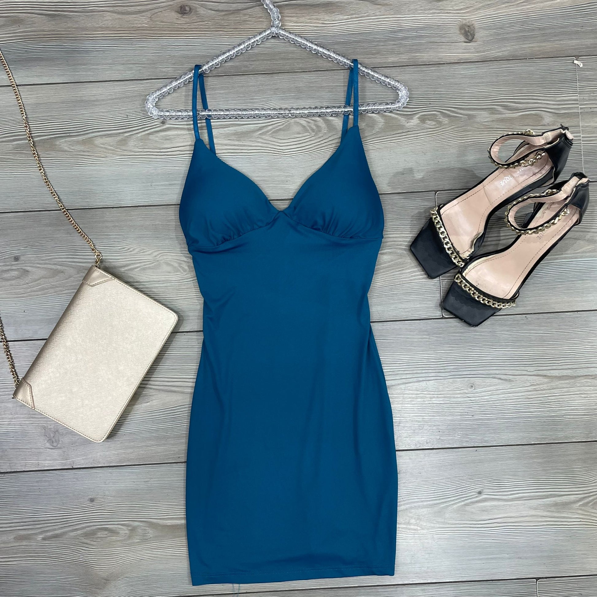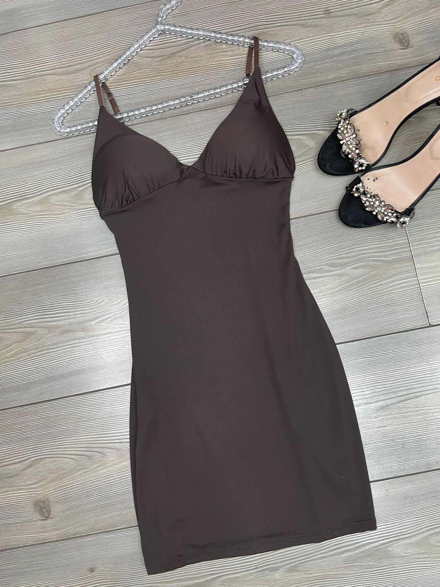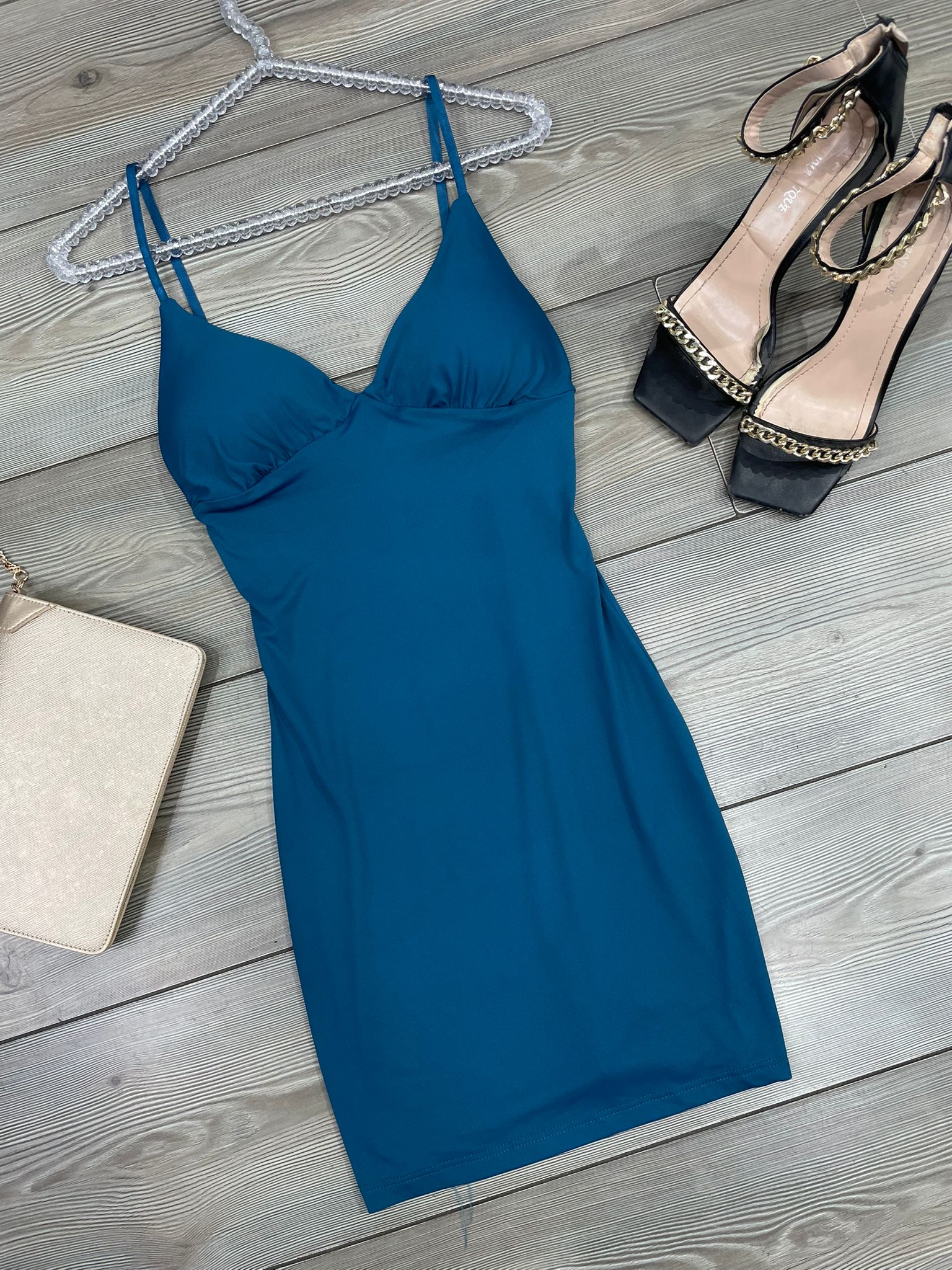 Abito modello tubino effetto lycra con spalline regolabili e coppette preformate