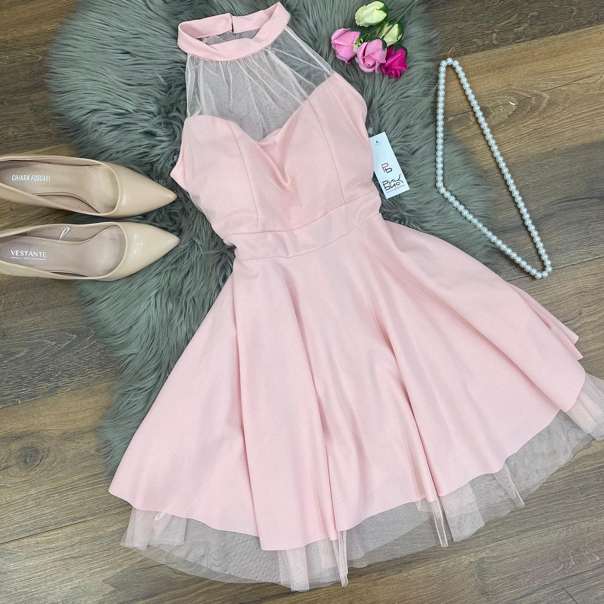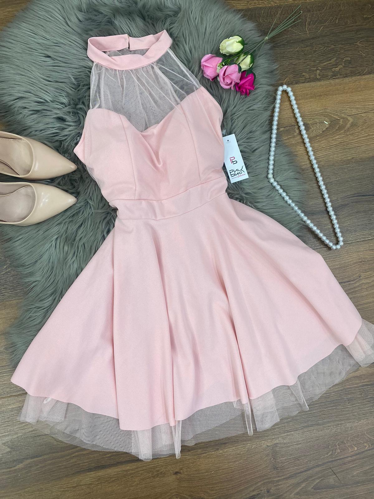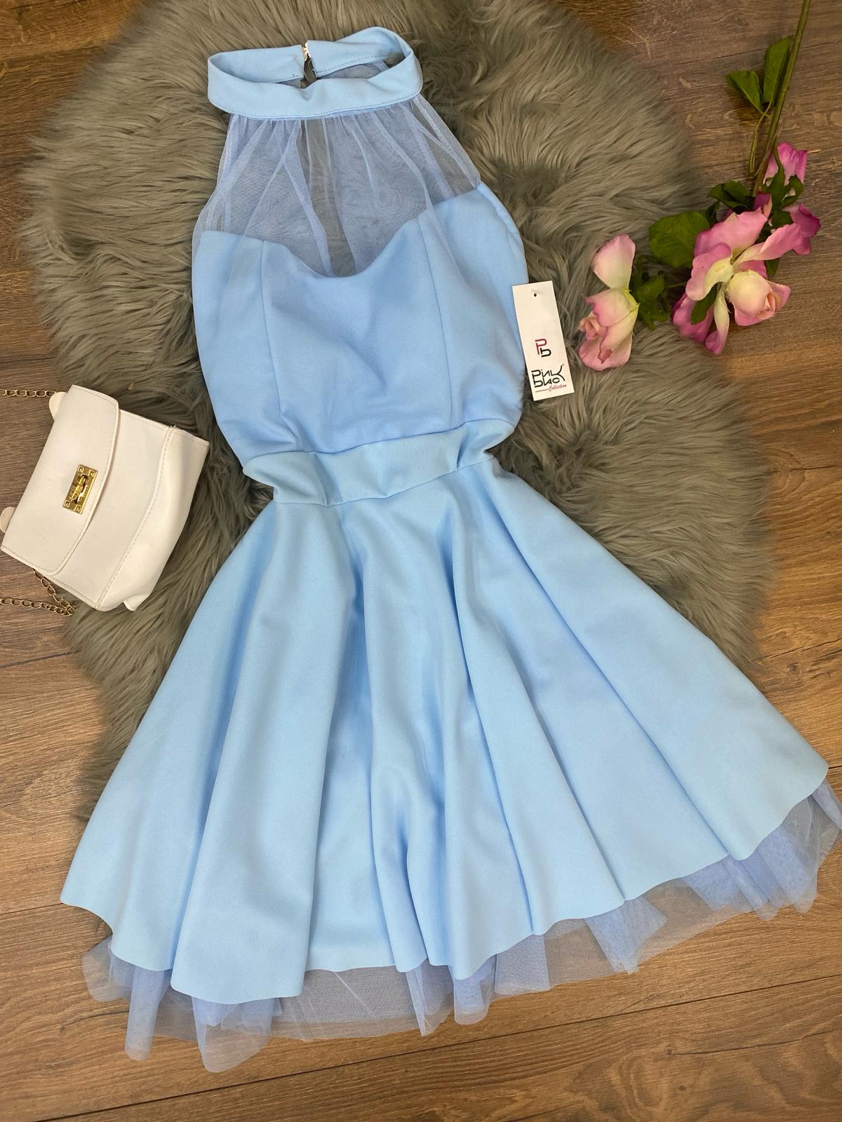 Abito con velo di tulle, scollo all'americana, coppe preformate e cerniera. Fabbricato in Italia.