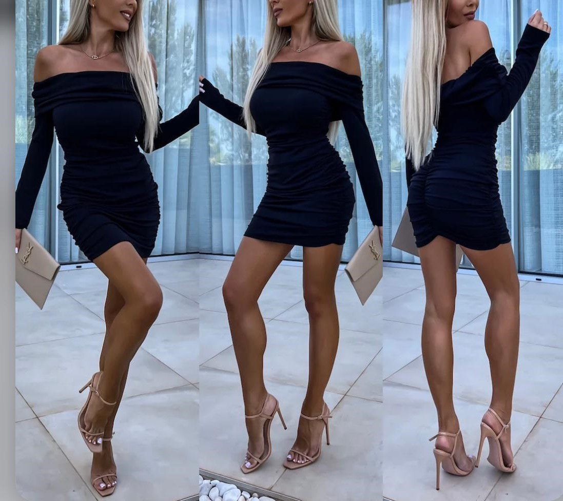 Abito in lycra modello leggermente elasticizzato a fascia con gonna drappeggiata