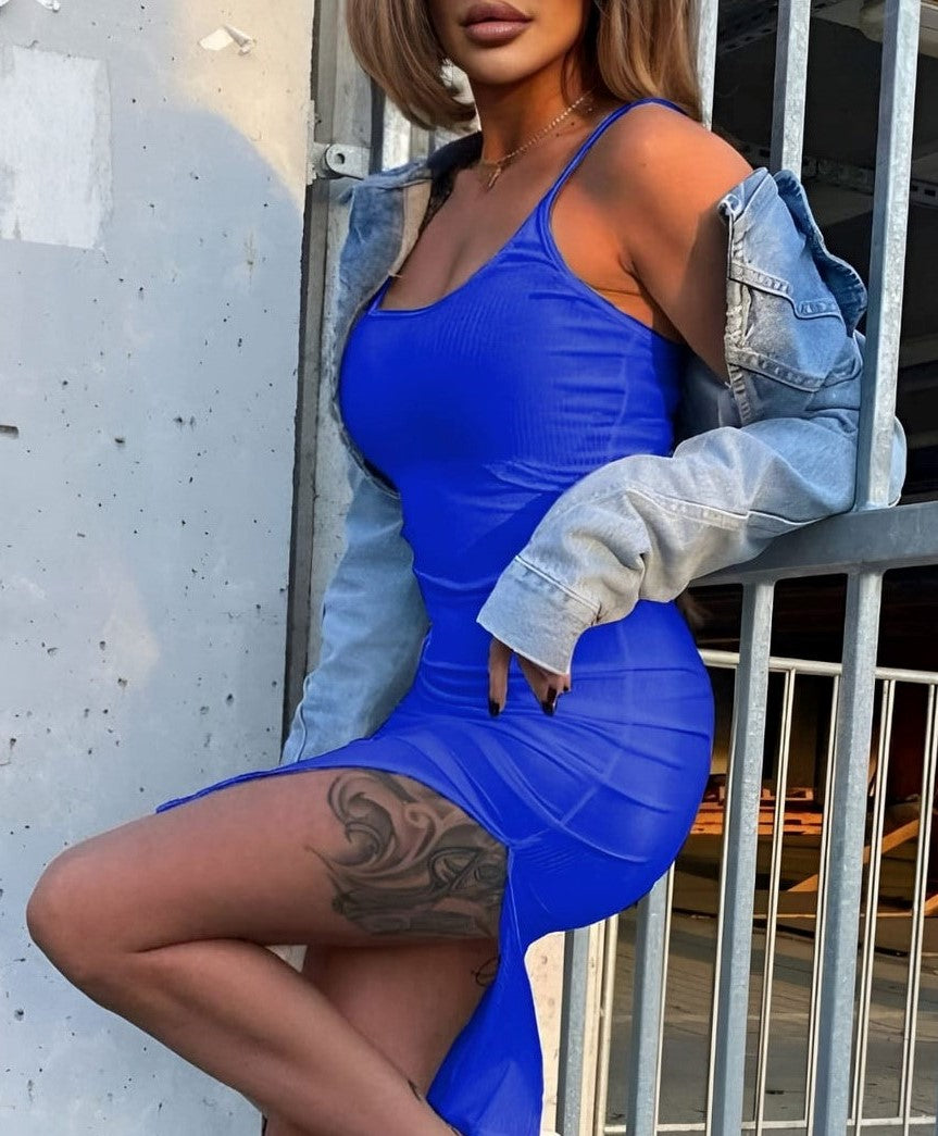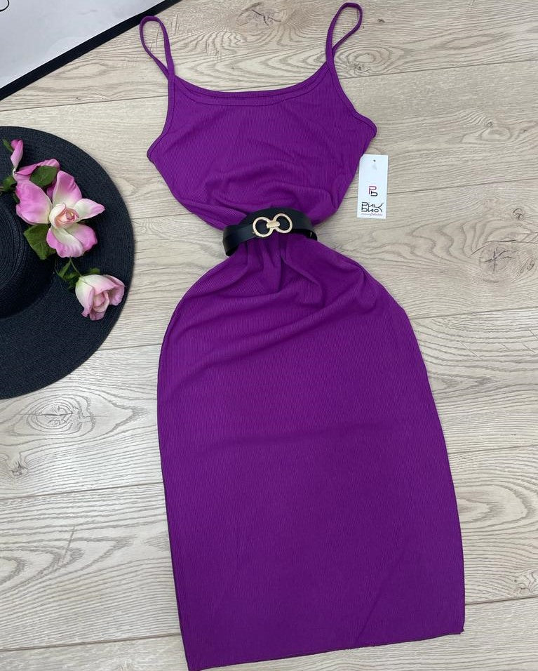 Abito lungo a costine con spacco laterale. Fabbricato all'estero.