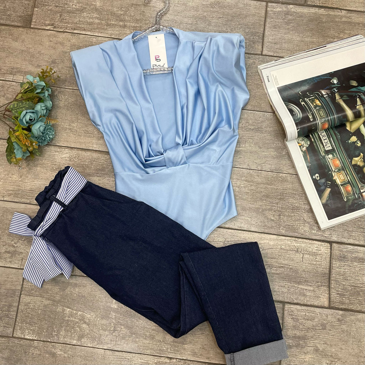 Body effetto lycra con coppe preformate ,fiocco centrale e chiusura ganci sul cavallo.