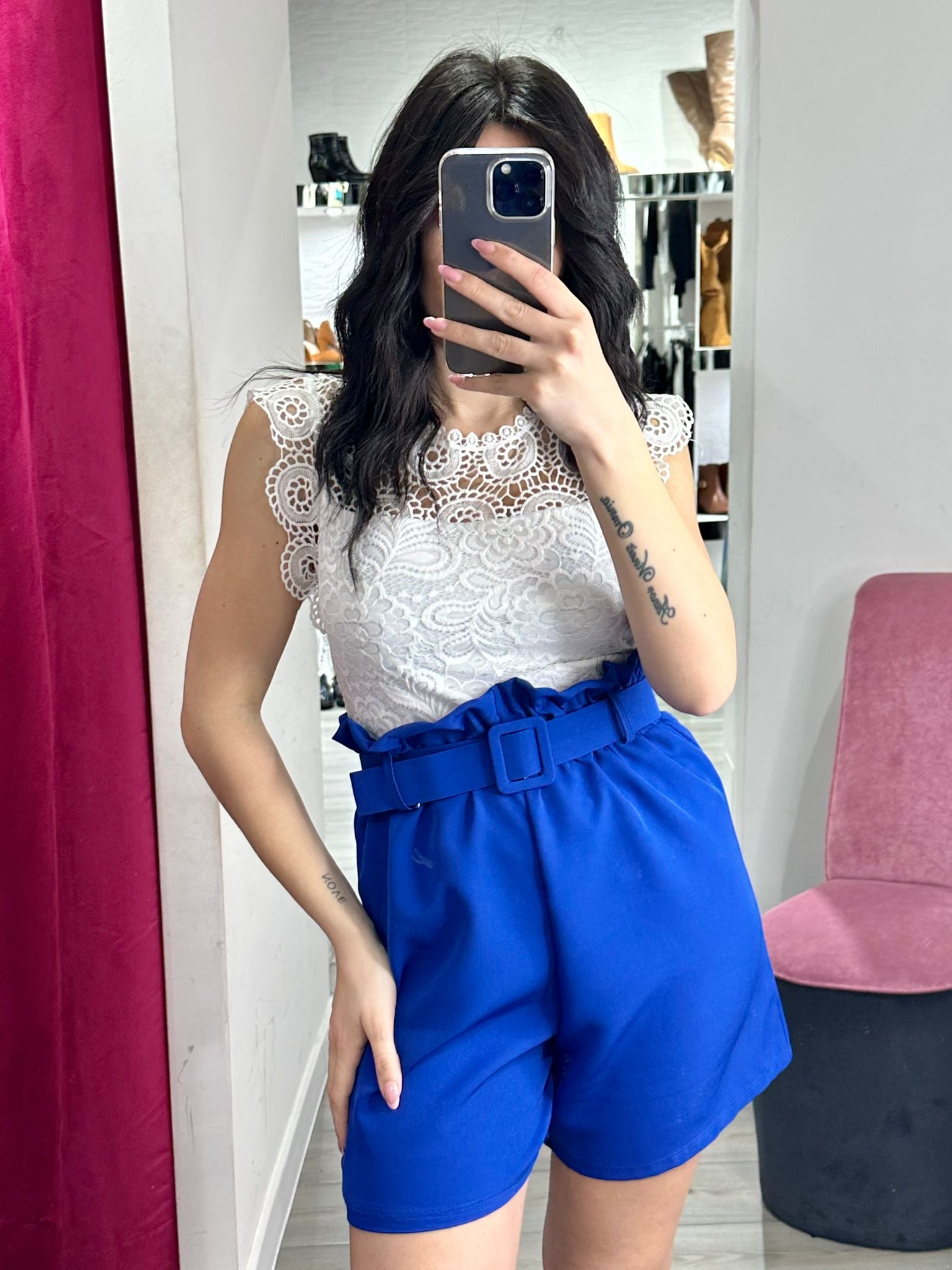 Maglia traforata in pizzo e macramè. Fabbricato all'estero.