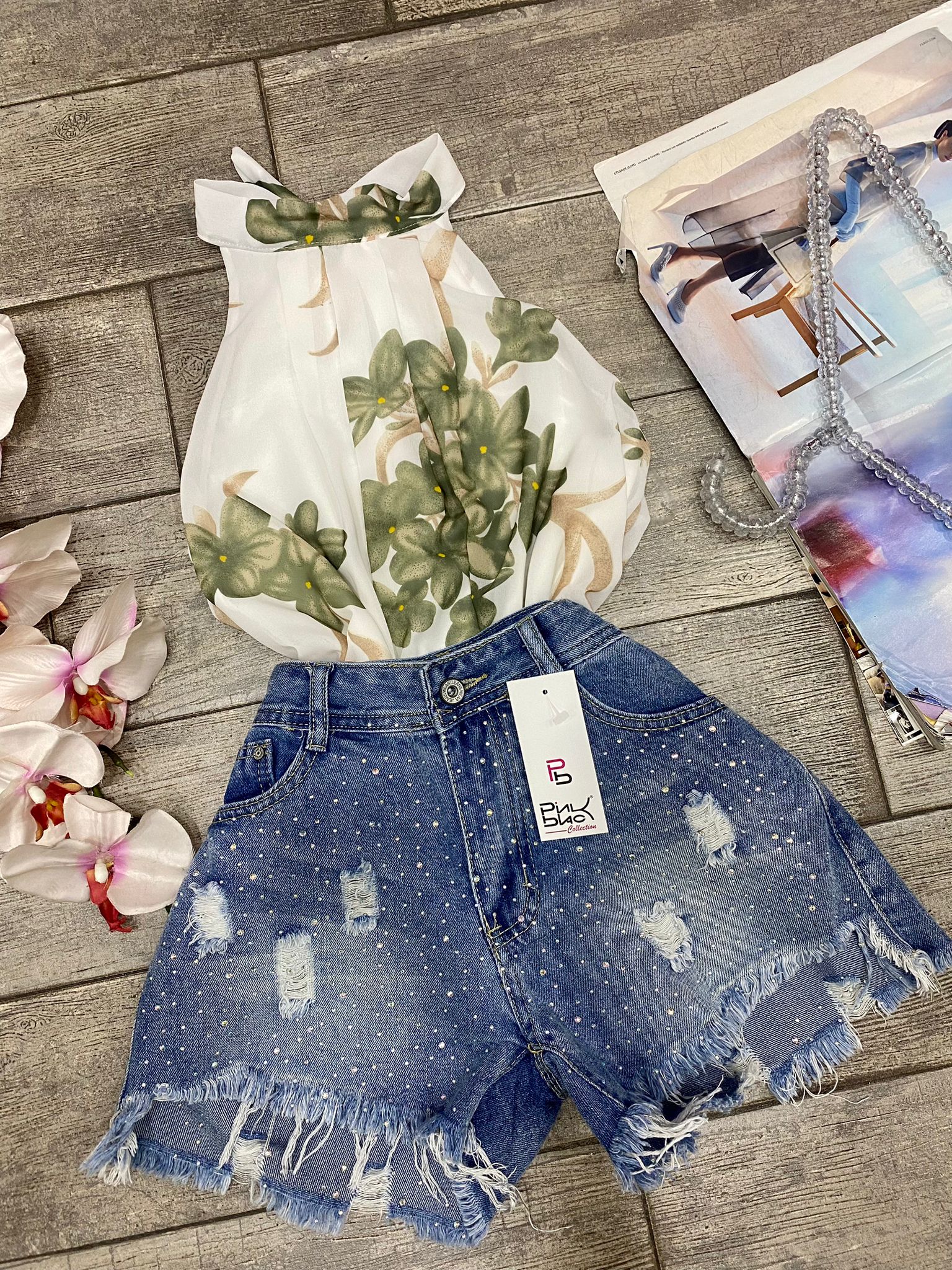 Maglia in chiffon con fantasia floreale. Fabbricato in Italia.