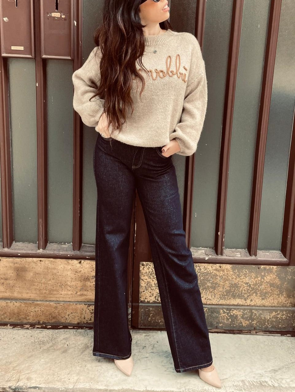 Maglioncino unica tinta con scritta in rilievo ricamata