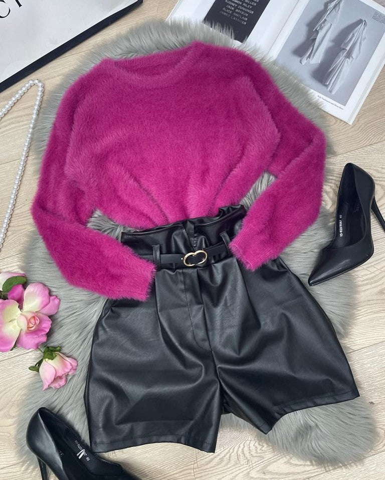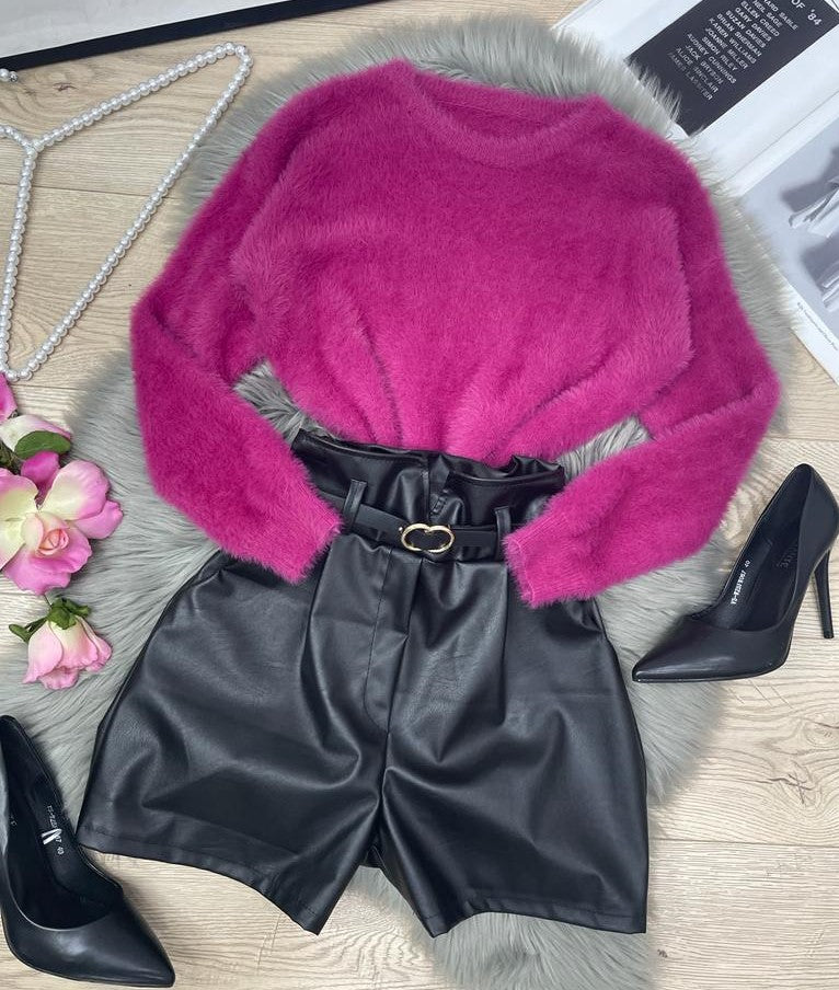 Short in ecopelle a vita alta con elastico in vita sul retro, tasche e cintura inclusa. Fabbricato in Italia.