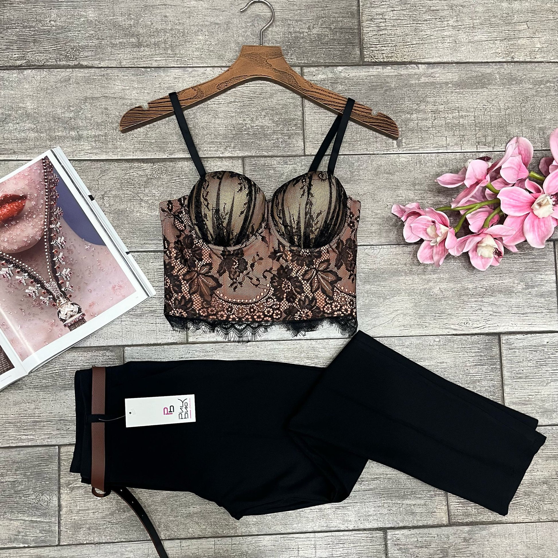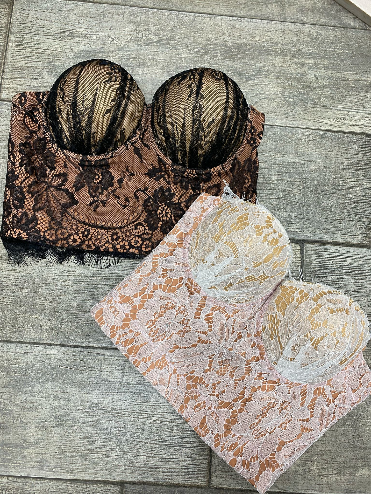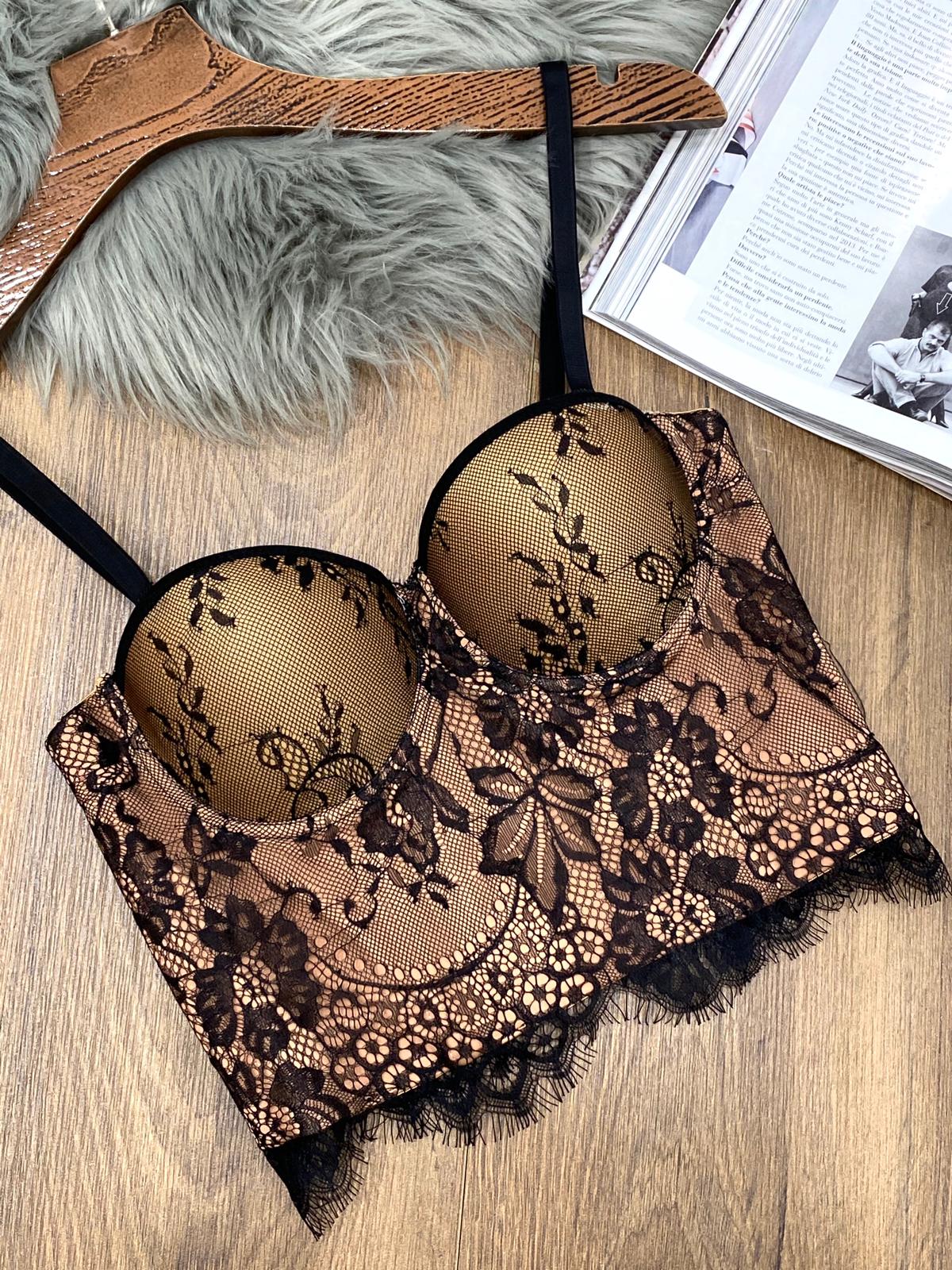 Top de corsé de encaje bordado. Escote corazón con tazas rígidas, correas de hombro ajustables y extraíblesy cierre con ganchos en la espalda.. Chic destaca la silueta y el Décollette por una apariencia seductora y de moda. El ajuste de los tamaños es regular. Fabricado en el extranjero.