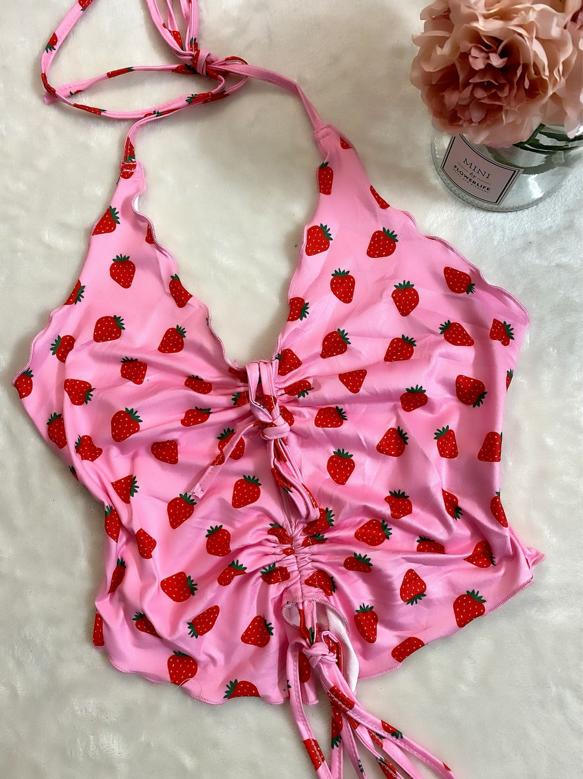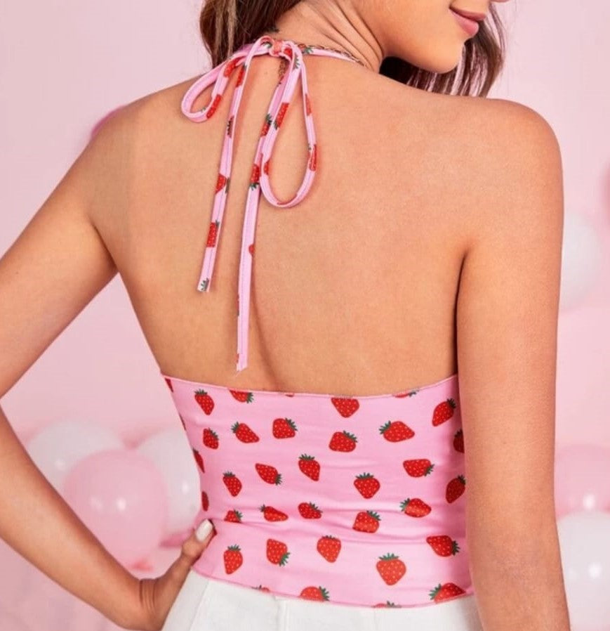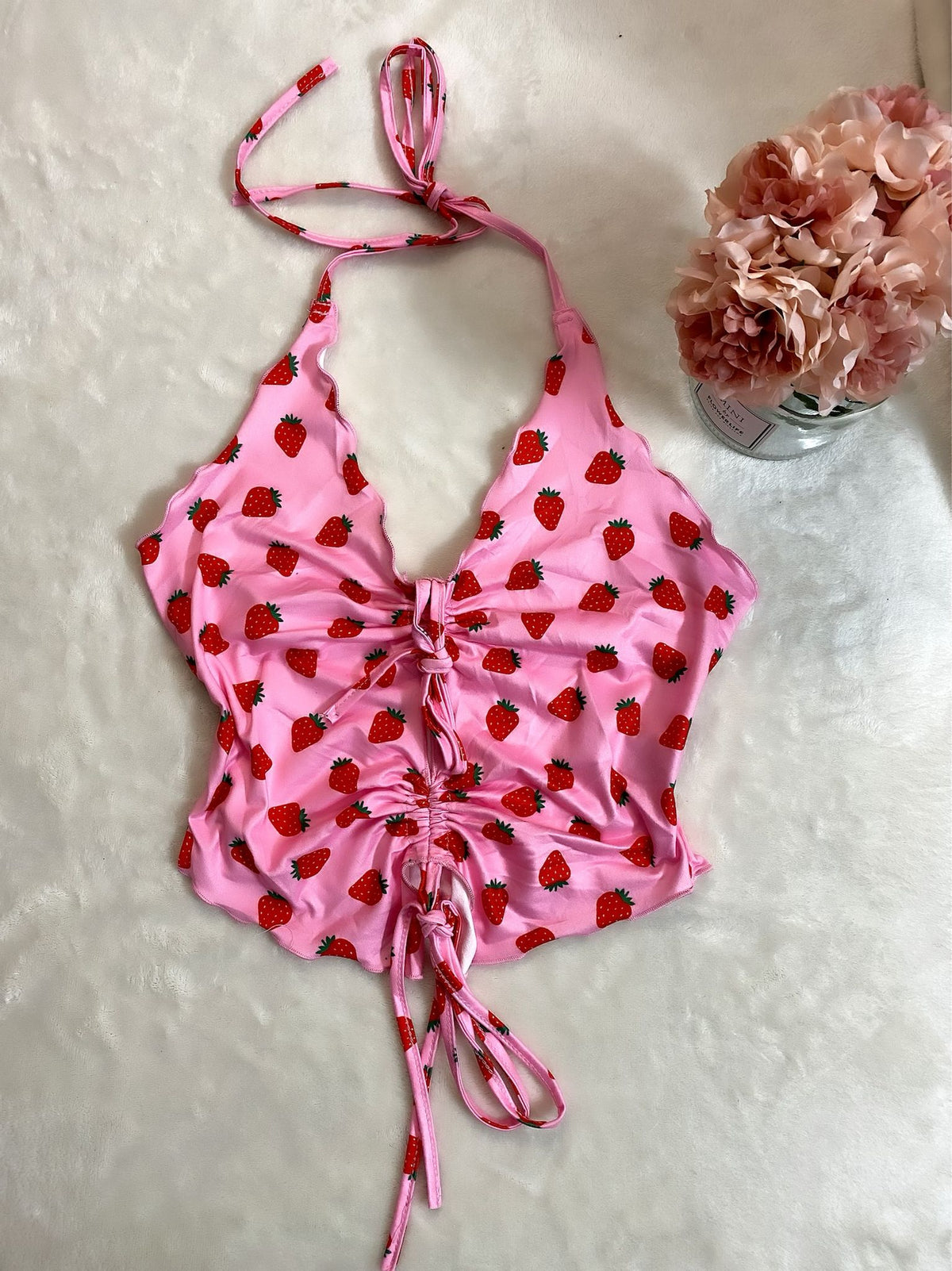 Top corto con cordones ajustables y apertura central.Fabricado en el extranjero.